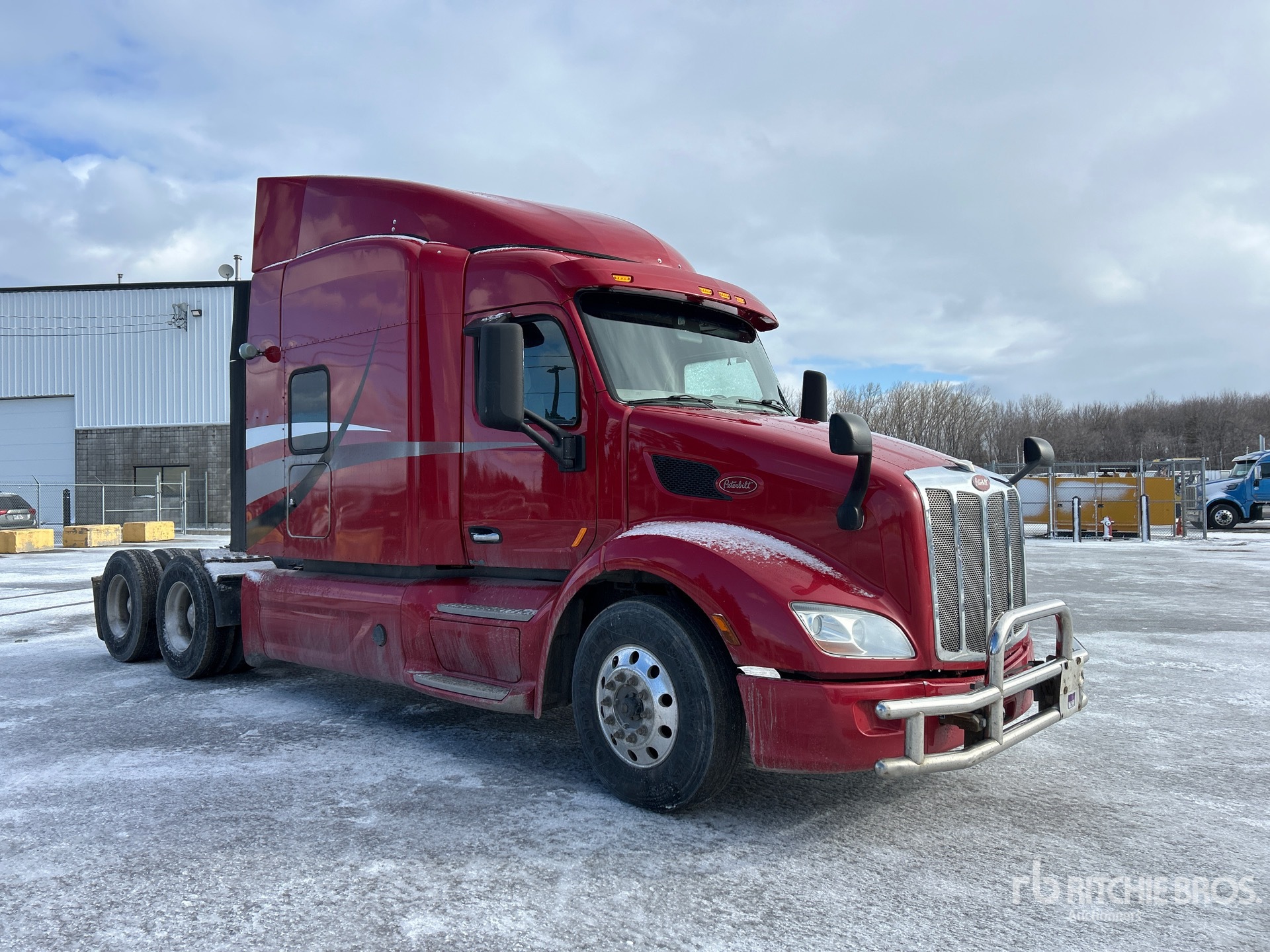 Situé sur la voie 19, emplacement 17, Paccar MX-13, moteur de 455 ch, homologué EPA 2018, 13 469 heures moteur, transmission automatique, essieu avant de 5 600 kg, essieu arrière de 18 144 kg, PTAC de 23 700 kg, frein moteur, double blocage de différentiel, empattement de 5,81 m, suspension pneumatique, jantes en aluminium, pneus 11R22.5