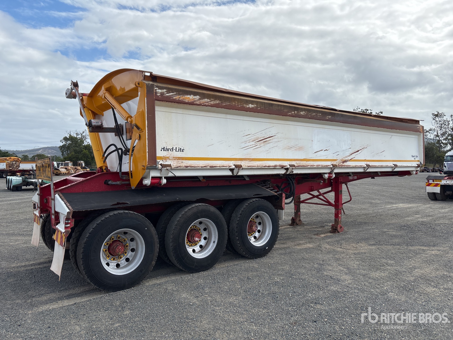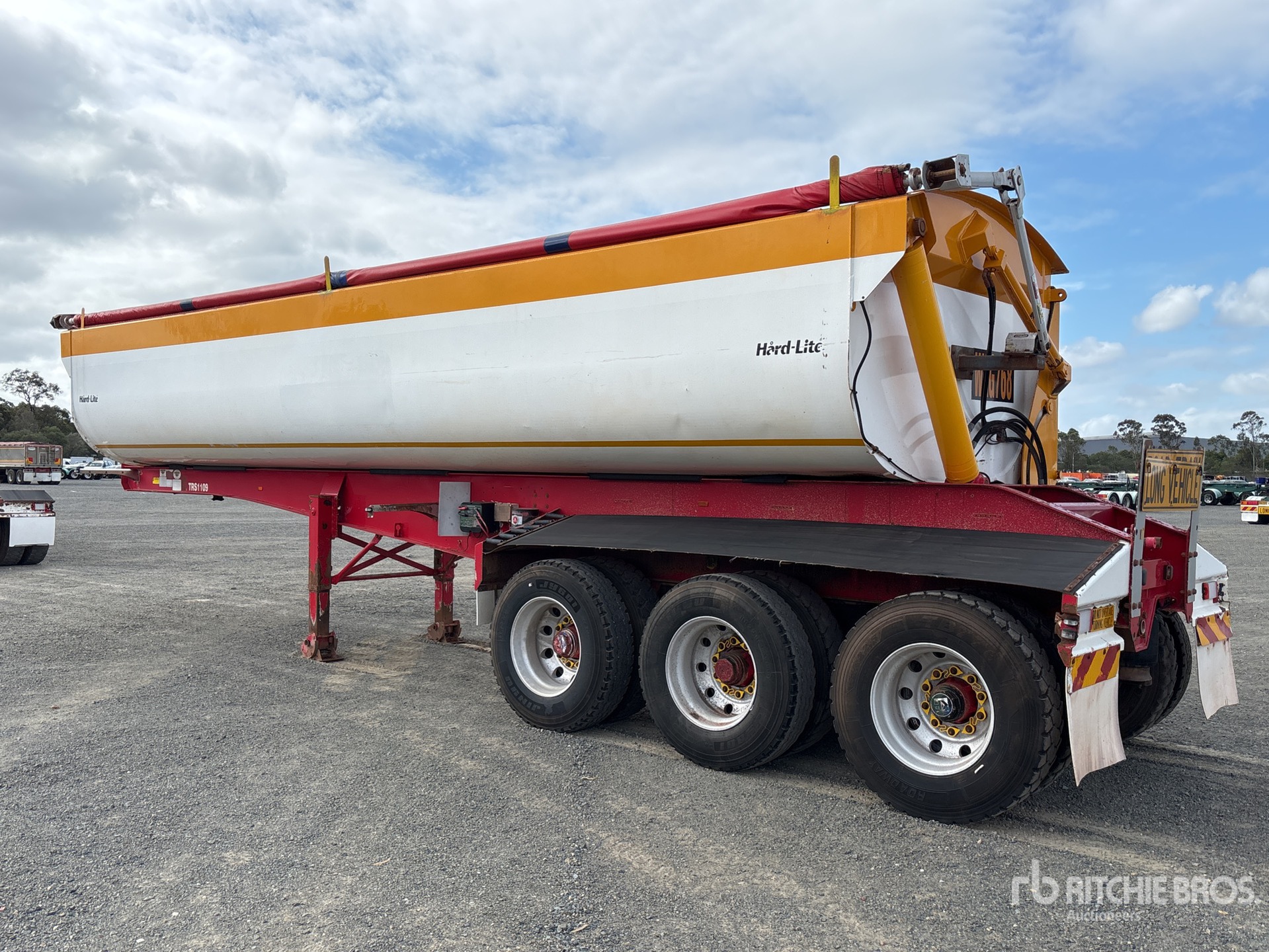 Suspension pneumatique, benne basculante à droite, parois latérales de 1300 mm, bâche à enroulement électrique, pneus 11R22.5, PTAC 47 t, pivot d'attelage de 90 mm, graissage automatique