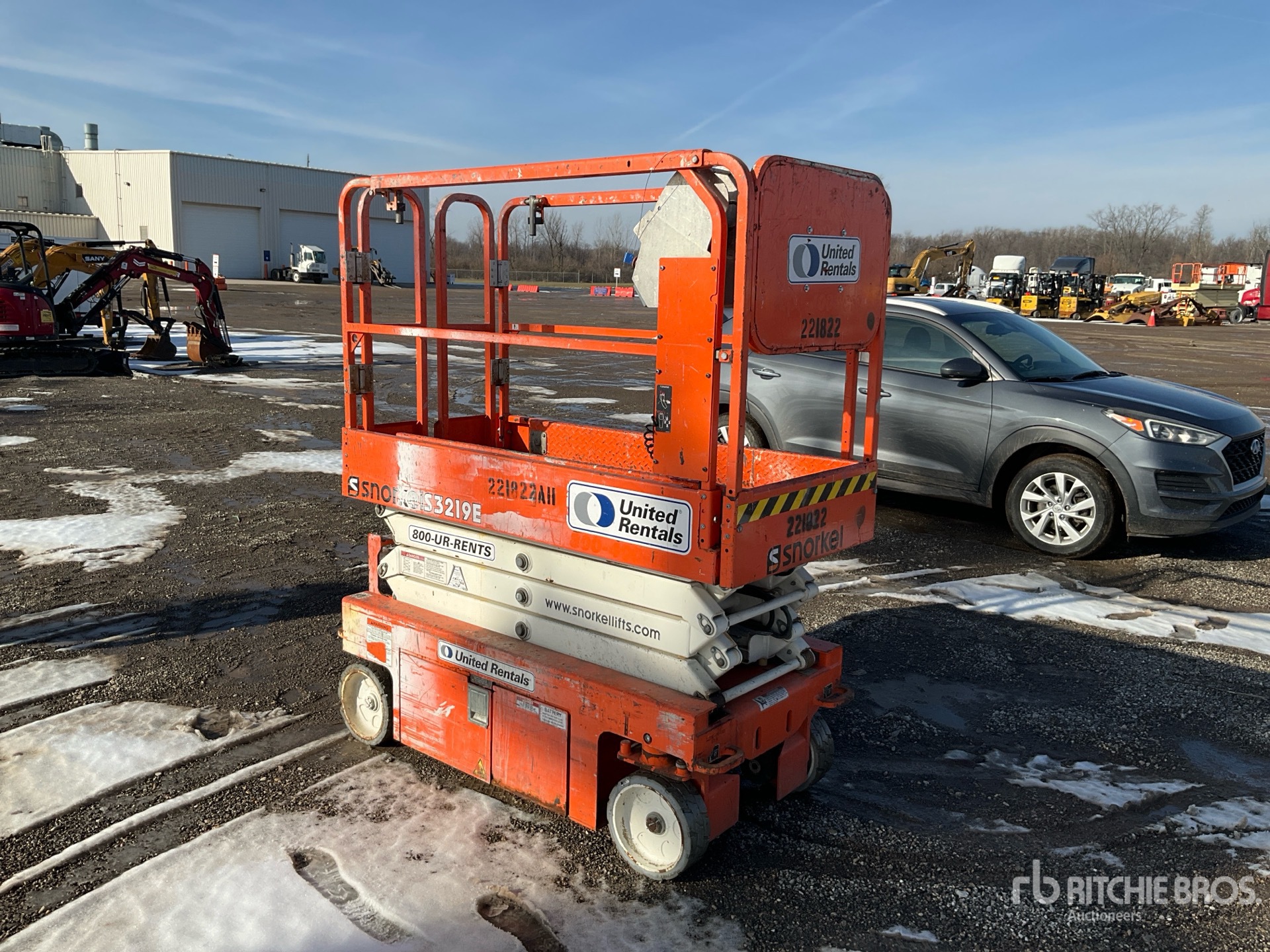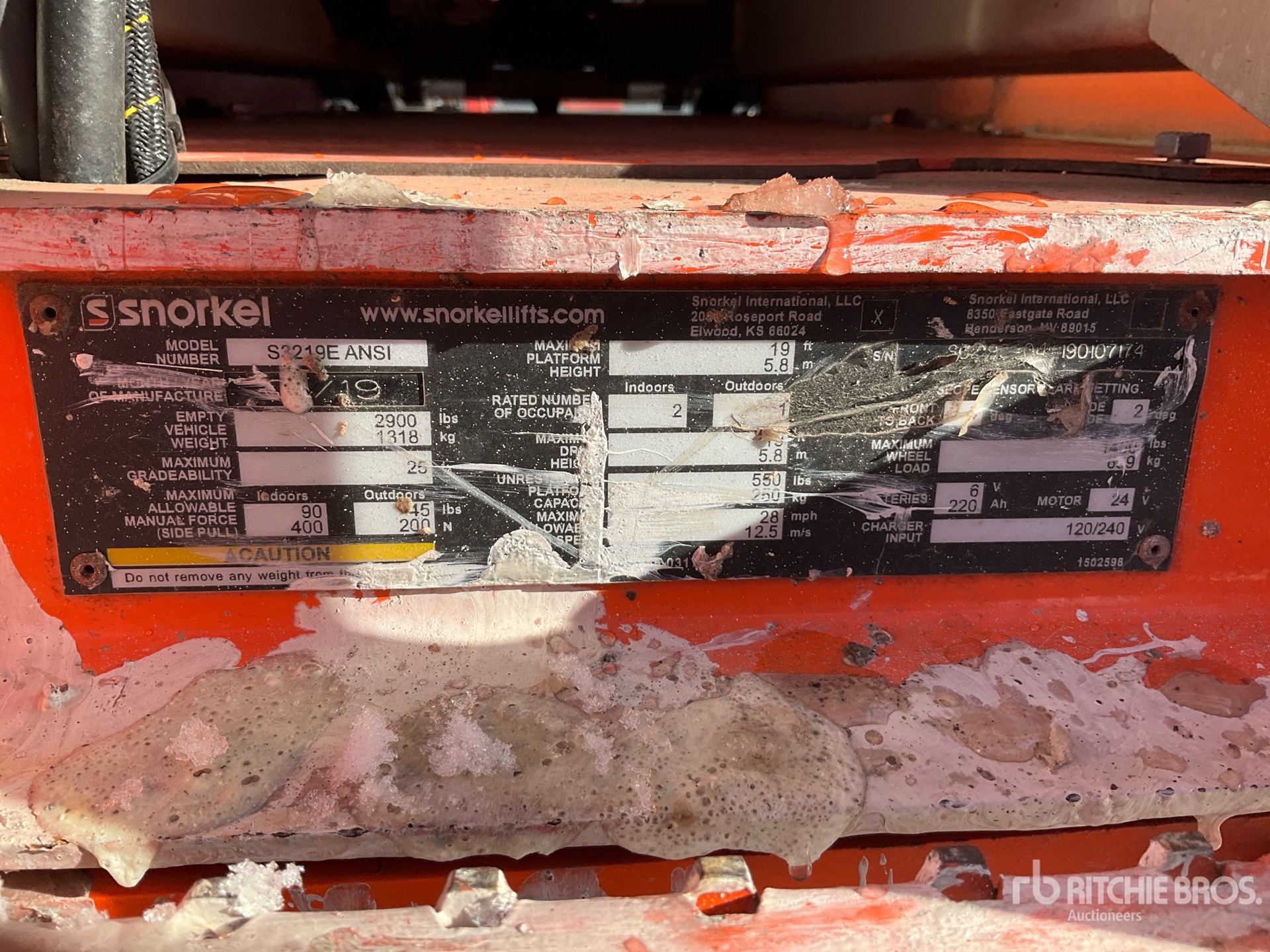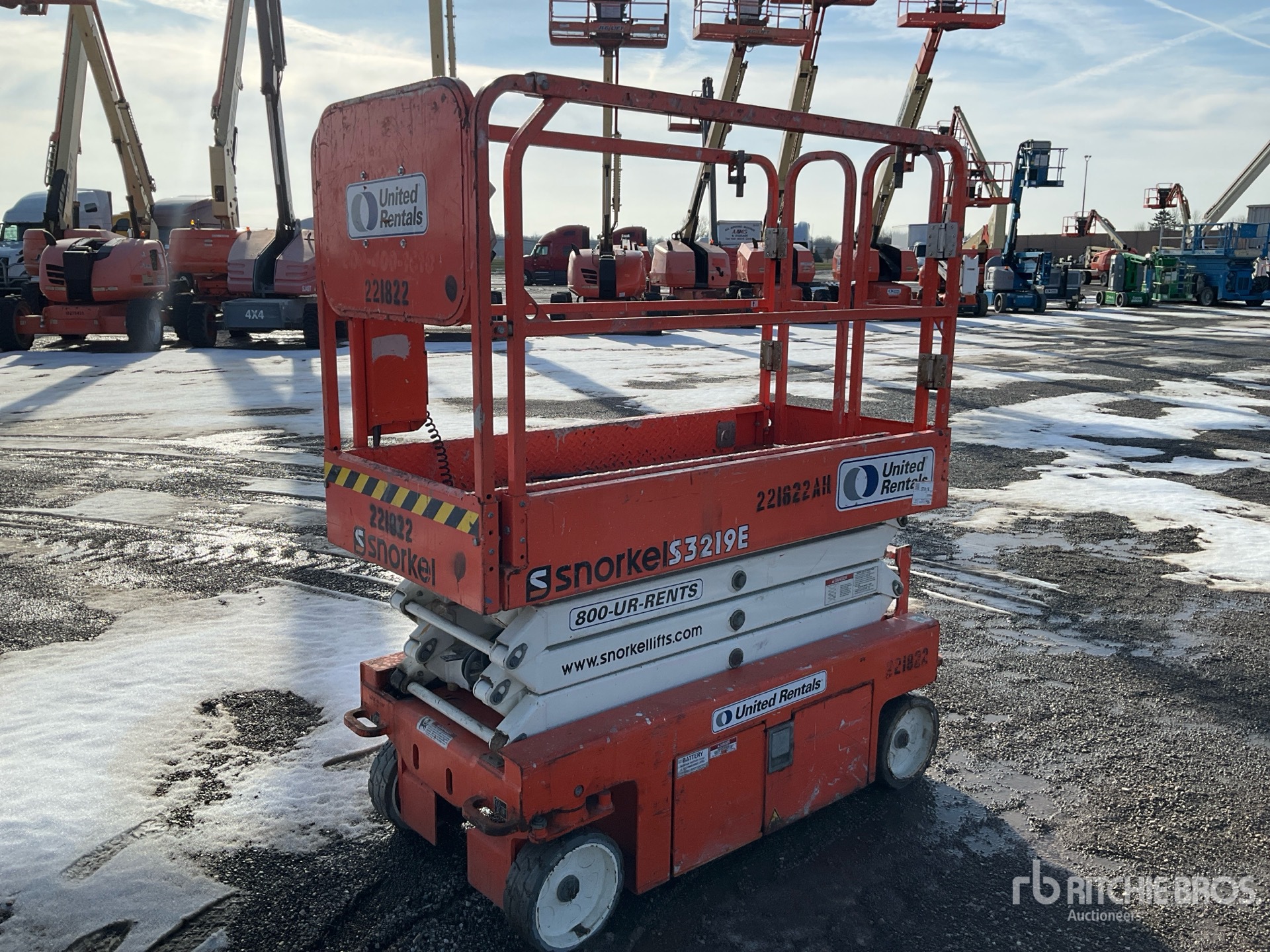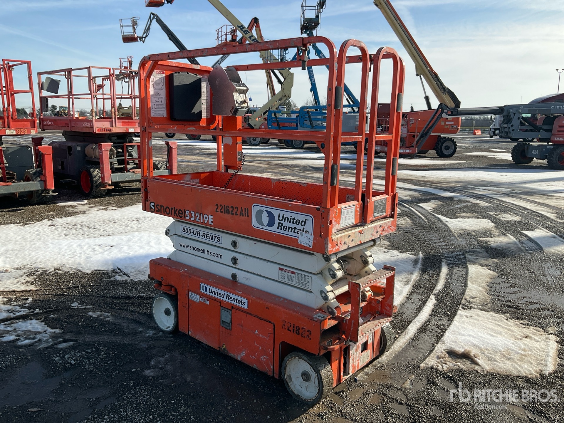 Veuillez noter que tout équipement aérien nécessite un harnais de sécurité fourni par l'utilisateur et du personnel formé pour fonctionner sur toutes les propriétés de Ritchie Bros. - Sur les nacelles élévatrices ;