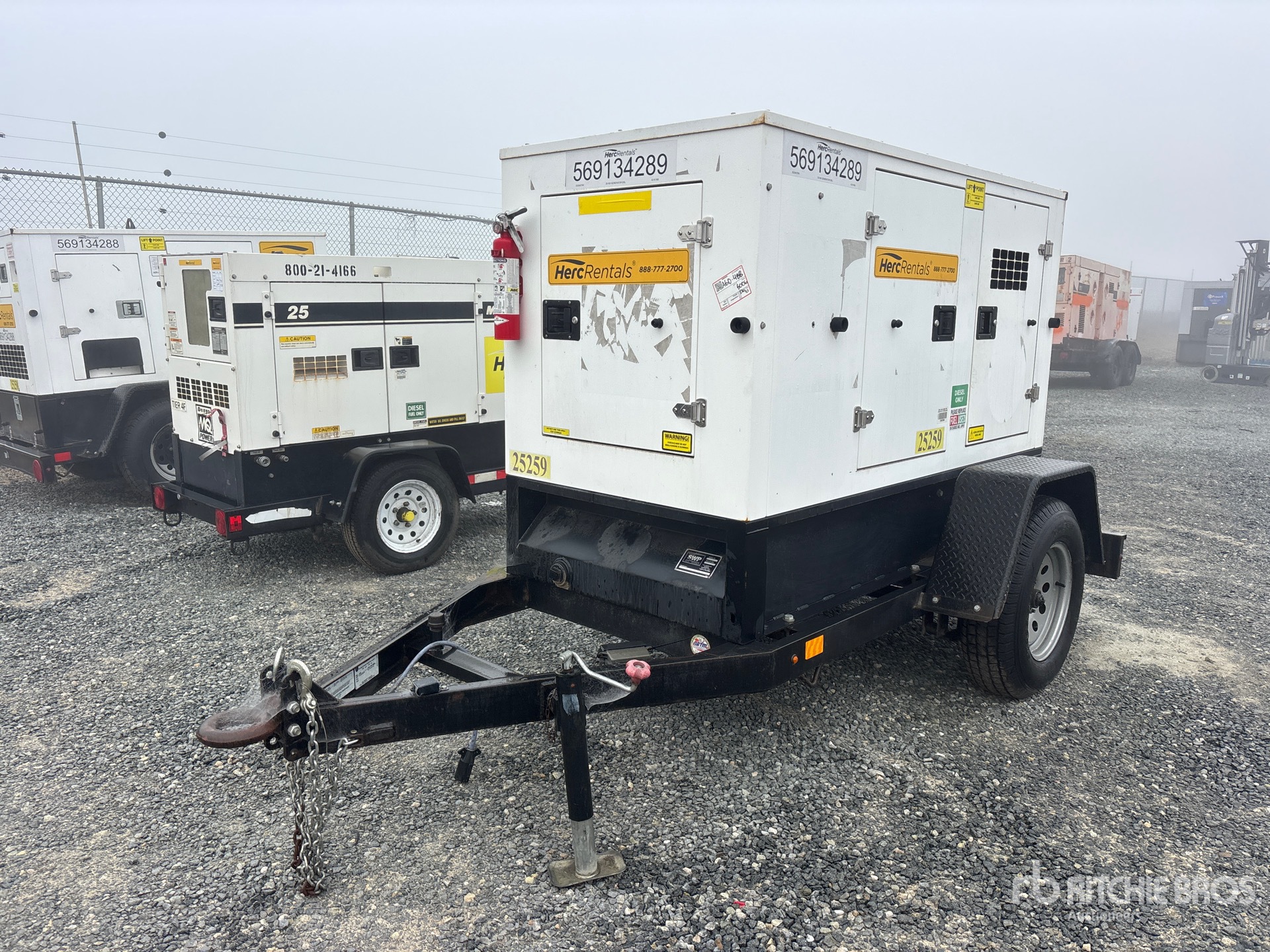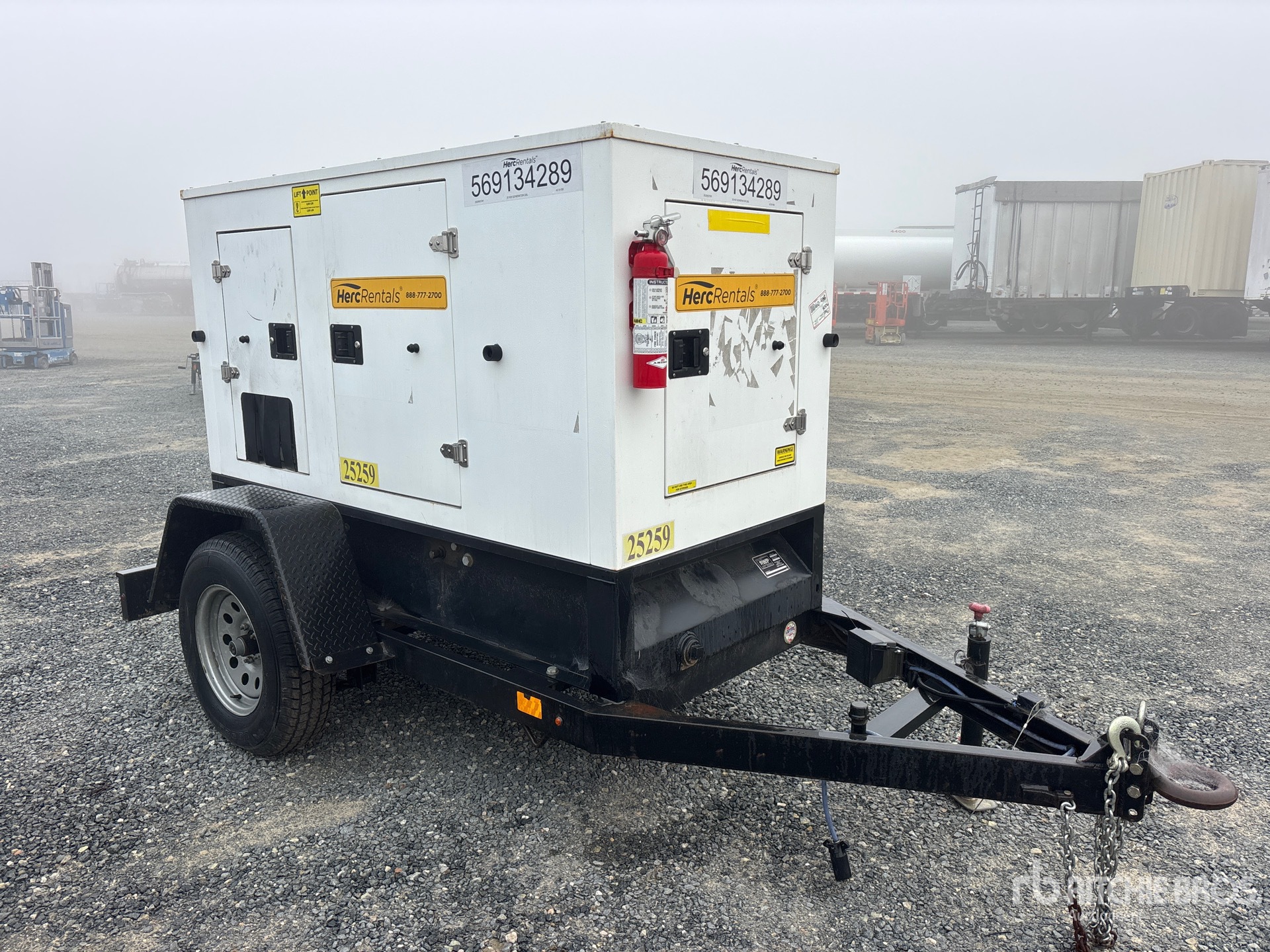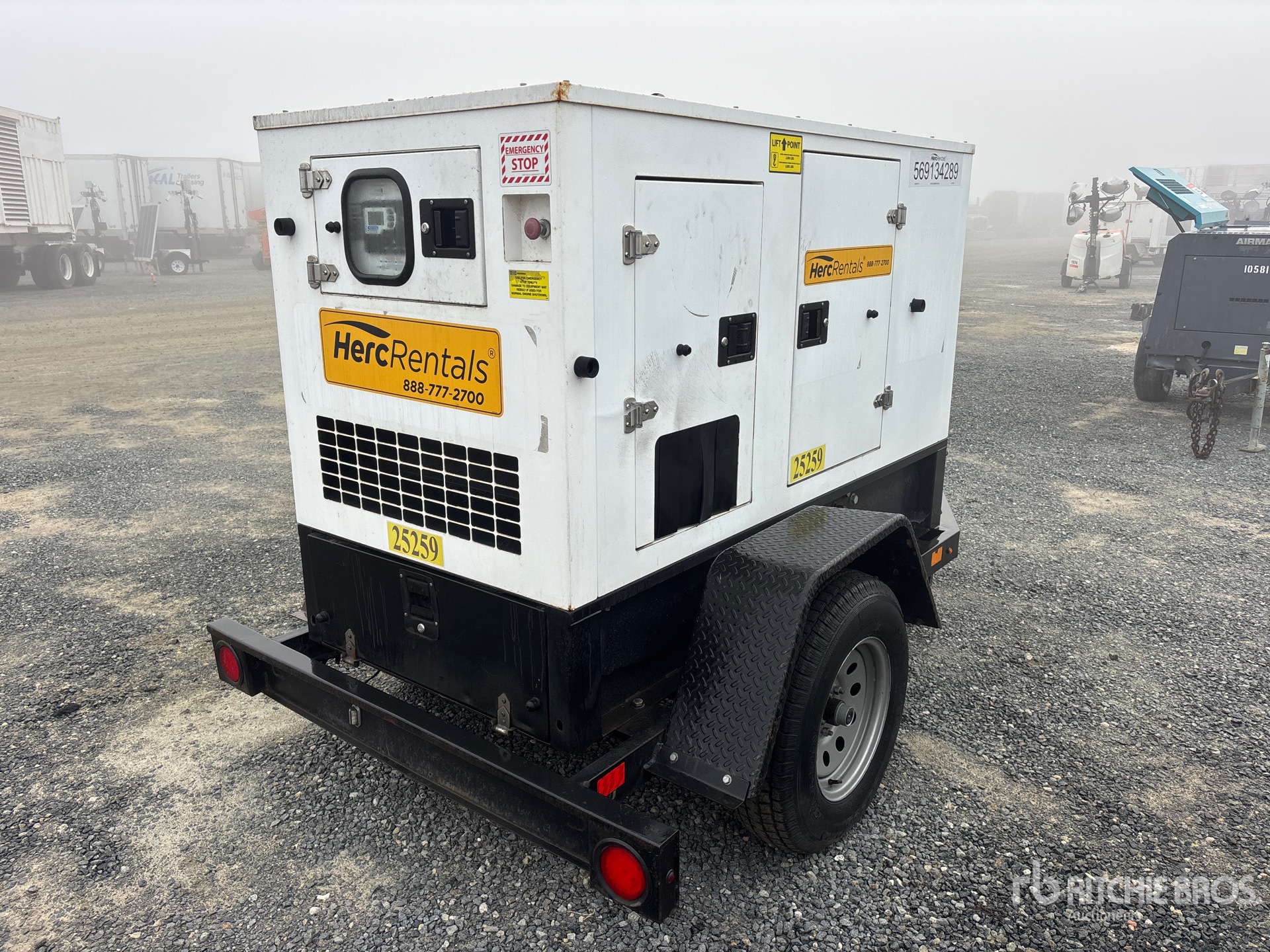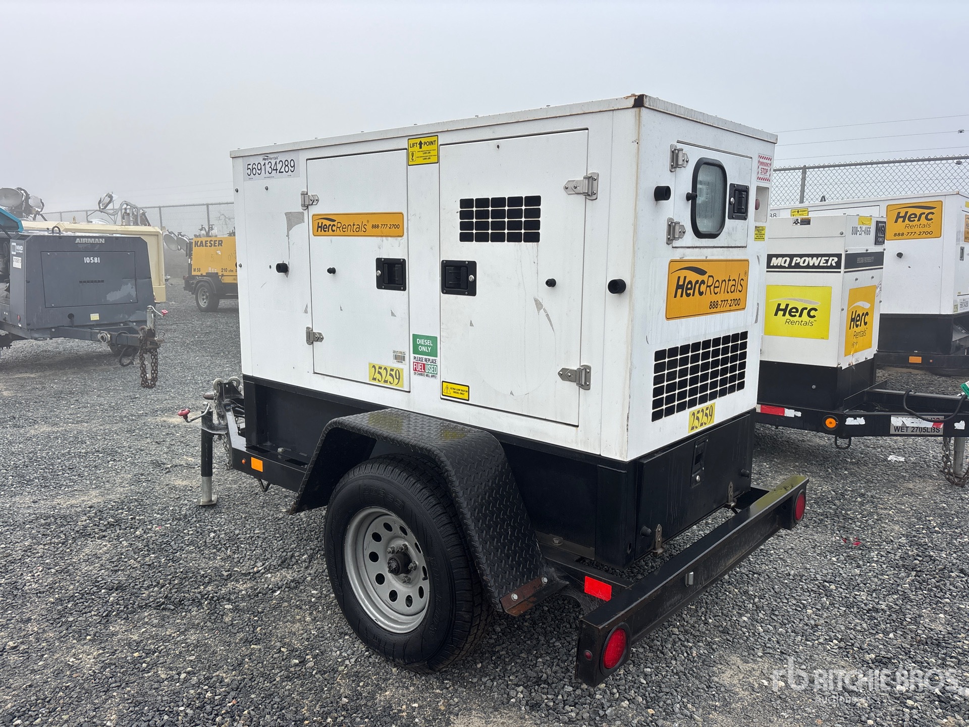 Étiquette EPA américaine 2018, moteur diesel Isuzu BZ-4LE2T 4 cylindres 30 kW 2,2 L, prises 240 V et 120 V, insonorisé, réservoir de carburant inférieur, remorque porte-anneaux, freins électriques, équipement fourni par Herc-Rentals