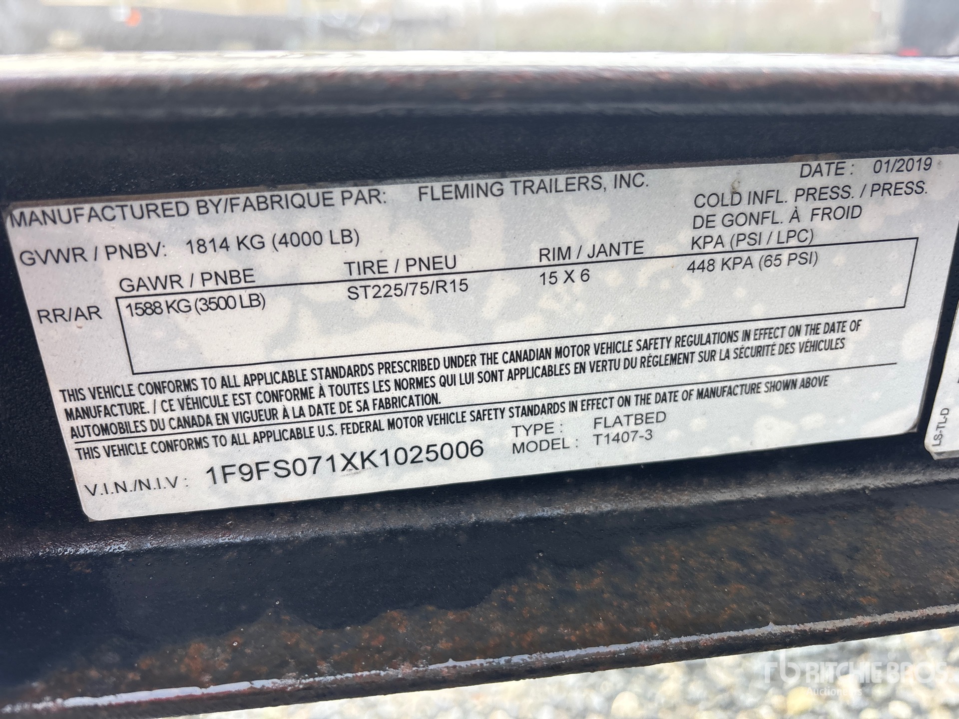 Les Informations détaillées de l’équipement sont d’une portée limitée, et les Encans Ritchie Bros. n’ont inspecté aucun autre aspect ou composant de l’équipement que ceux présentés expressément. Sauf indication précise, nous n’offrons aucune représentation ou garantie, officielle ou implicite, sur l’équipement ou ses composants, sans aucune limite de représentation ou de garantie en ce qui concerne la fonctionnalité, la conformité à toute norme de sécurité ou l’exigence de toute autorité ou agence de régulation en vigueur, l’adaptation à un quelconque usage, ou la valeur commerciale. Il vous est fortement conseillé d’effectuer votre propre inspection détaillée de l’équipement avant d’enchérir.