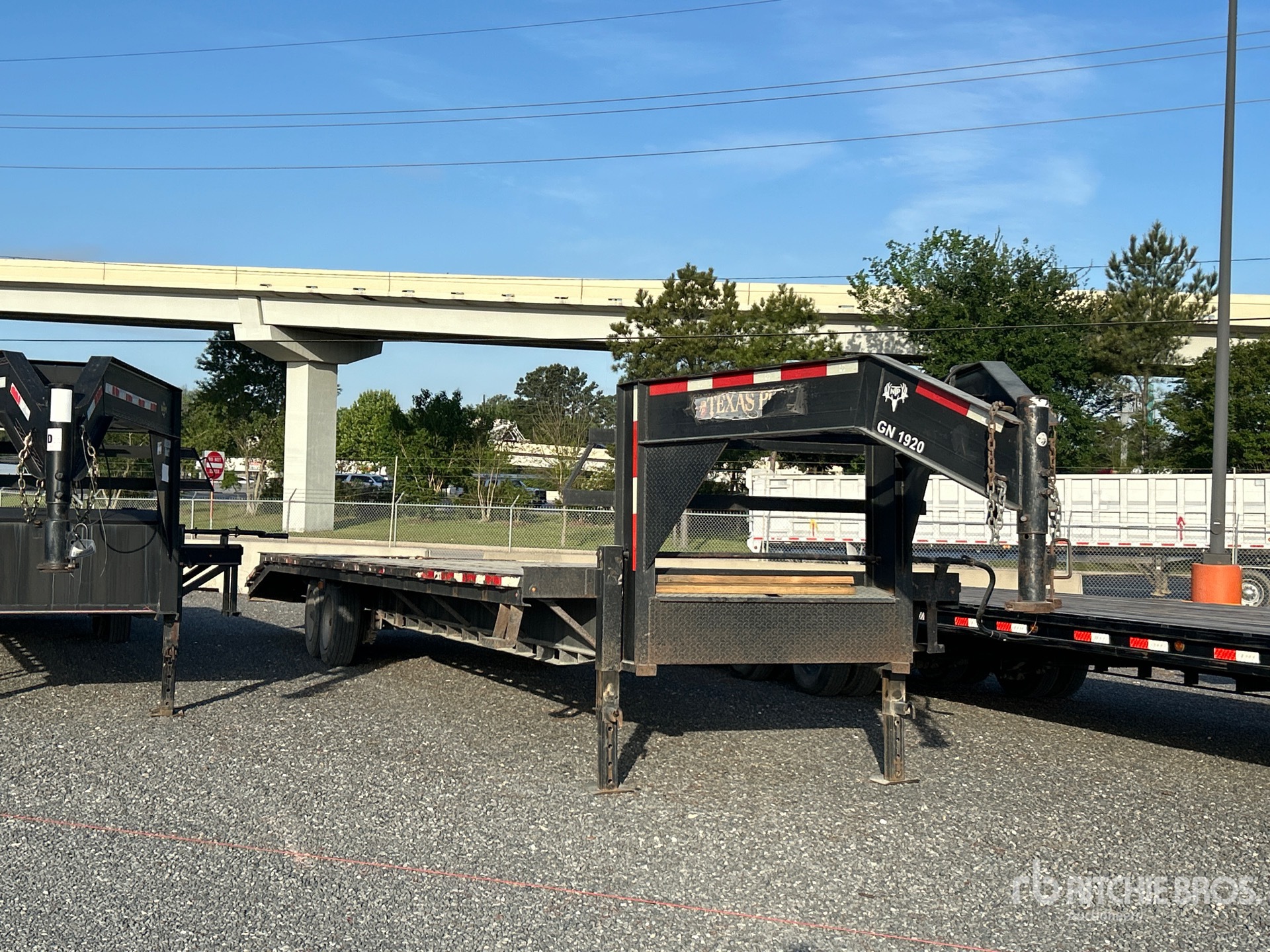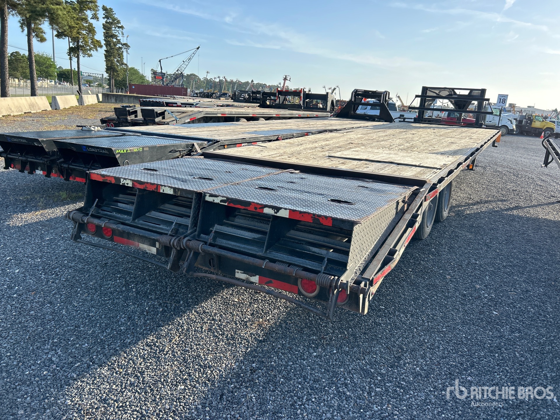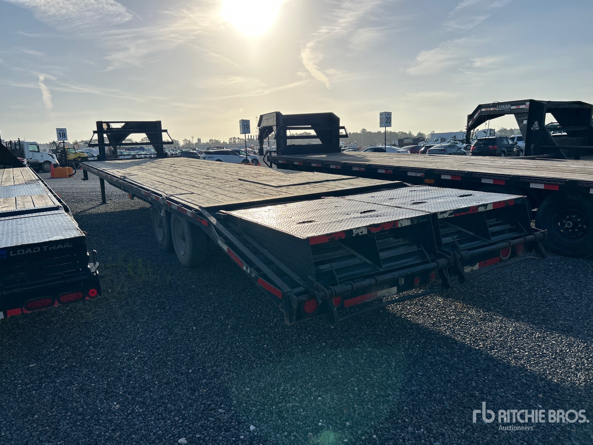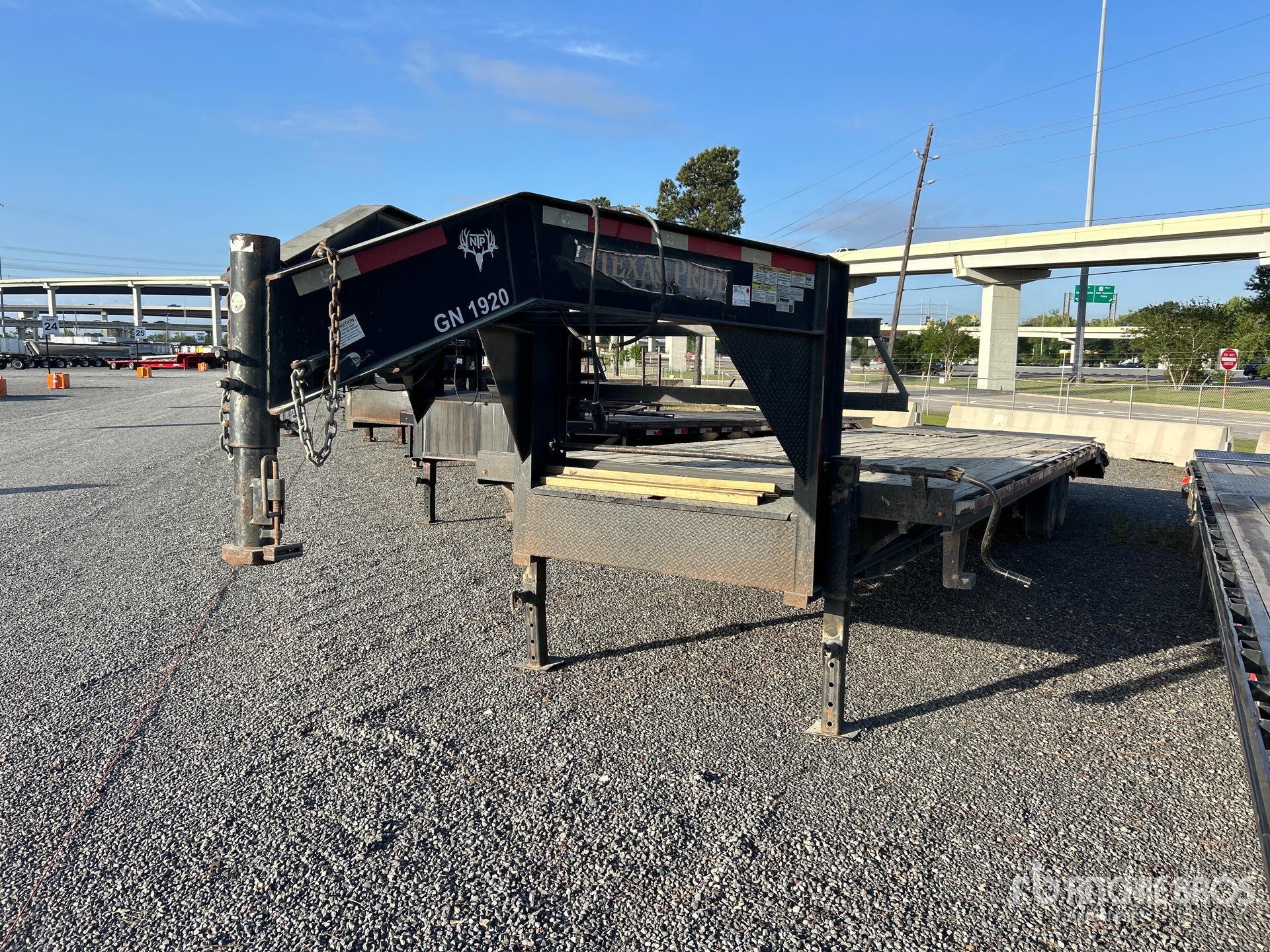Suspension à ressorts, freins électriques, plateau principal de 8,23 m, hayon fixe de 1,52 m, largeur utile du plateau de 2,44 m, largeur totale du plateau de 2,59 m, compartiments de rangement, plateau au-dessus des pneus, rampes à ressorts, plancher en bois, pneus 215/75R17.5, PTAC de 5 811 kg