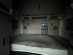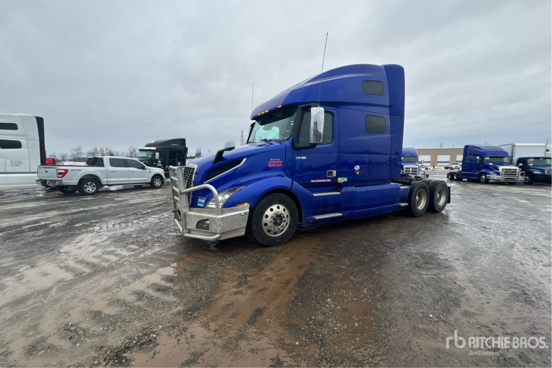 Moteur Volvo D13, transmission automatisée Volvo ATO2612F à 12 rapports, essieu avant de 5670 kg, essieux arrière de 1814 kg, PTAC de 23830 kg, frein moteur, blocage de différentiel, cabine couchette surélevée de 178 cm, lits superposés, empattement de 556 cm, suspension pneumatique, jantes en aluminium, pneus 11R22.5, sellette d'attelage coulissante pneumatique, double réservoir d'essence