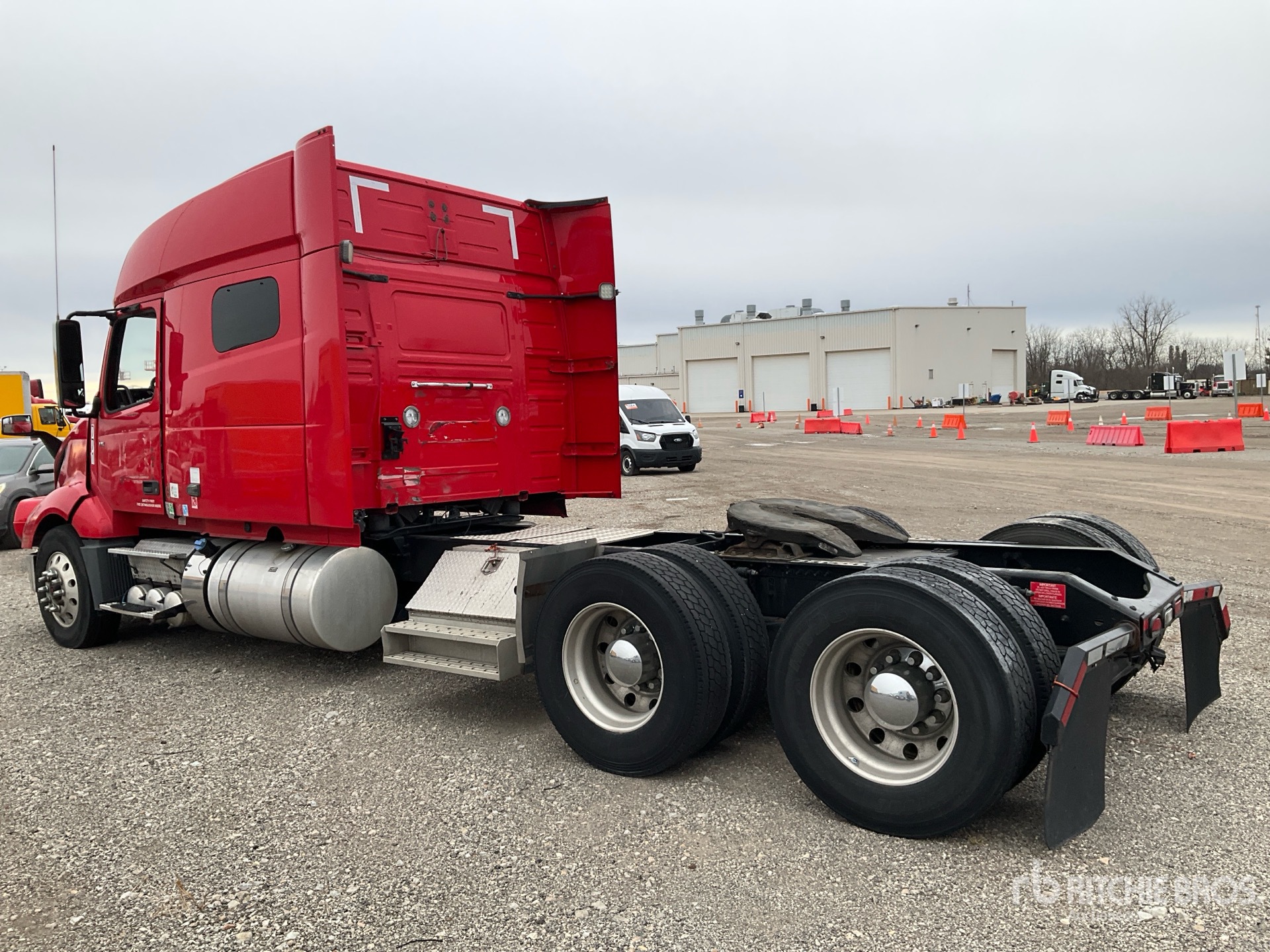 Moteur Volvo D13M de 455 ch, homologué EPA (États-Unis) 2018, transmission automatique Volvo ATO2612F à 12 rapports, essieu avant de 5 987 kg (13 200 lb), empattement de 625 mm (246 po), suspension pneumatique, pneus 295/75R22.5