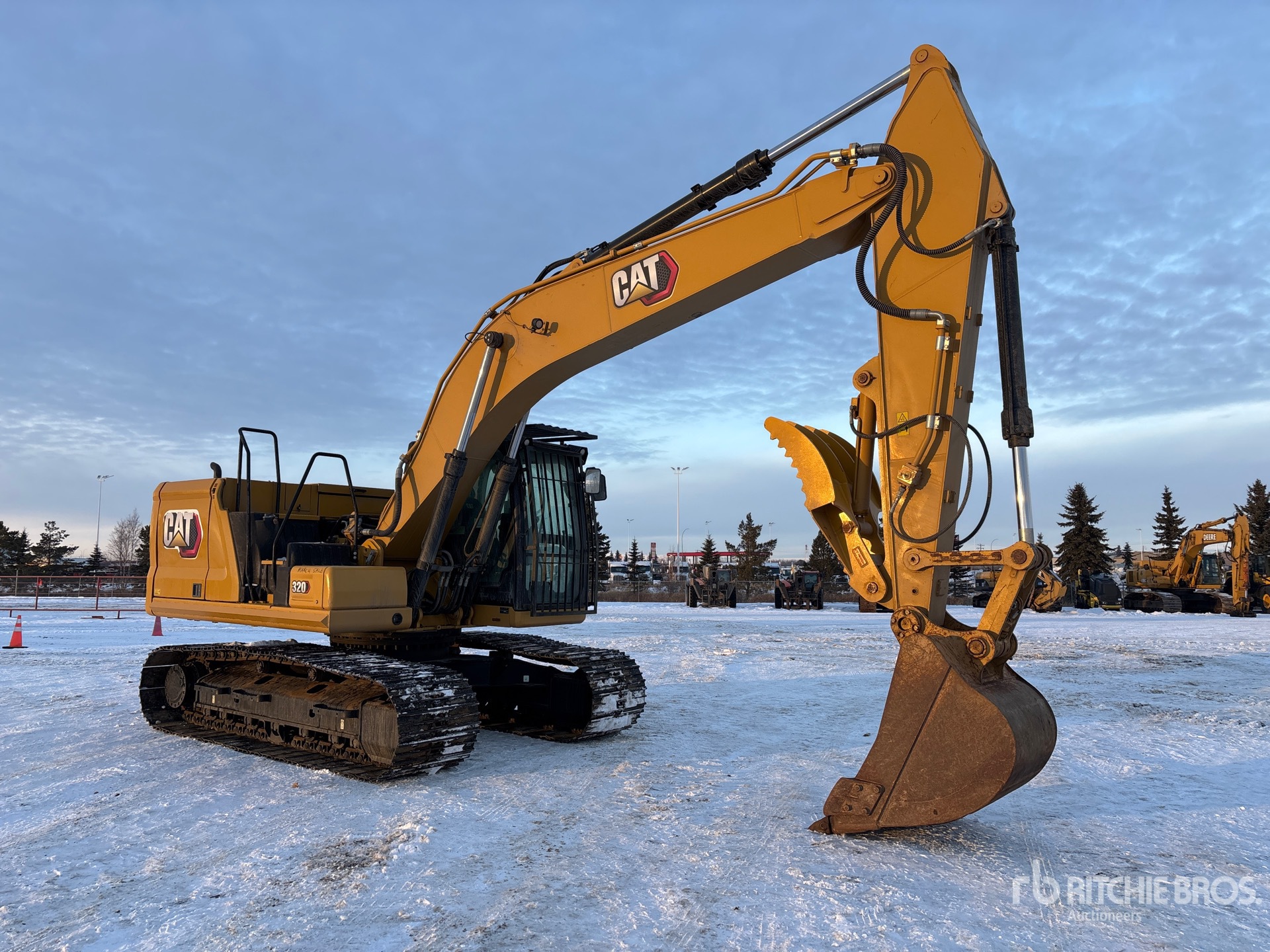 Climatisation, sélecteur de mode de commande, écrans de cabine, caméras de recul et latérales, homologation EPA américaine 2019, conforme aux normes CARB, bras de 2,87 m, clapet anti-retour sur le bras, clapets anti-retour sur la flèche, chenilles à triple crampon de 80 cm, godet de creusement de 107 cm, pouce hydraulique