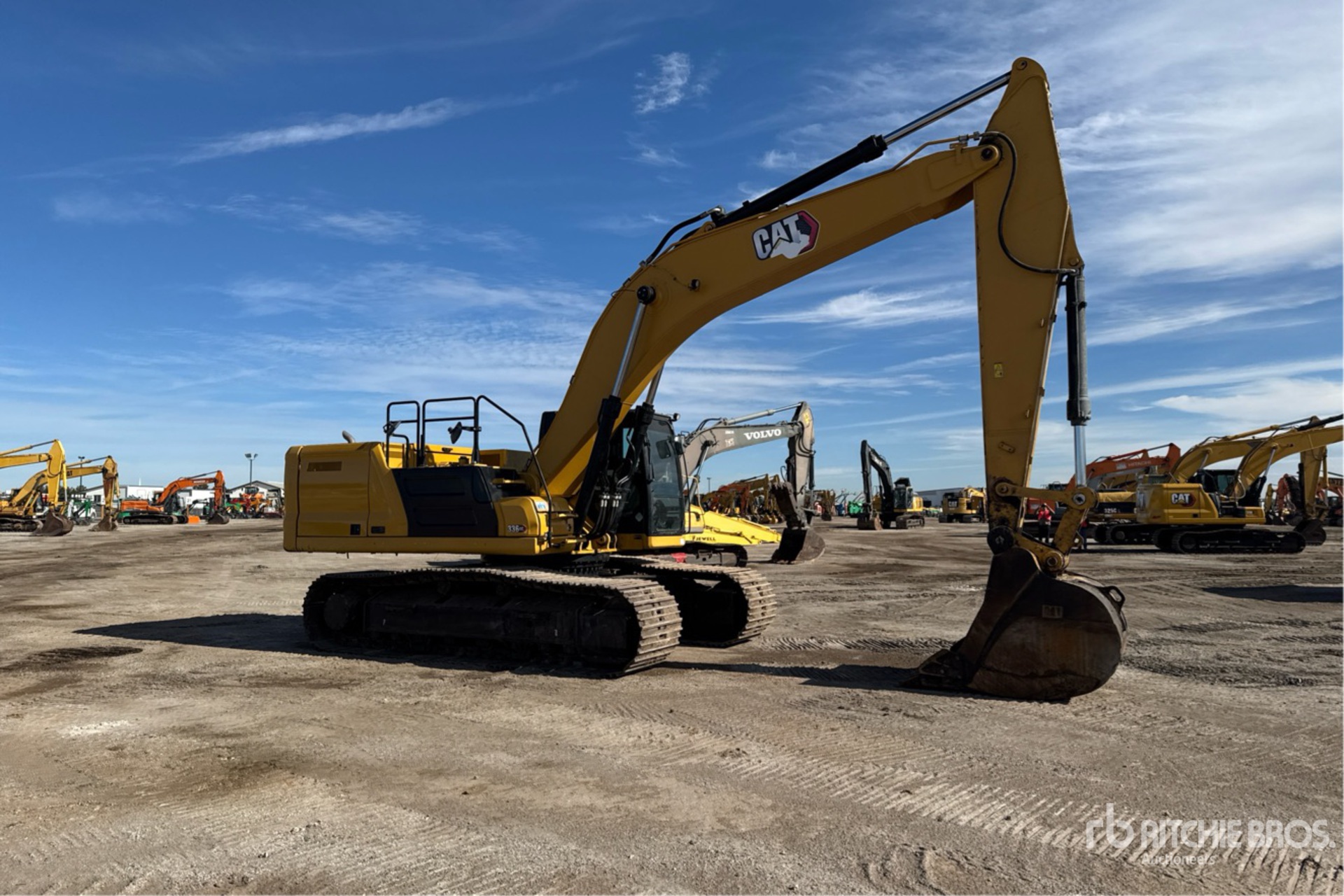 Climatisation, pédale de déplacement droit, étiquette EPA américaine 2019, bras de 3,86 m, chenilles à triple crampon de 85 cm, godet de creusement de 140 cm