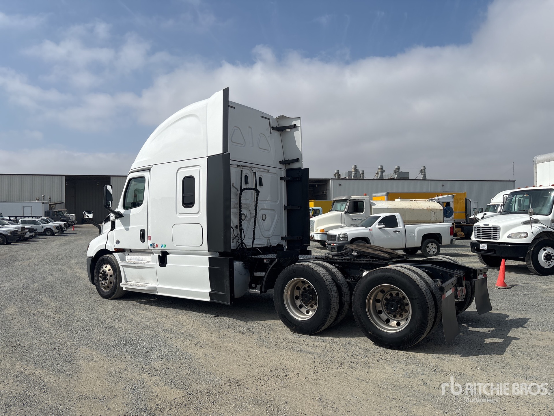 Situé sur la voie 2, emplacement 4, moteur Detroit DD13 de 450 ch, étiquette EPA américaine 2020, 18 864 heures moteur, transmission automatique Detroit DT12-1550-OH1 à 12 vitesses, essieu avant de 12 350 lb, essieu arrière de 40 000 lb, PNBV de 52 350 lb, frein moteur, cabine couchette surélevée de 72 po, empattement de 227 po, suspension pneumatique, roues en aluminium, 295/75R22.5, sellette d'attelage coulissante pneumatique, réservoirs de carburant doubles