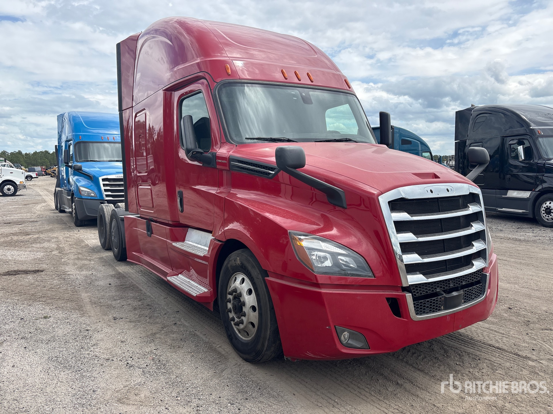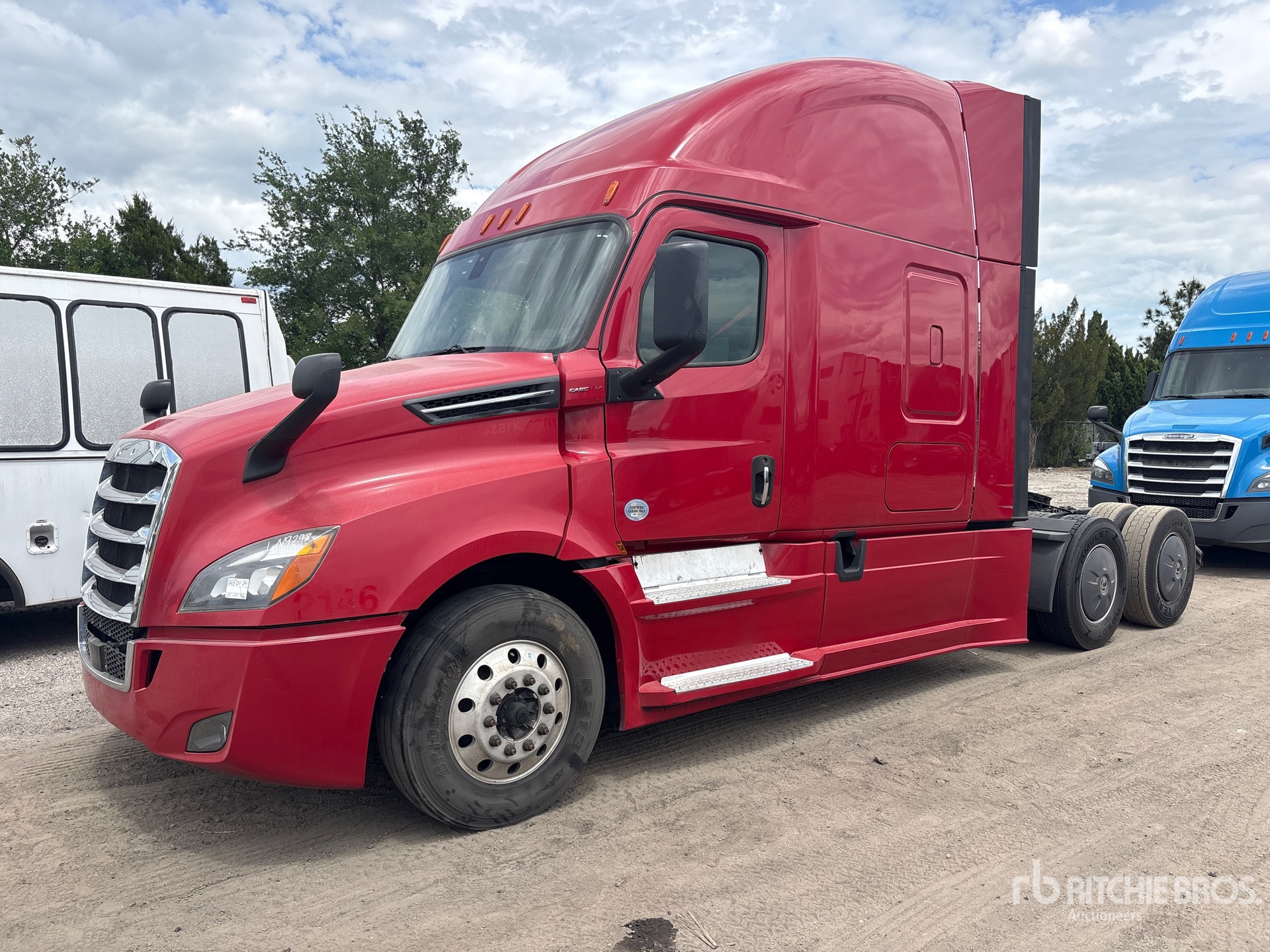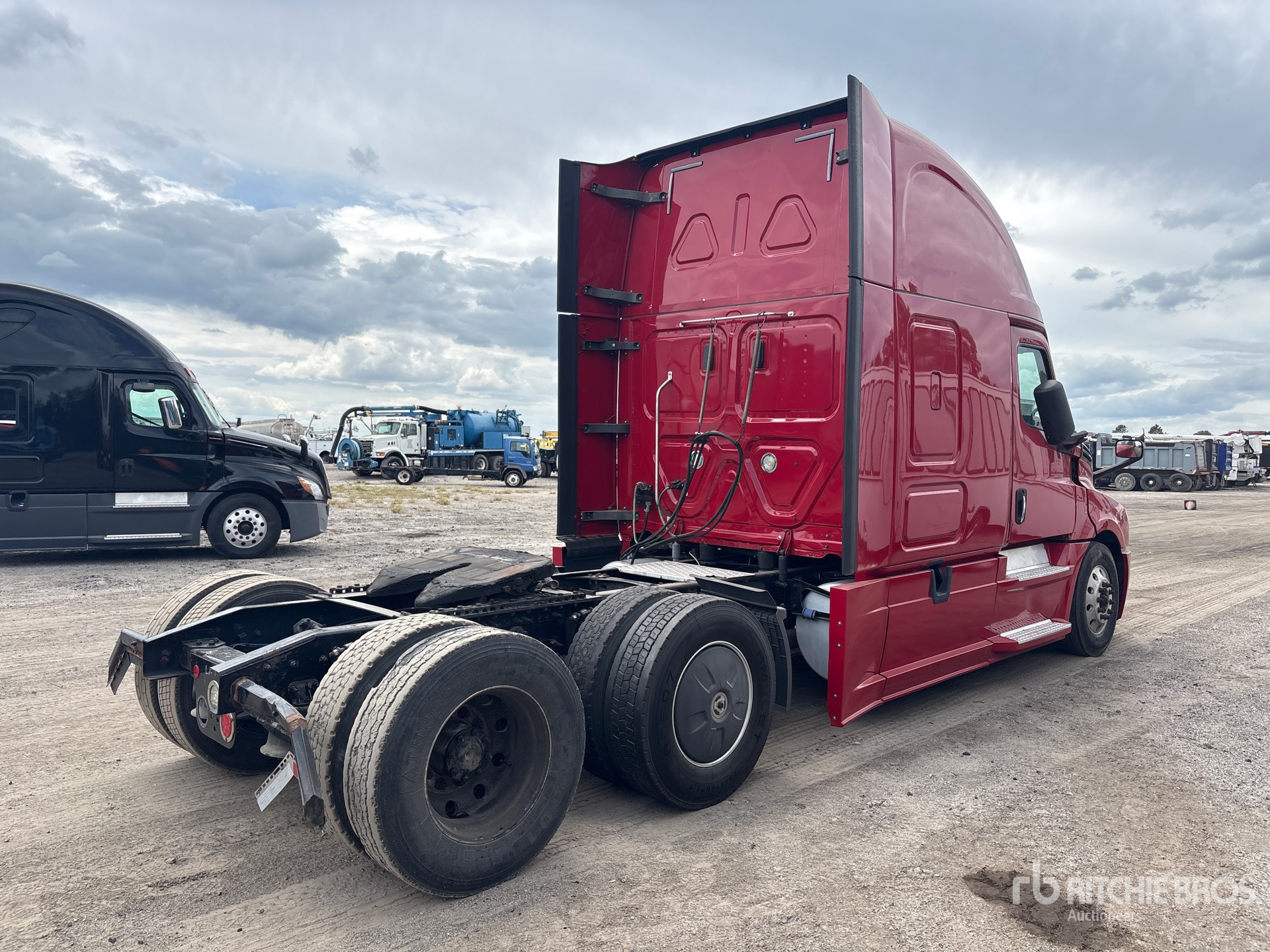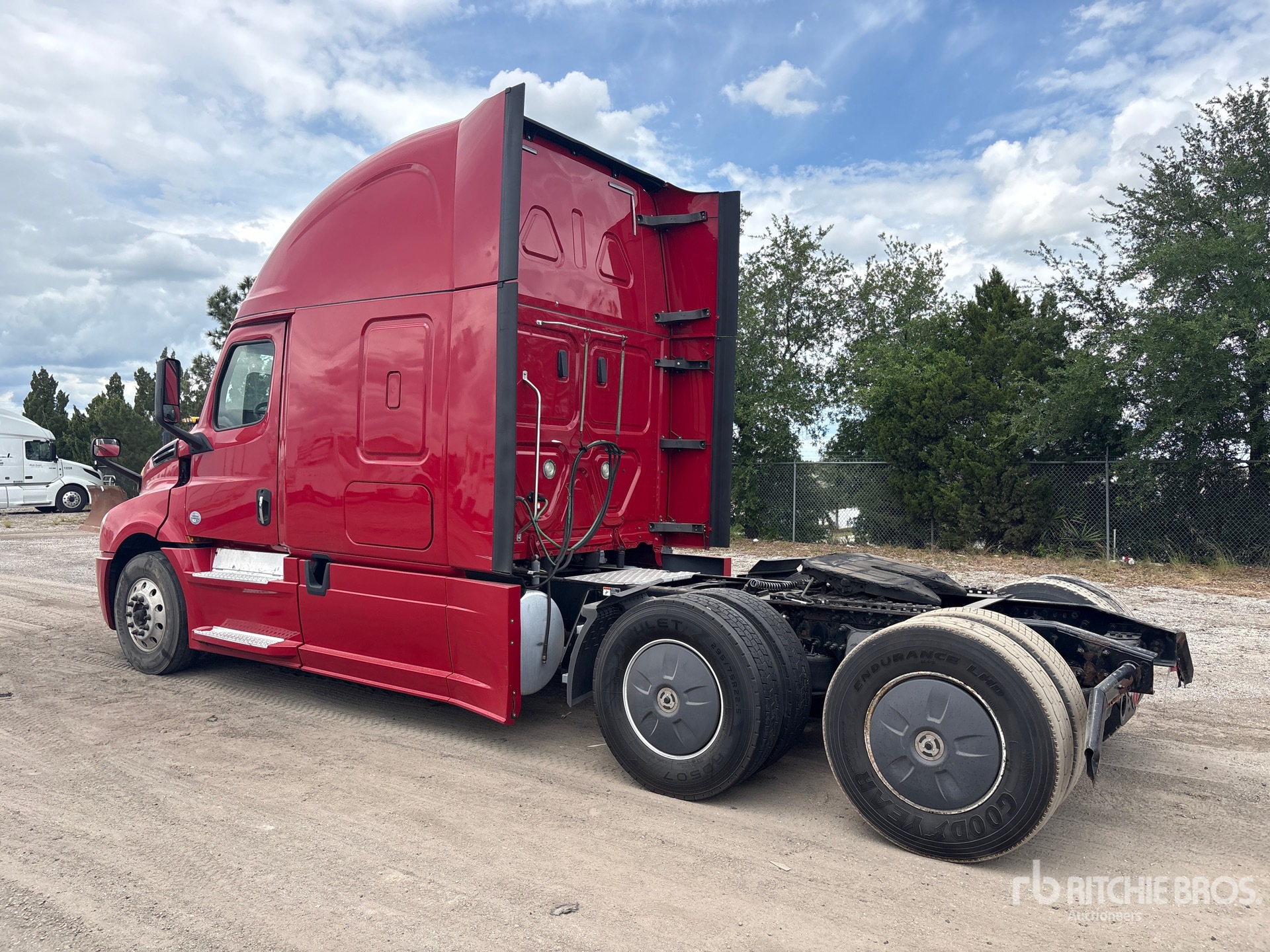 Moteur Detroit DD15 de 475 ch, transmission automatisée Detroit DT12-1750-DH1 à 12 vitesses, essieu avant de 5 443 kg, essieu arrière de 18 144 kg, PTAC de 23 590 kg, frein moteur, cabine couchette surélevée de 1,78 m, lits superposés, empattement de 5,72 m, suspension pneumatique, pneus 295/75R22.5, sellette d'attelage coulissante pneumatique, deux réservoirs de carburant.