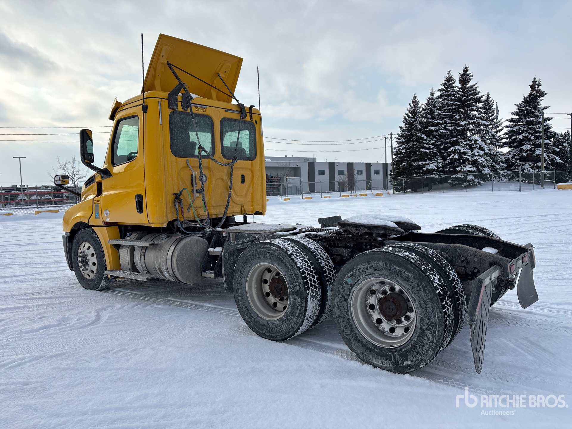 Moteur Detroit DD13 de 525 ch, homologué EPA 2019, moteur de 10 352 heures, transmission automatisée Detroit DT12-1650-OH1 à 12 rapports, essieu avant de 5 443 kg (12 000 lb), essieu arrière de 18 144 kg (40 000 lb), PTAC de 23 587 kg, frein moteur, différentiel autobloquant, empattement de 4,52 m (178 po), suspension pneumatique, jantes en aluminium, pneus 11R22.5, sellette d'attelage coulissante pneumatique, double réservoir de carburant.