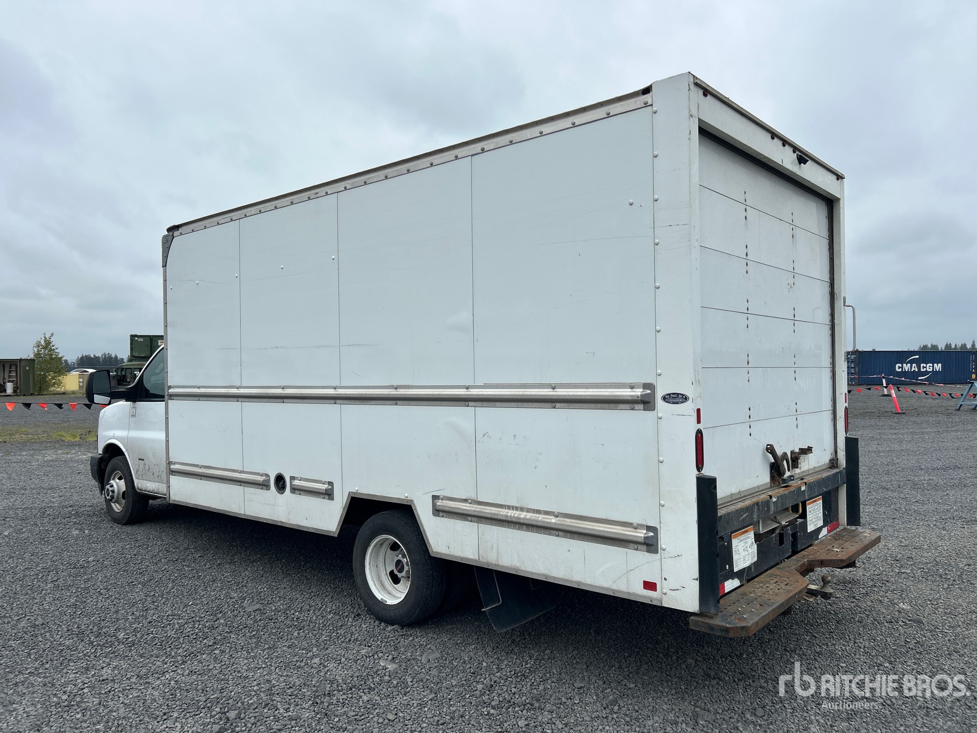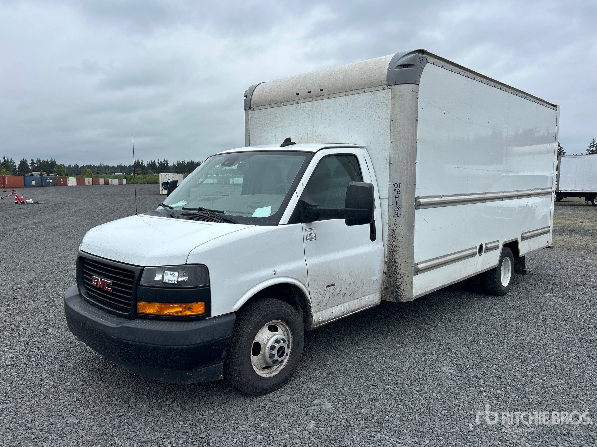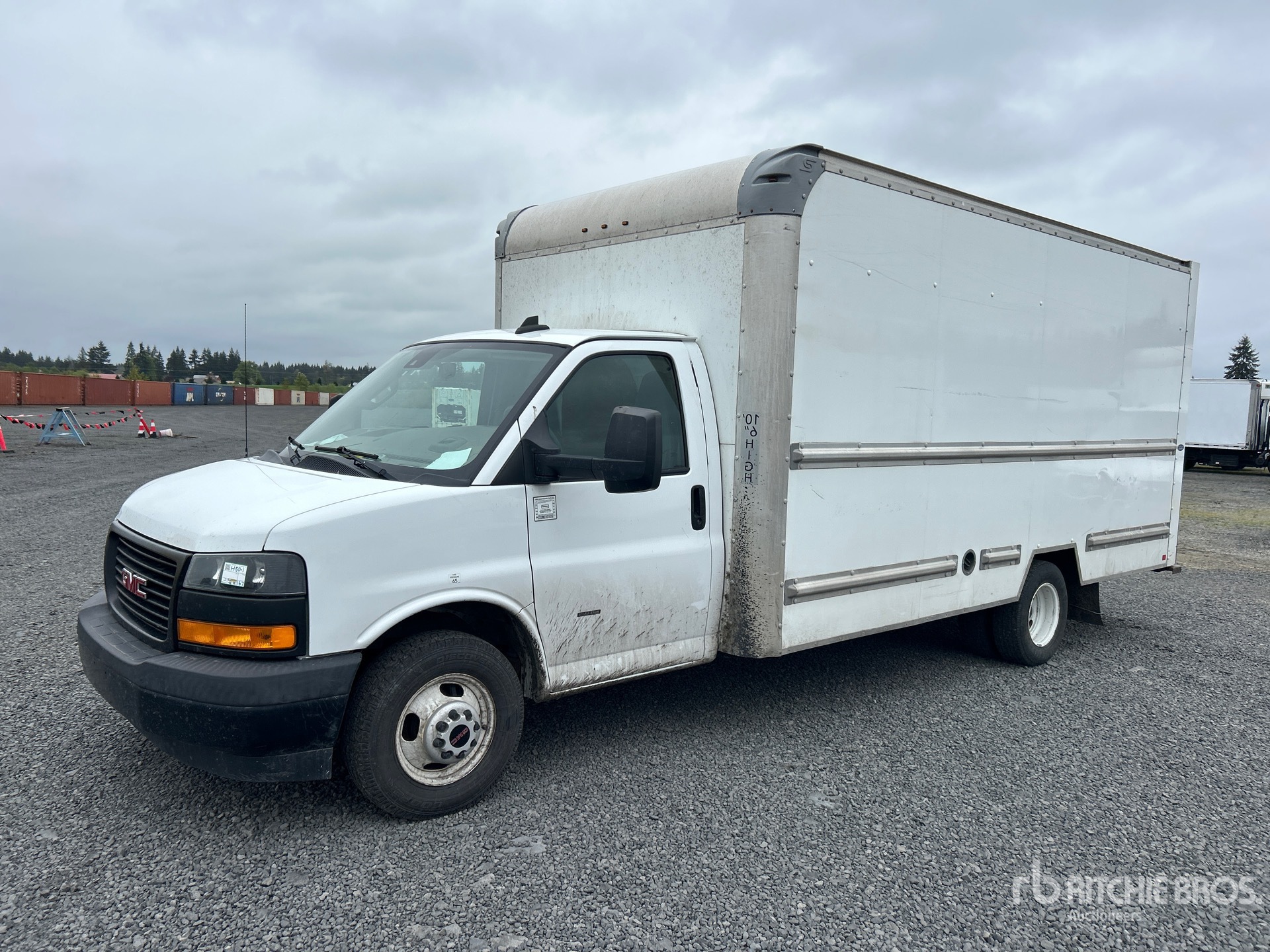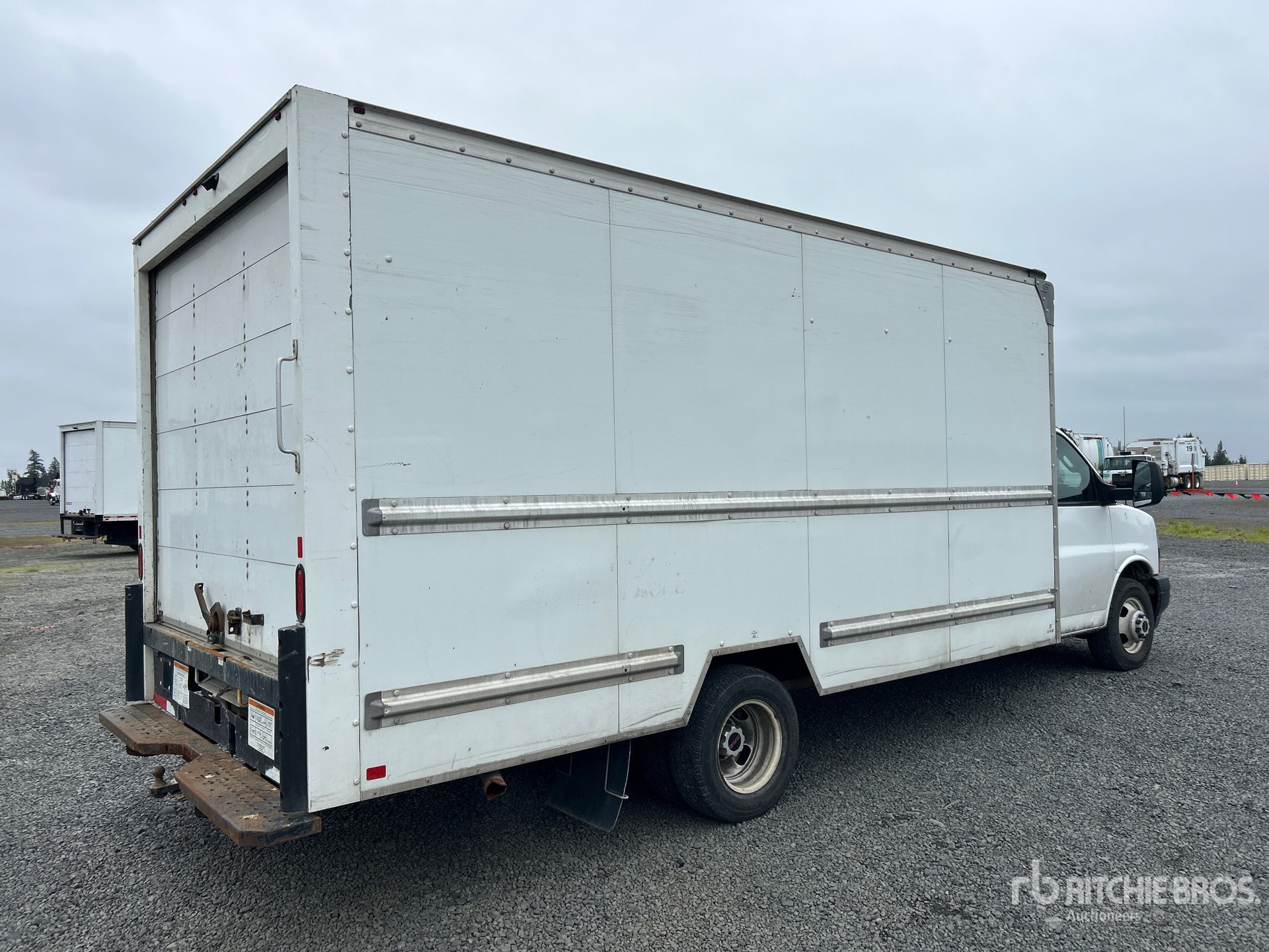 Situé sur la voie 34, emplacement 8, moteur à essence GM V8 6 L, homologué EPA 2020, transmission automatique, essieu avant de 1 950 kg, essieux arrière de 3 900 kg, PTAC de 5 580 kg, pneus 225/75R16, suspension à ressorts, empattement de 457 cm, carrosserie Supreme Corporation de 4,88 m x 2,44 m x 1,96 m, rampe d'accès