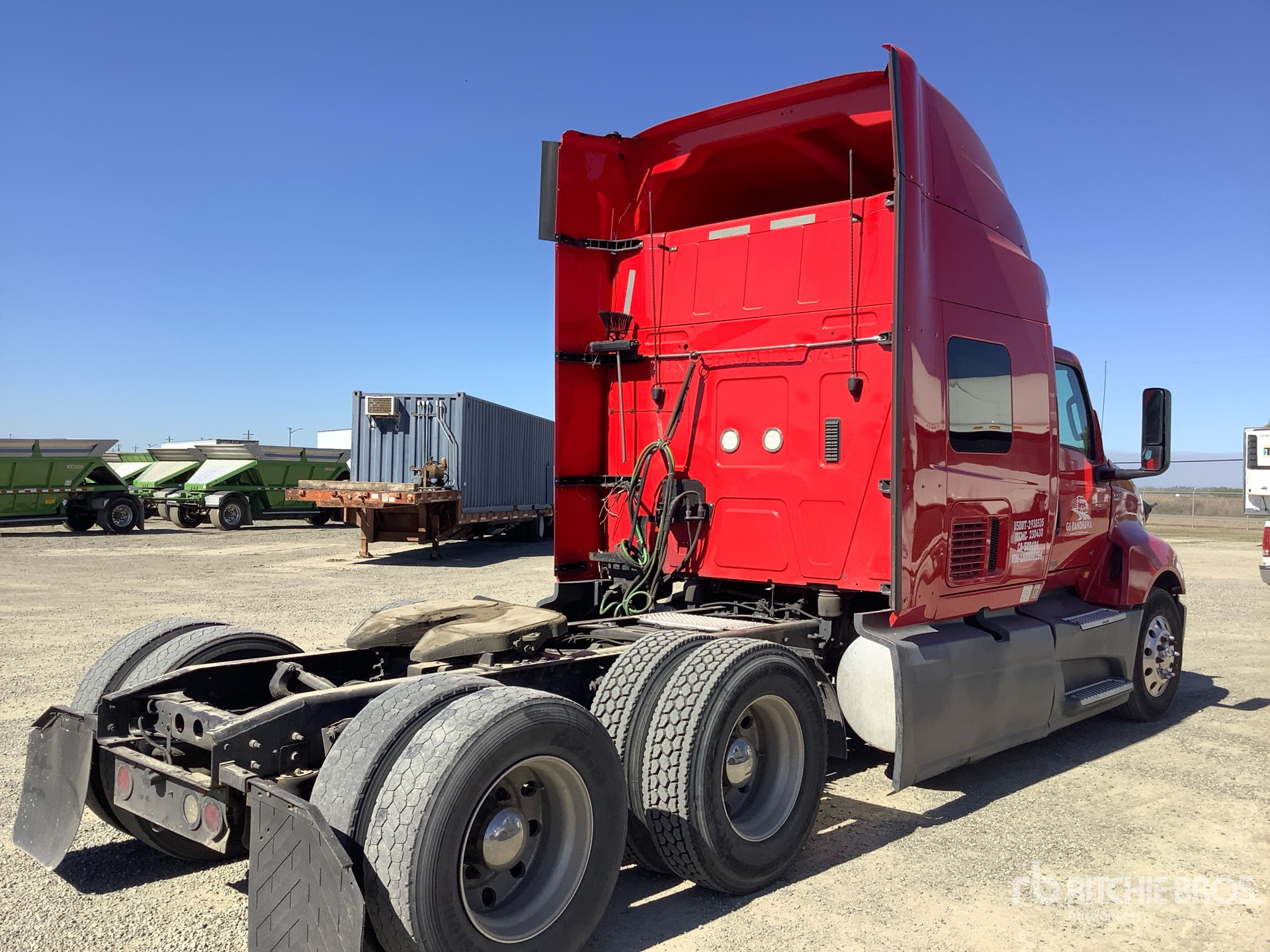 Moteur Cummins X15 de 400 ch, homologué EPA 2019, transmission automatisée, essieu avant de 5 600 kg, essieux arrière de 18 144 kg, PTAC de 23 700 kg, frein moteur, cabine couchette surélevée de 183 cm, lits superposés, empattement de 5,73 cm, suspension pneumatique, jantes en aluminium, pneus 295/75R22.5, attelage coulissant pneumatique, double réservoir de carburant
