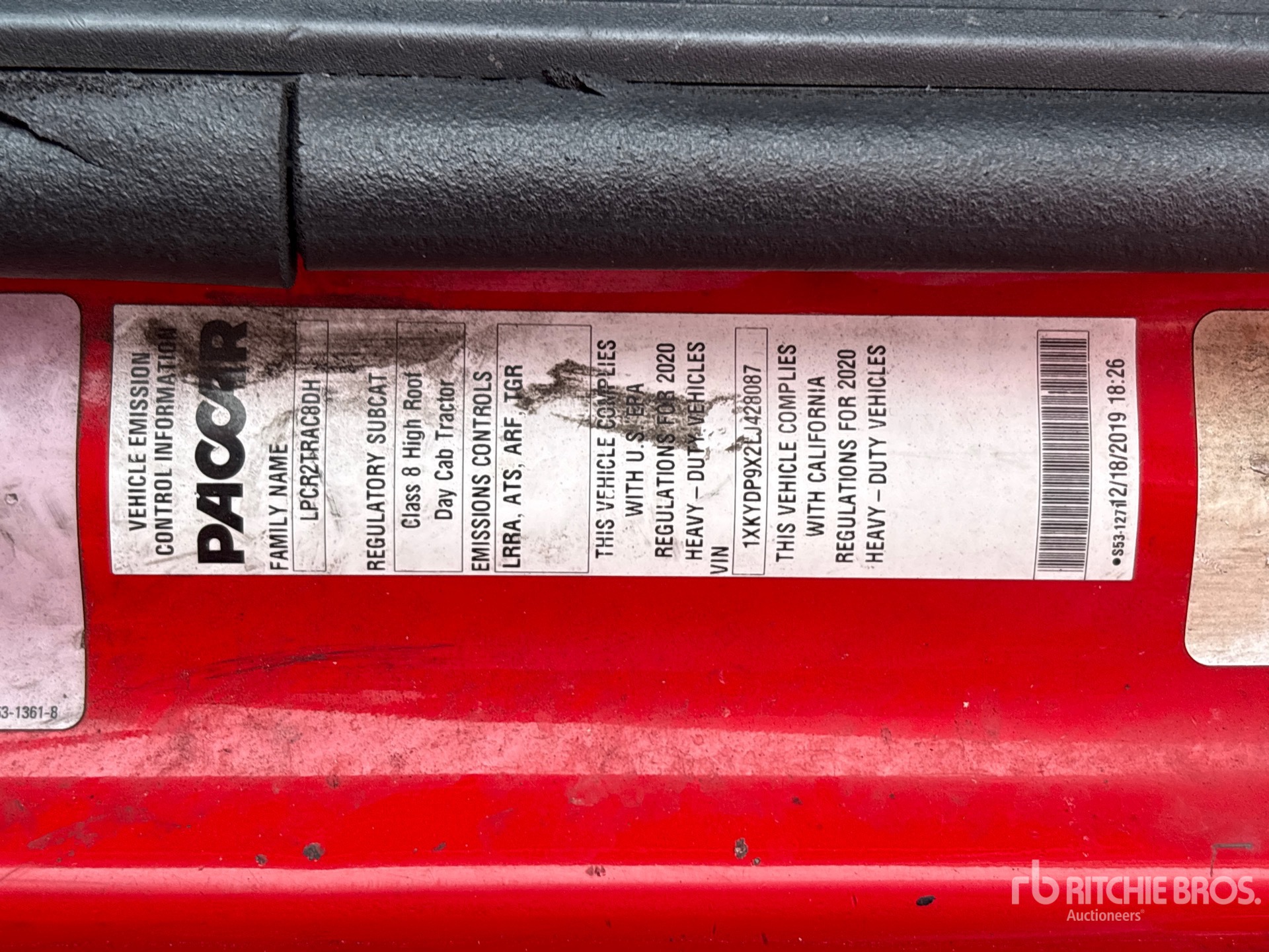 Moteur Paccar MX-13 de 455 ch, homologué EPA (États-Unis) 2019, boîte de vitesses automatisée Paccar PO-16F112C à 12 rapports, essieu avant de 5 987 kg, essieu arrière de 17 137 kg, PTAC de 23 230 kg, empattement de 457 cm, suspension pneumatique, pneus 295/75R22.5