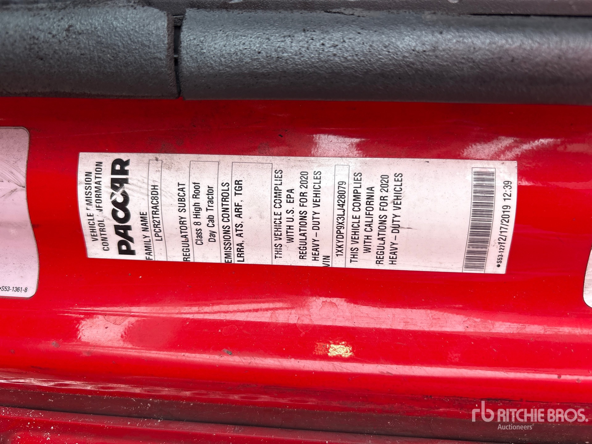 Moteur Paccar MX-13 de 455 ch, homologué EPA (États-Unis) 2019, boîte de vitesses automatisée Paccar PO-16F112C à 12 rapports, essieu avant de 5 987 kg, essieu arrière de 17 137 kg, PTAC de 23 230 kg, empattement de 457 cm, suspension pneumatique, pneus 295/75R22.5