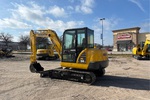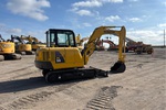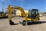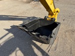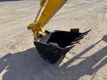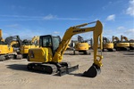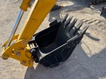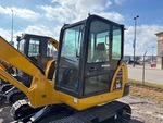 Cabine fermée, climatisation, bras de 1,63 m, lame de remblayage, chenilles à triple crampon de 39,4 cm, attache rapide manuelle, godet de terrassement de 66 cm