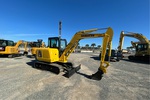 Située sur la voie 2, emplacement 22, cabine fermée, climatisation, bras de 1,68 m, lame de remblayage, chenilles à triple crampon de 40,6 cm, attache rapide manuelle, godet de terrassement de 45,7 cm