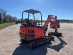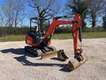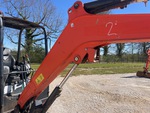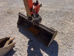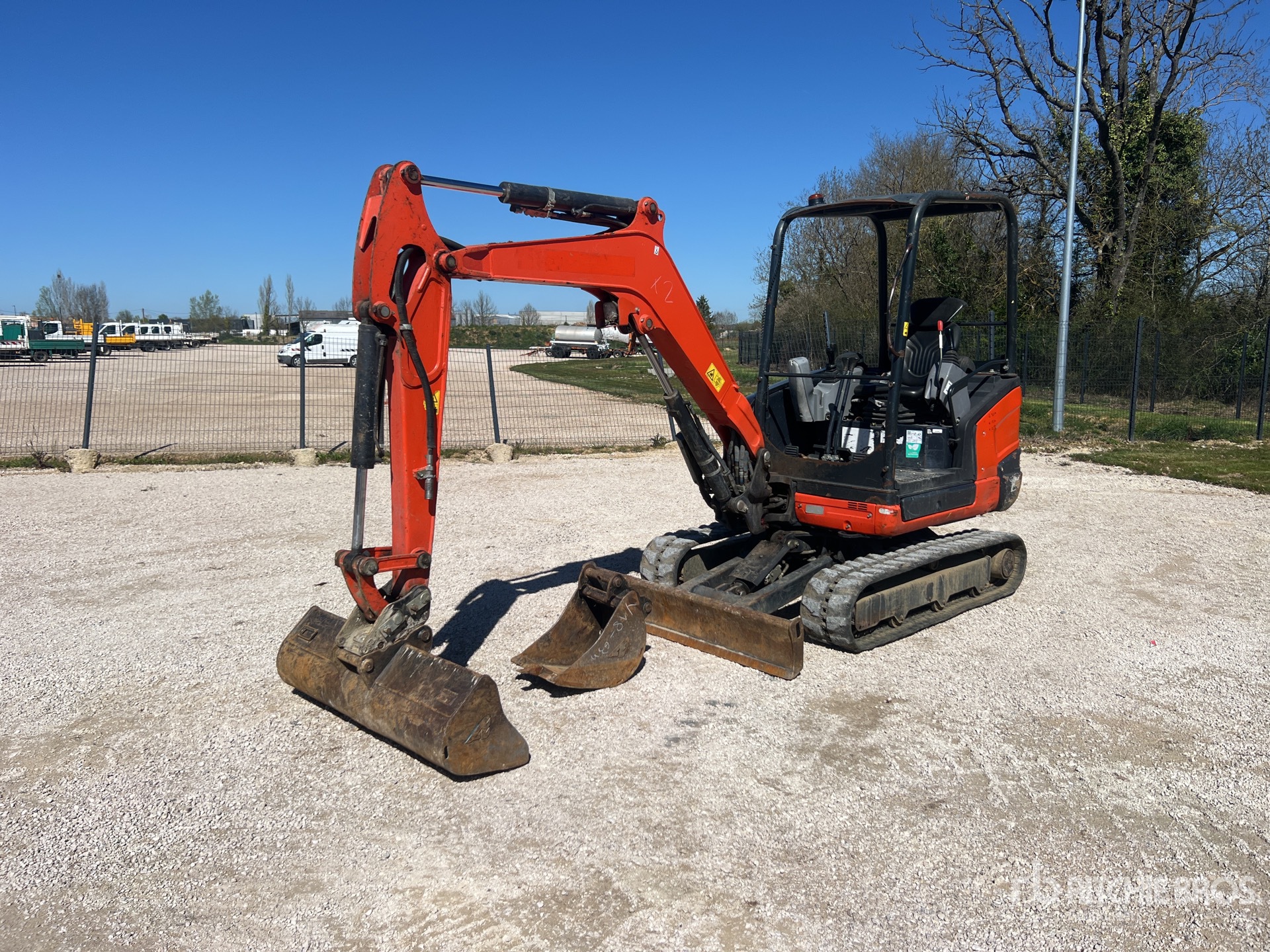 Flèche pivotante, bras de 1 300 mm, circuit hydraulique auxiliaire, clapet antiretour du bras, clapets anti-retour de la flèche, lame de remblayage, chenilles en caoutchouc de 300 mm, attache rapide manuelle, godet de nettoyage de 1 170 mm, godet de terrassement supplémentaire