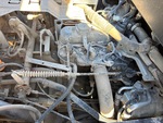 Composants/systèmes défectueux : moteur, transmission (absence totale de mouvement de la transmission), débris sur et sous le moteur, roue avant gauche tordue et pneu crevé, fuite de liquide sous la cabine côté droit, nombreux points de dommages.