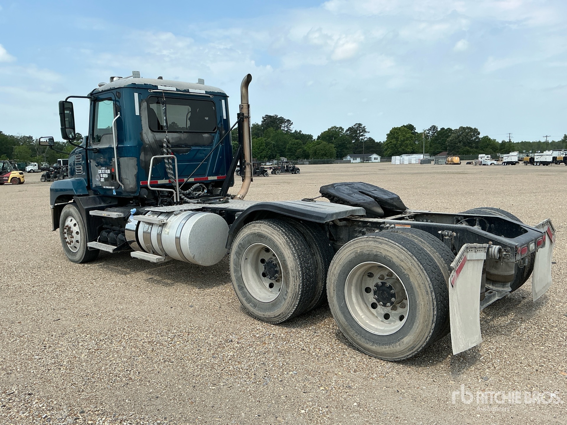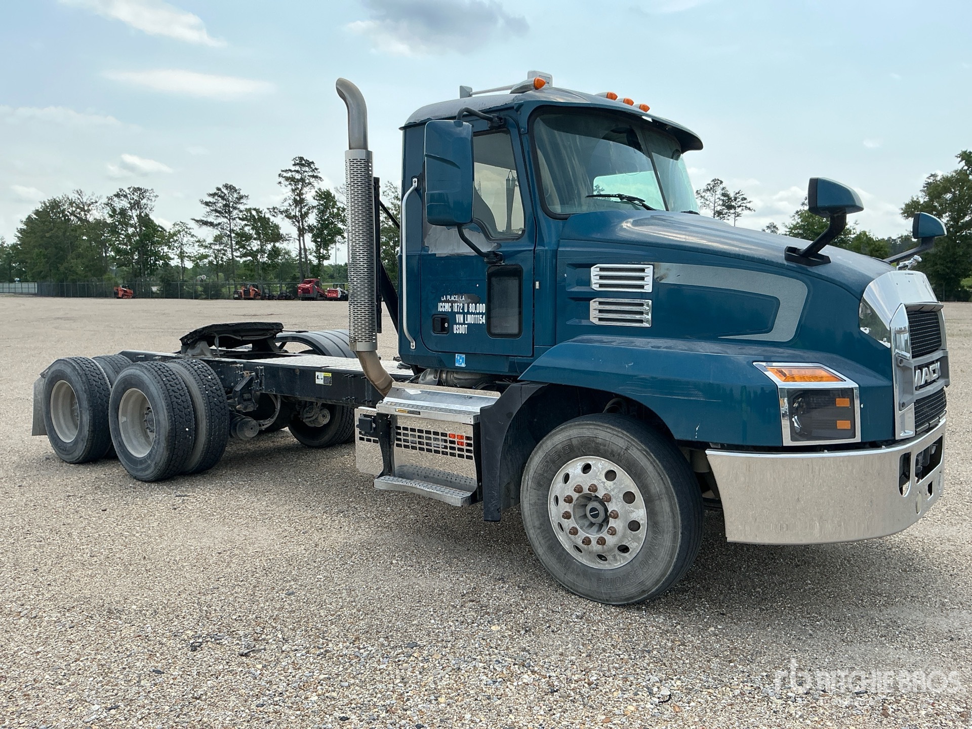 Moteur Mack MP7 de 395 ch, homologué EPA 2019, 19 717 heures moteur, essieu avant de 5 443 kg, essieux arrière de 18 144 kg, PTAC de 23 591 kg, empattement de 5,21 m, suspension pneumatique, jantes en aluminium, pneus 295/75R22.5, sellette d'attelage coulissante pneumatique