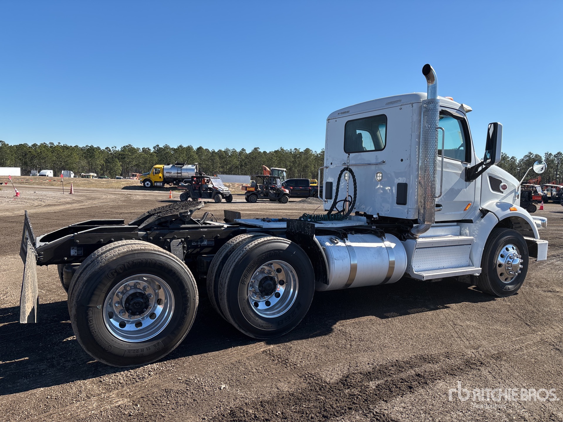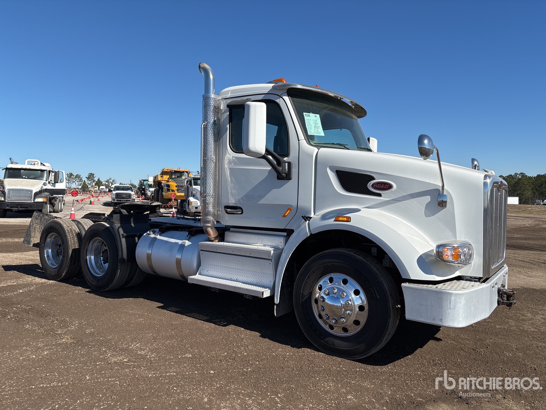 Moteur Cummins X15 de 450 ch, homologué EPA 2019, 10 526 heures de fonctionnement, transmission automatique Allison, essieu avant de 5 600 kg, essieux arrière de 20 860 kg, PTAC de 26 400 kg, frein moteur, différentiel autobloquant, empattement de 4,67 m, suspension pneumatique, jantes extérieures en aluminium, pneus 11R22.5, sellette attelage coulissant pneumatique, double réservoir de carburant.