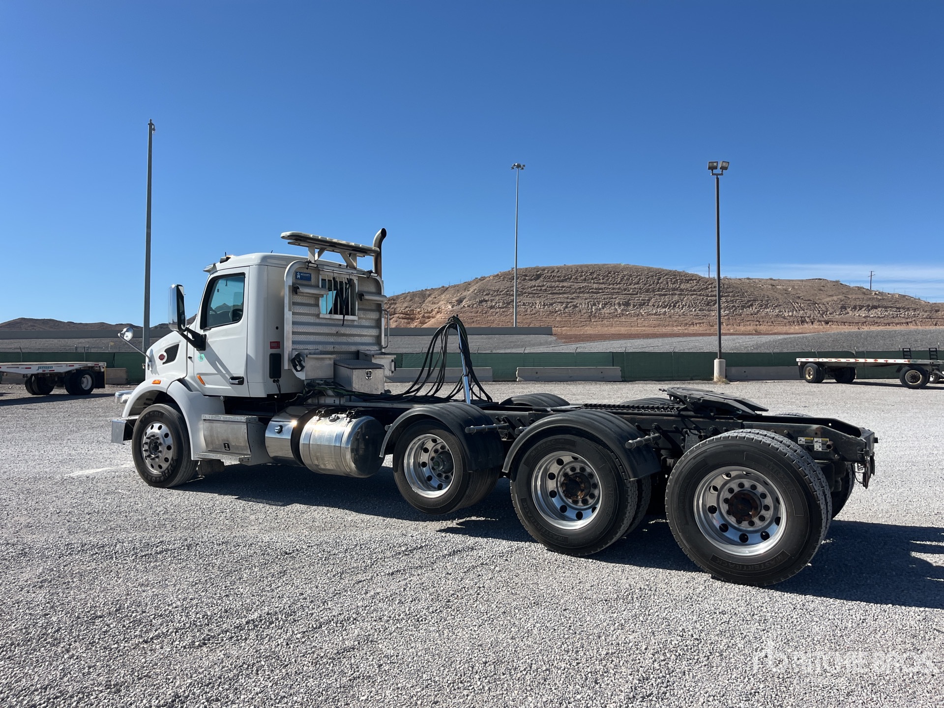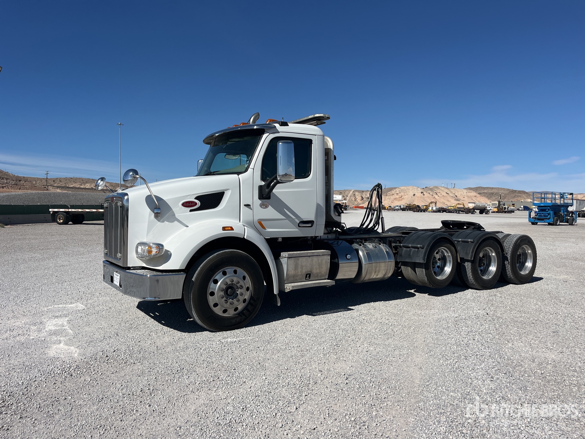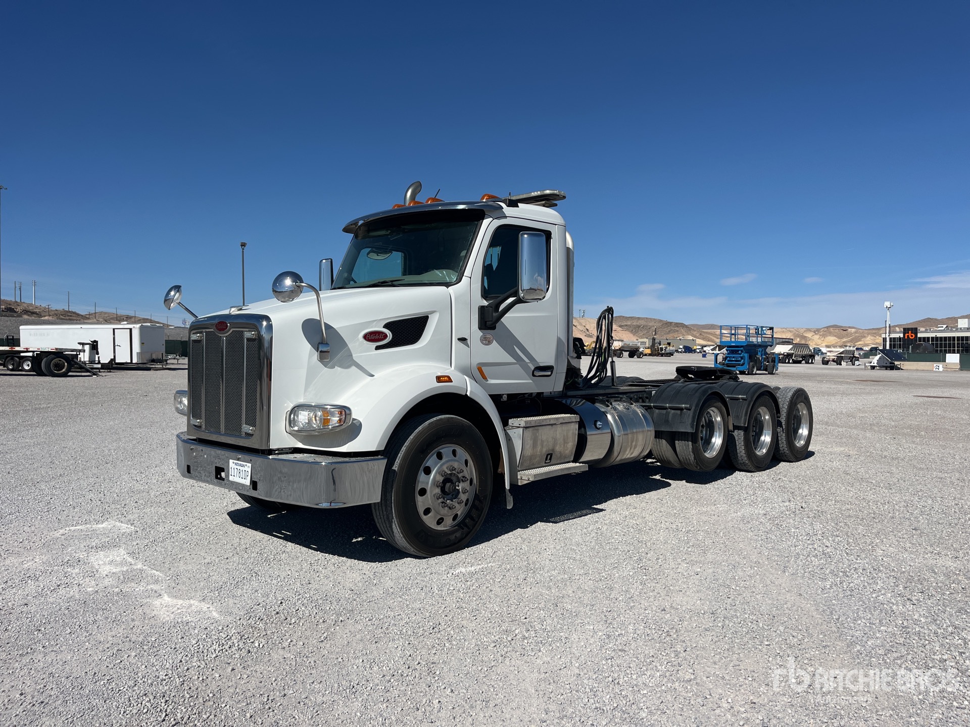 Moteur Paccar 510 ch, homologué EPA 2019, 12 474 heures moteur, boîte de vitesses manuelle Eaton Fuller RTLO-18918B à 18 rapports, essieu avant de 6 500 kg, essieu arrière de 20 860 kg, PTAC de 33 830 kg, frein moteur, empattement de 6,7 m, suspension pneumatique, essieu porteur pneumatique, jantes en aluminium, pneus 11R24.5, châssis renforcé, trousse hydraulique, sellette d'attelage coulissante pneumatique, deux réservoirs de carburant, porte-bagages de cabine