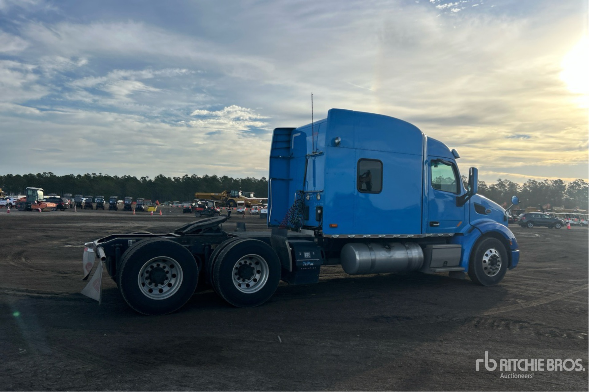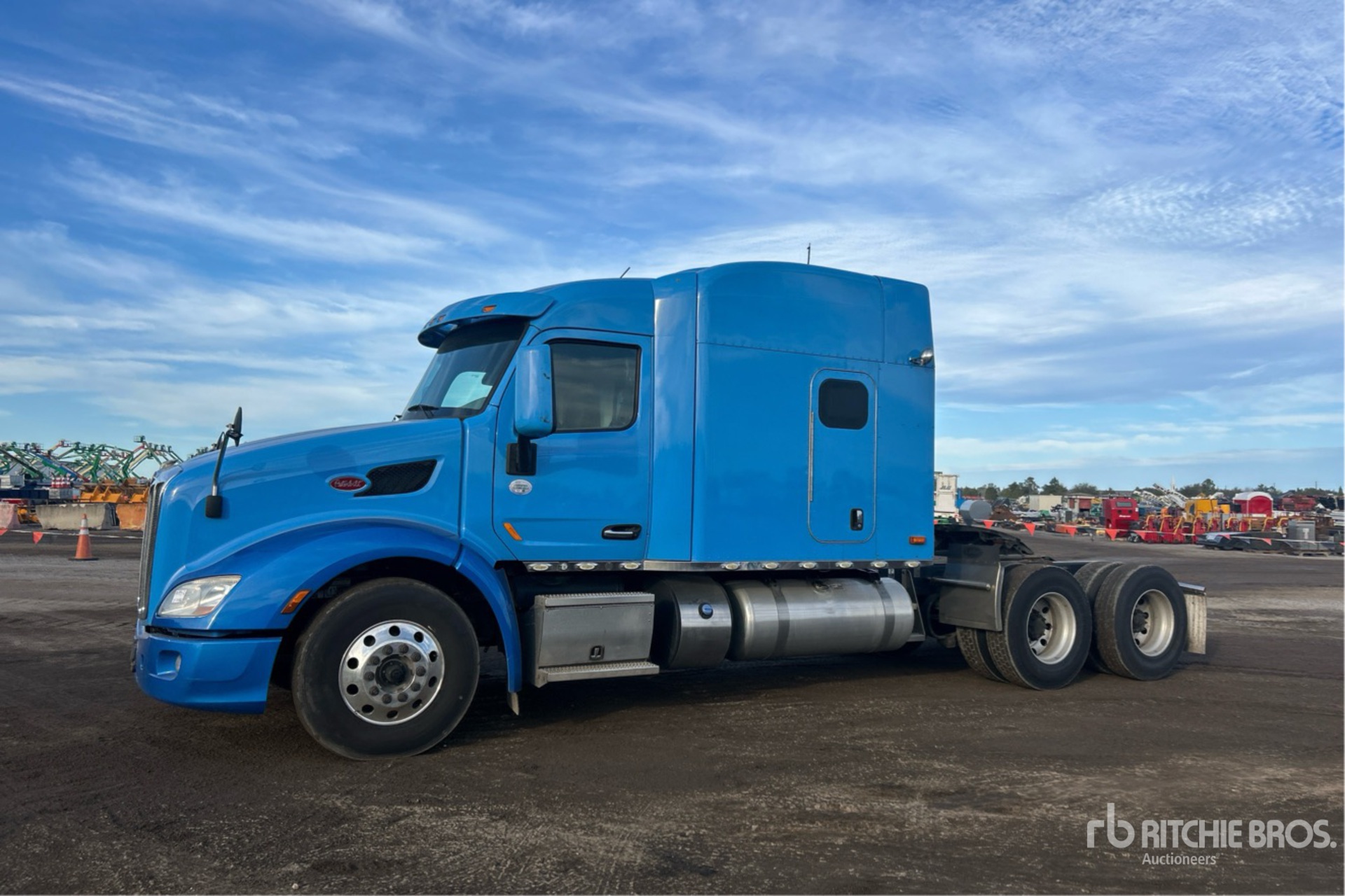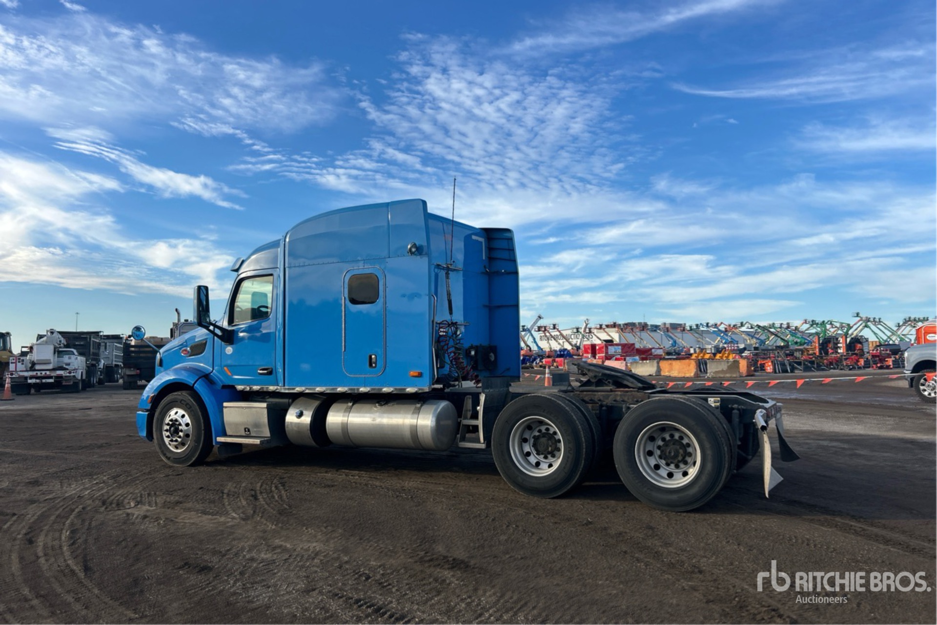 Situé sur la voie 203, emplacement 39, moteur Cummins X15 de 500 ch, étiquette EPA américaine 2019, 15 977 heures de fonctionnement, transmission automatisée Eaton Fuller, essieu avant de 13 200 lb, essieux arrière de 38 000 lb, PTAC de 51 200 lb, frein moteur, cabine couchette à toit surélevé de 80 po, groupe auxiliaire de puissance, empattement de 243 po, suspension pneumatique, jantes en aluminium, pneus 11R22.5, sellette d'attelage coulissante pneumatique, deux réservoirs de carburant.