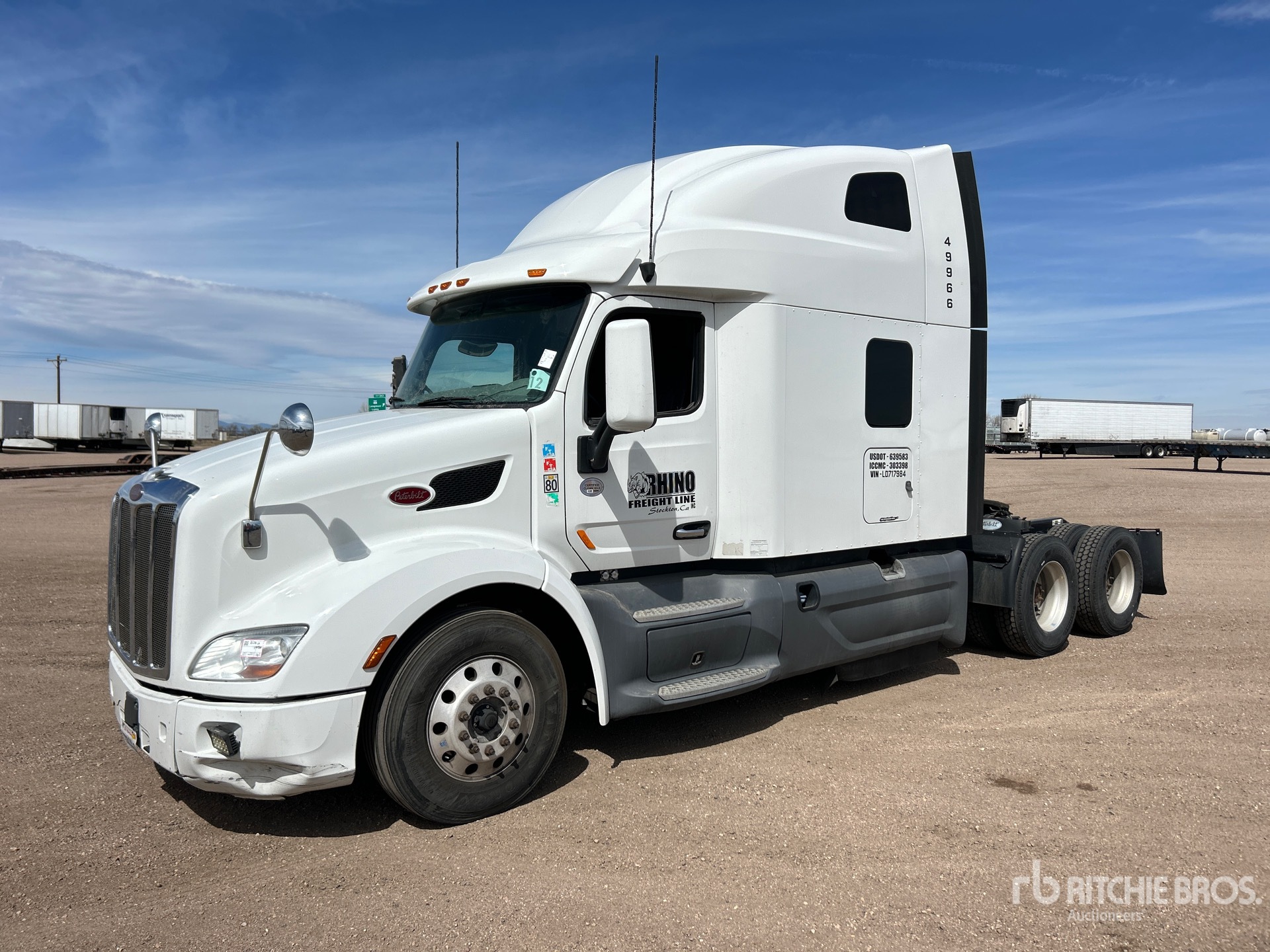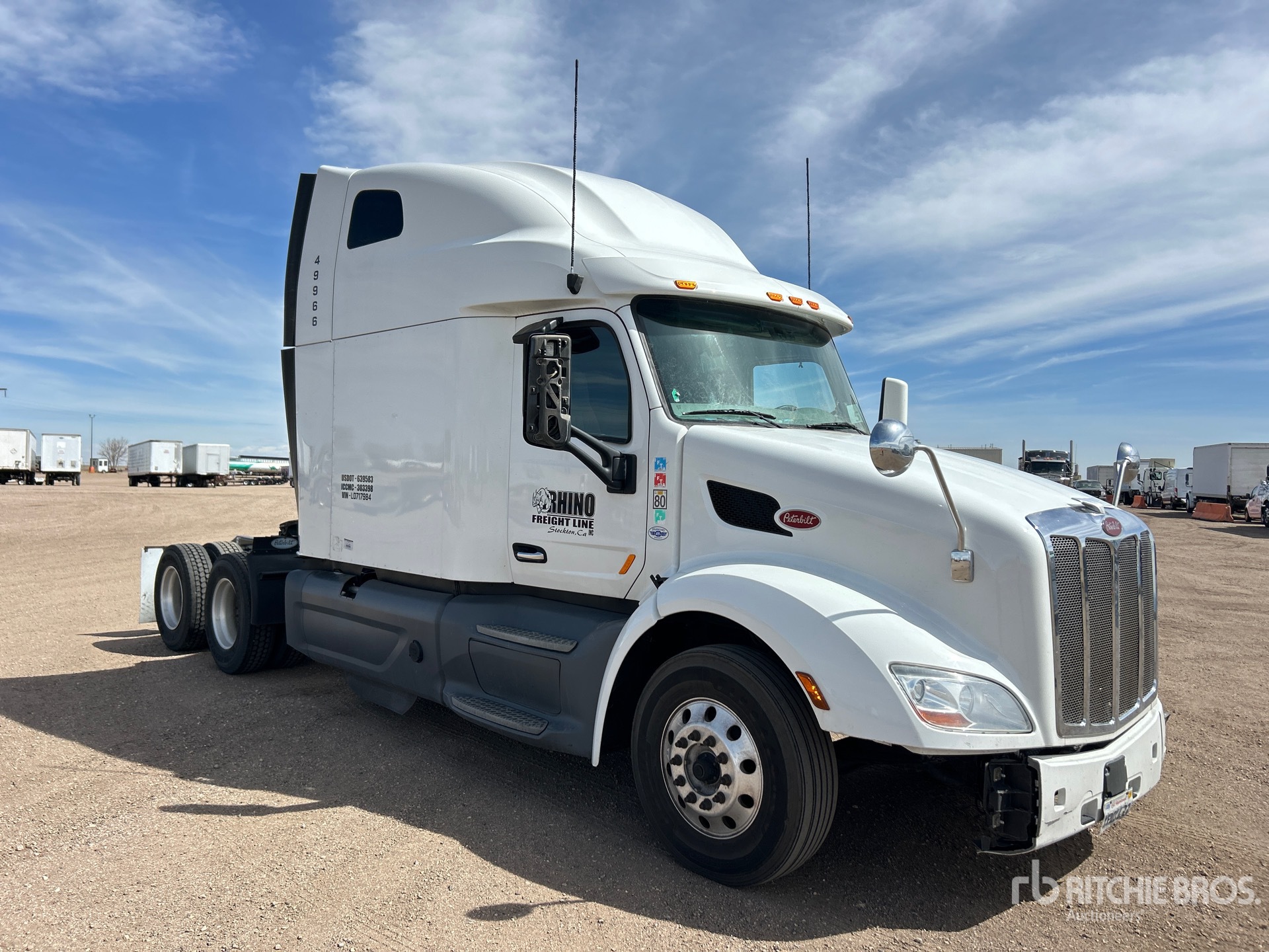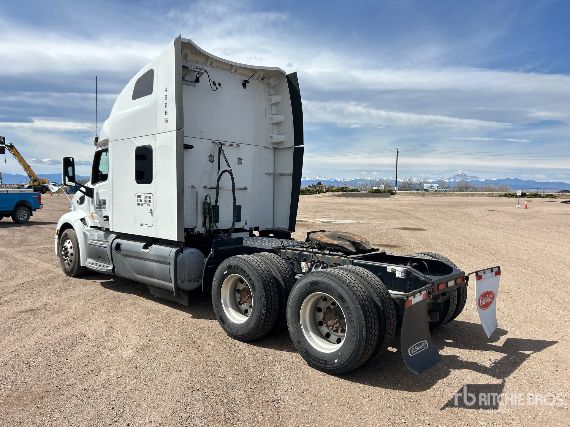 Situé sur la voie 11, emplacement 31, Paccar MX-13, moteur de 455 ch, homologué EPA 2019, 14 190 heures moteur, transmission automatisée, essieu avant de 13 200 lb, essieu arrière de 40 000 lb, PTAC de 53 200 lb, frein moteur, cabine couchette surélevée de 72 po, empattement de 242 po, suspension pneumatique, jantes extérieures en aluminium, pneus 295/75R22.5, sellette d'attelage coulissante pneumatique, deux réservoirs de carburant.