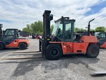 Située dans la voie 52, cabine fermée, mât à deux étages, hauteur de levage maximale de 340 cm, hauteur de mât abaissée de 335 cm, fourches de 241 cm, déport latéral, positionneur de fourches, étiquette EPA américaine 2019, moteur diesel Hino AA-JO8E-WV 6 cylindres 168 ch 7,6 L, nécessite un fluide d'échappement diesel