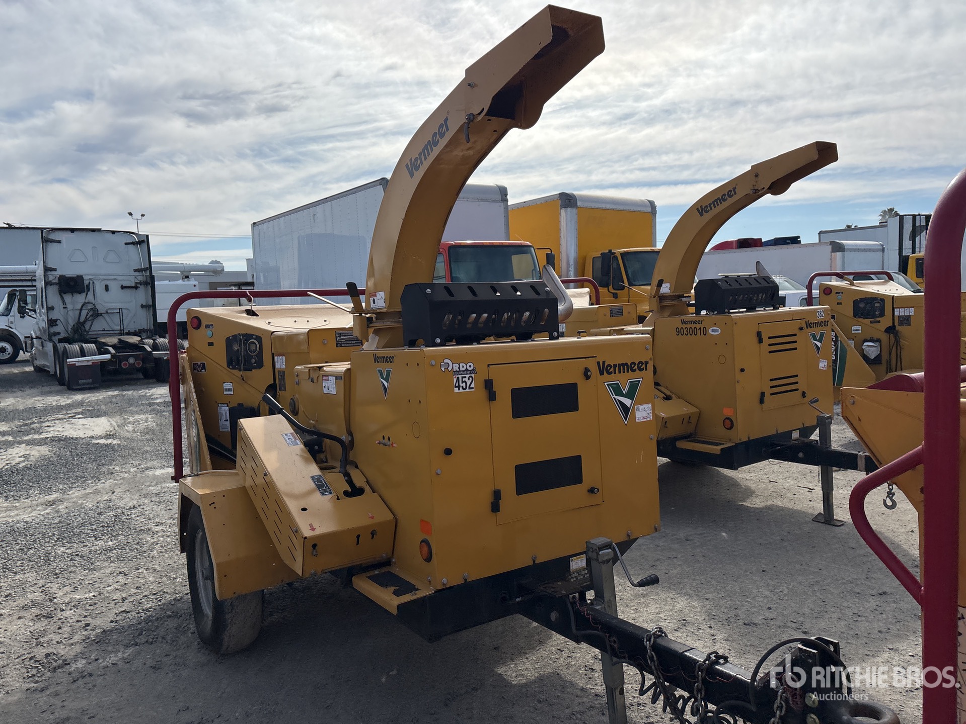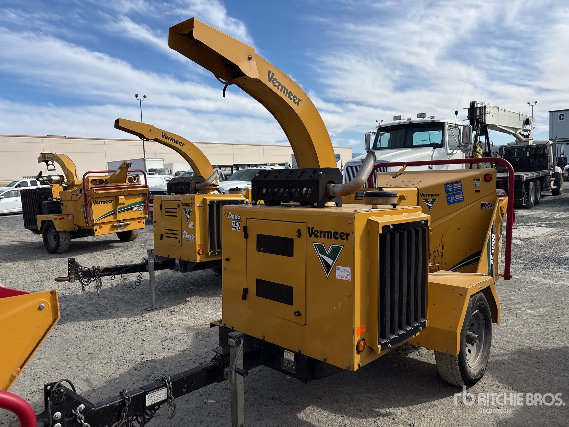 Étiquette EPA américaine 2019, moteur diesel Deutz 4 cylindres 2,9 L, ouverture d'alimentation de 63,5 cm (25 po), goulotte d'éjection pivotante, remorque porte-anneaux Lunette, freins électriques, équipement fourni par Mowbrays Tree Service