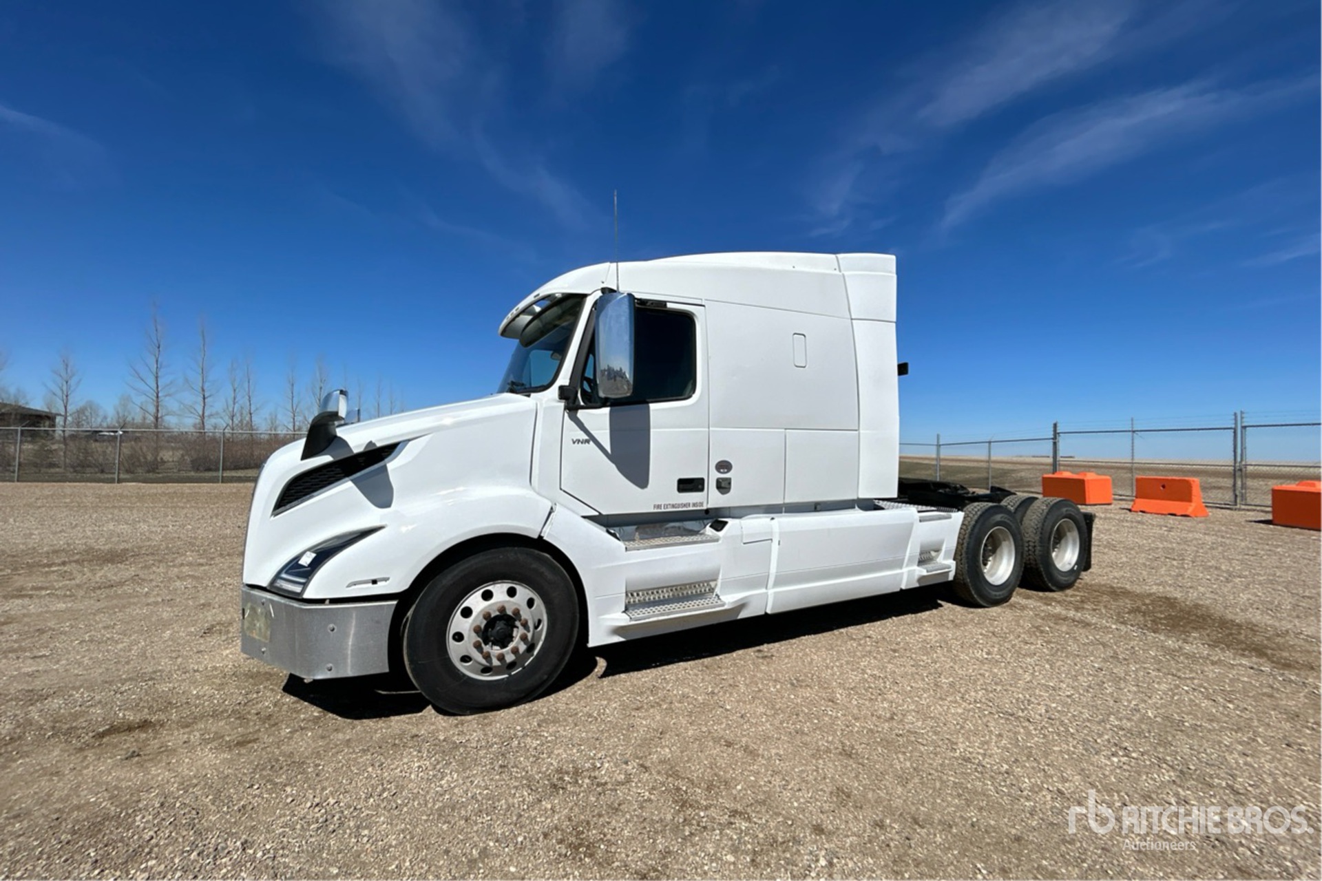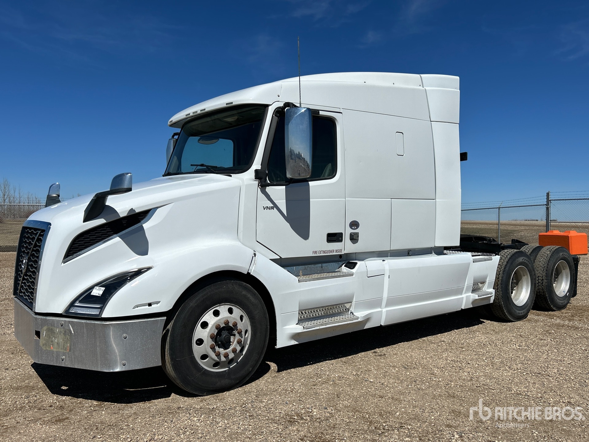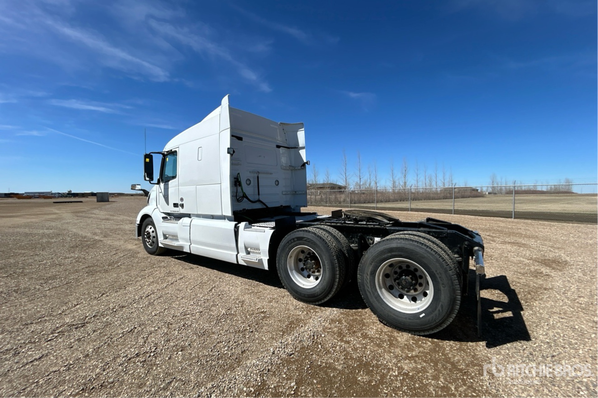 Situé sur la voie 2, emplacement 24, moteur Volvo, 7 483 heures moteur, transmission automatisée Volvo AT2612F à 12 vitesses, essieu avant de 6 624 kg, essieux arrière de 20 864 kg, PTAC de 27 444 kg, frein moteur, blocage de différentiel, cabine couchette surélevée de 155 cm, chauffage de couchette, empattement de 583 cm, suspension pneumatique, jantes extérieurs en aluminium, pneus 11R22.5, sellette d'attelage coulissante pneumatique, deux réservoirs de carburant.