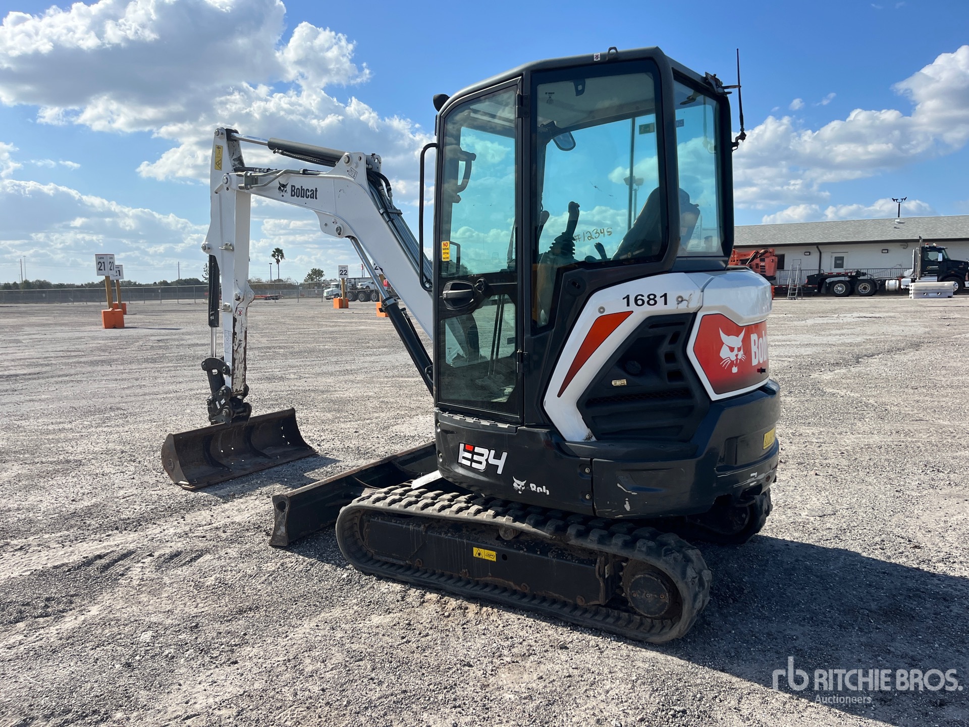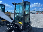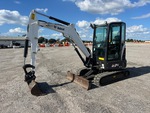 Situé sur la voie 15, emplacement 35, cabine fermée, conforme à la norme Tier 4, étiquette EPA américaine 2021, flèche pivotante, bras de 1,63 m, circuit hydraulique auxiliaire, lame de remblayage, chenilles en caoutchouc de 31,75 cm, attache rapide manuelle, godet de nettoyage de 114,32 cm. Équipement fourni par Vallencourt Construction.