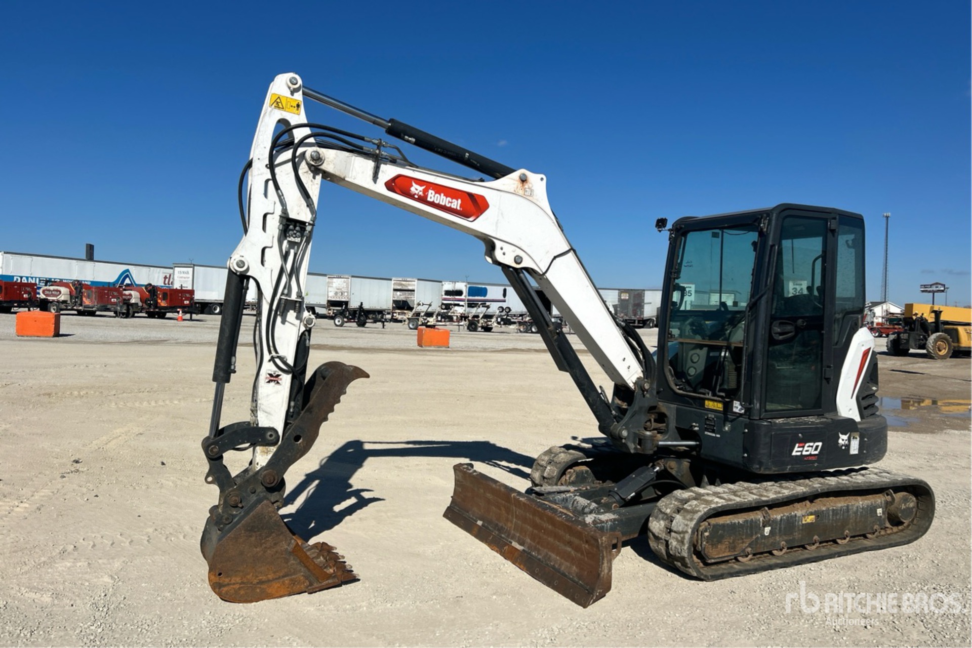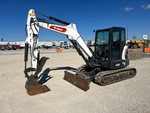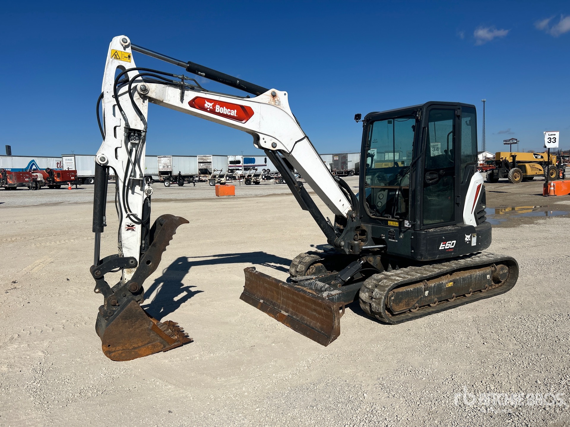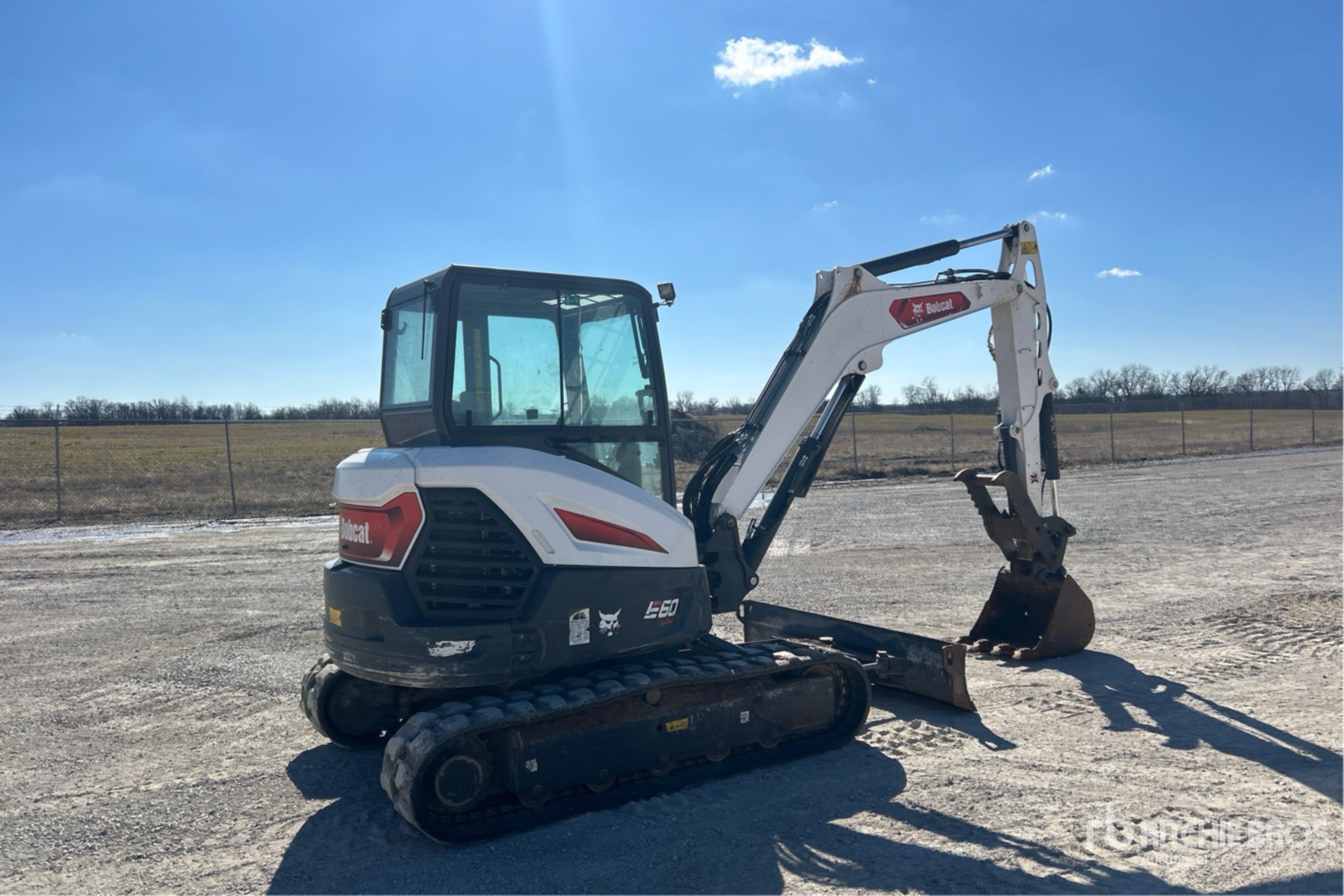 Cabine fermée, climatisation, homologation EPA américaine 2021, flèche pivotante, bras de 1,93 m, circuit hydraulique auxiliaire, lame à angle motorisé, chenilles en caoutchouc de 39,4 cm, attache rapide hydraulique, godet de 61 cm, pince hydraulique