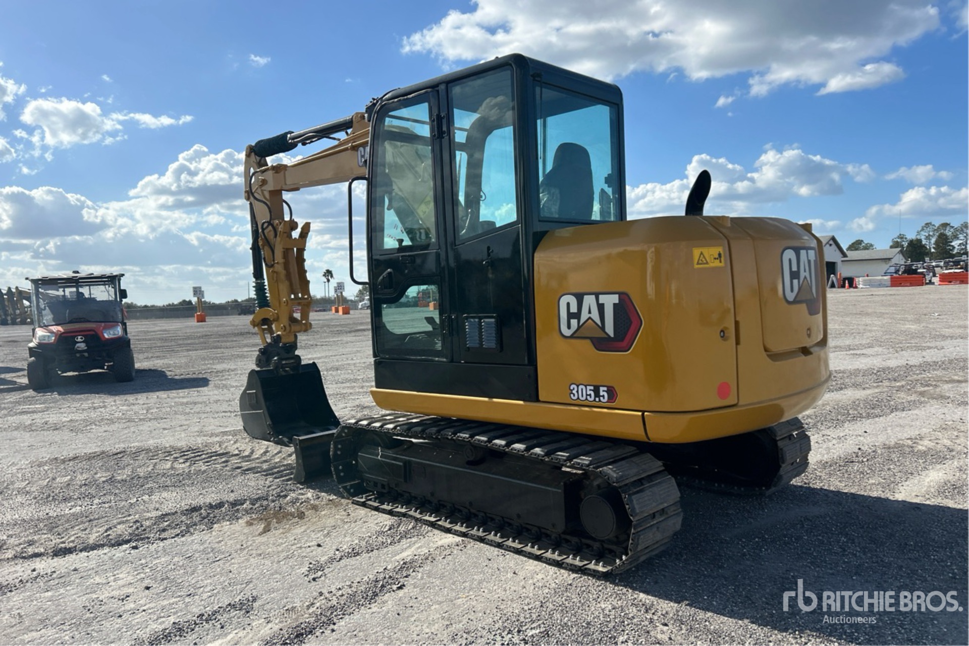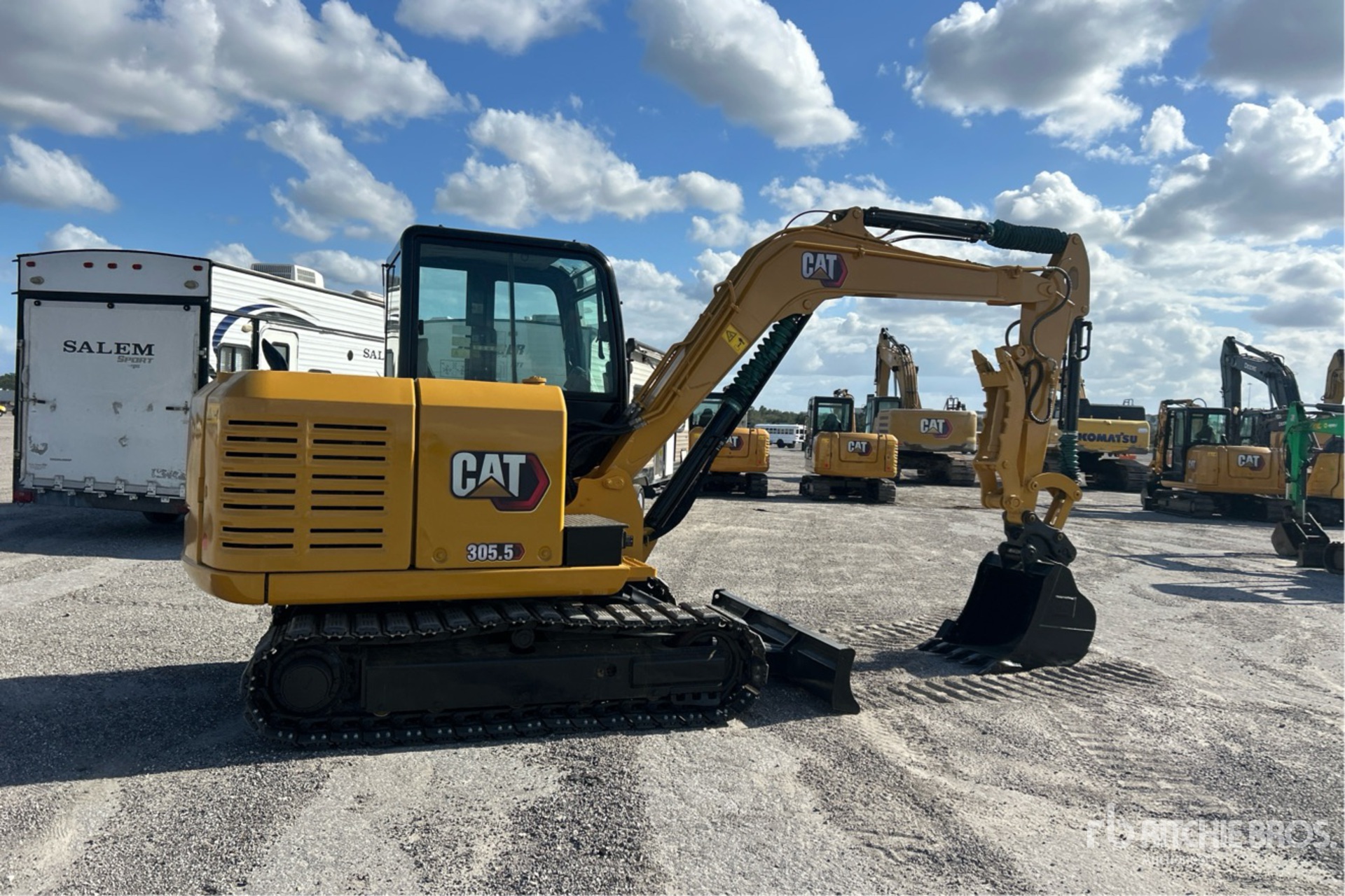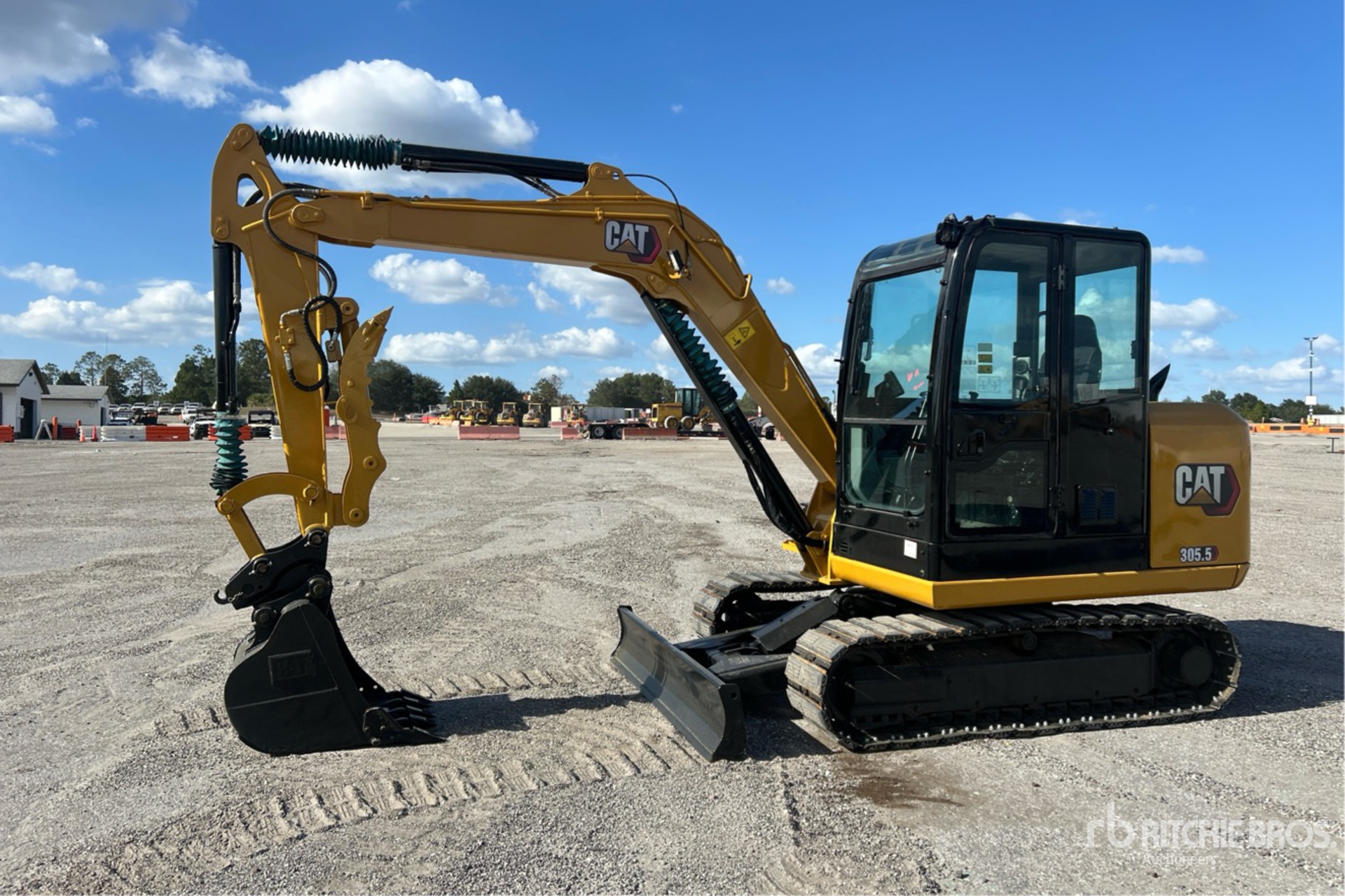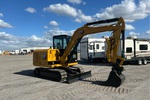 Cabine fermée, climatisation, sélecteur de mode de conduite, homologation EPA américaine 2019, bras de 1,5 m, lame de remblayage, chenilles à triple crampons de 40,6 cm avec inserts en caoutchouc, attache rapide manuelle, godet de terrassement de 68,6 cm, pince hydraulique