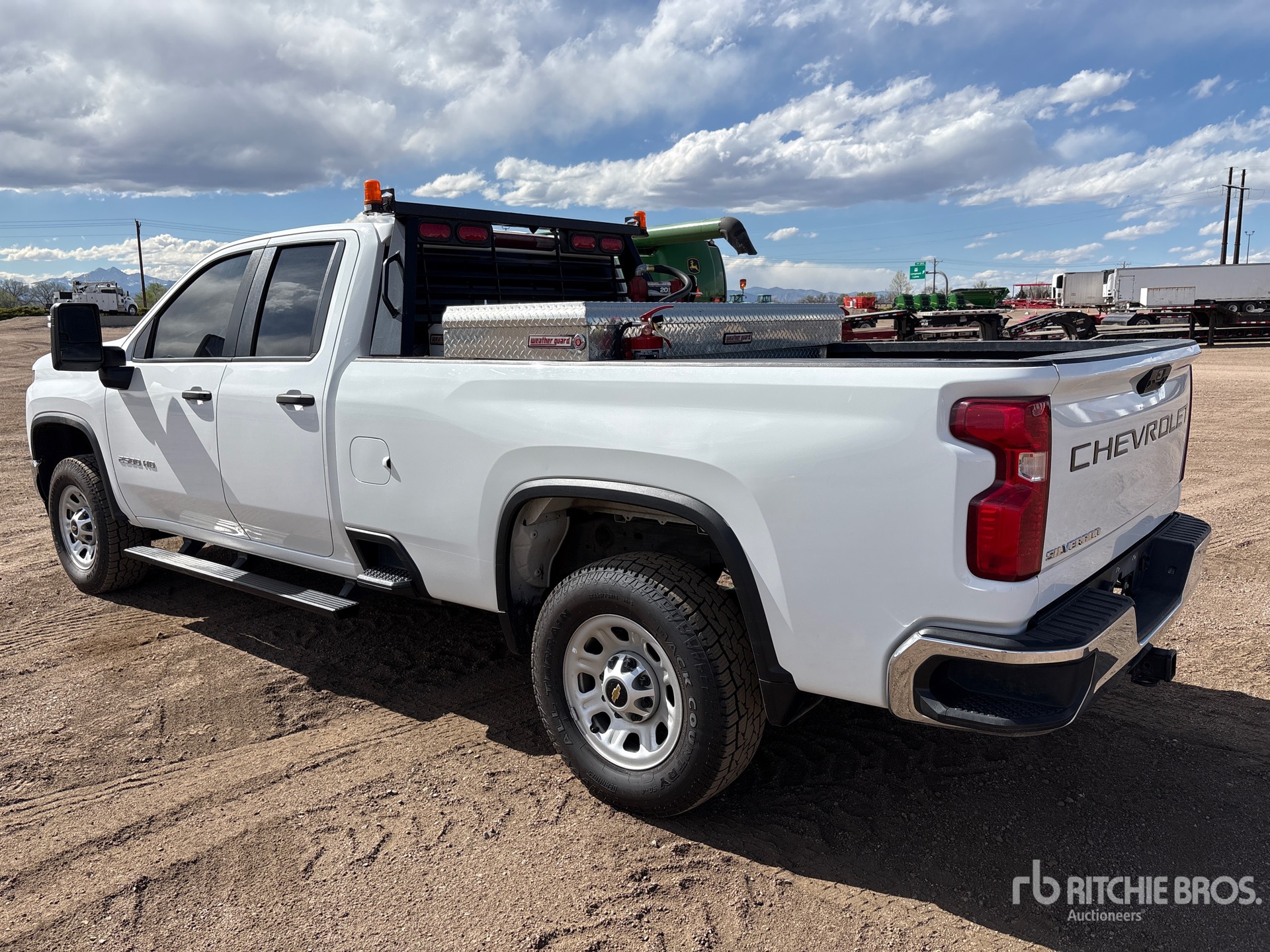Situé dans la voie 28, moteur diesel V8 de 6,6 L, homologué EPA 2021, transmission automatique, climatisation, vitres électriques, réservoir de carburant avec pompe et protection contre les intempéries, coffre à outils avec protection contre les intempéries, revêtement de benne pulvérisé, PTAC de 4 536 kg (10 000 lb), pneus 265/70R18, benne de 2,44 m (8 pi).