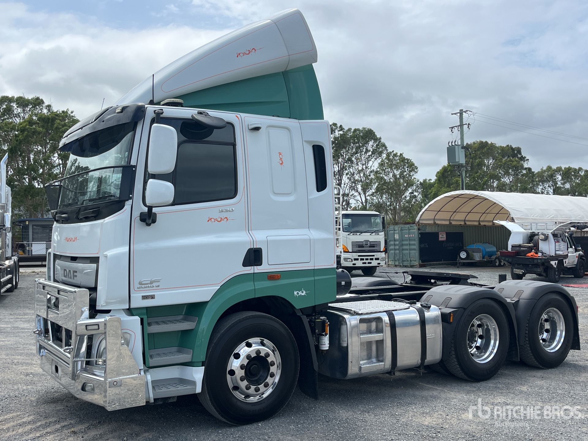Moteur Paccar 530 ch, 8 646 heures moteur, transmission automatique, essieux arrière de 20 860 kg, frein moteur, double blocage de différentiel, couchettes superposées, climatisation de la couchette Icepack, empattement de 4 000 mm, suspension pneumatique à 8 coussins, pneus 295/80R22.5, balance embarquée, PTAC 25,2 t, PTRA 90 t