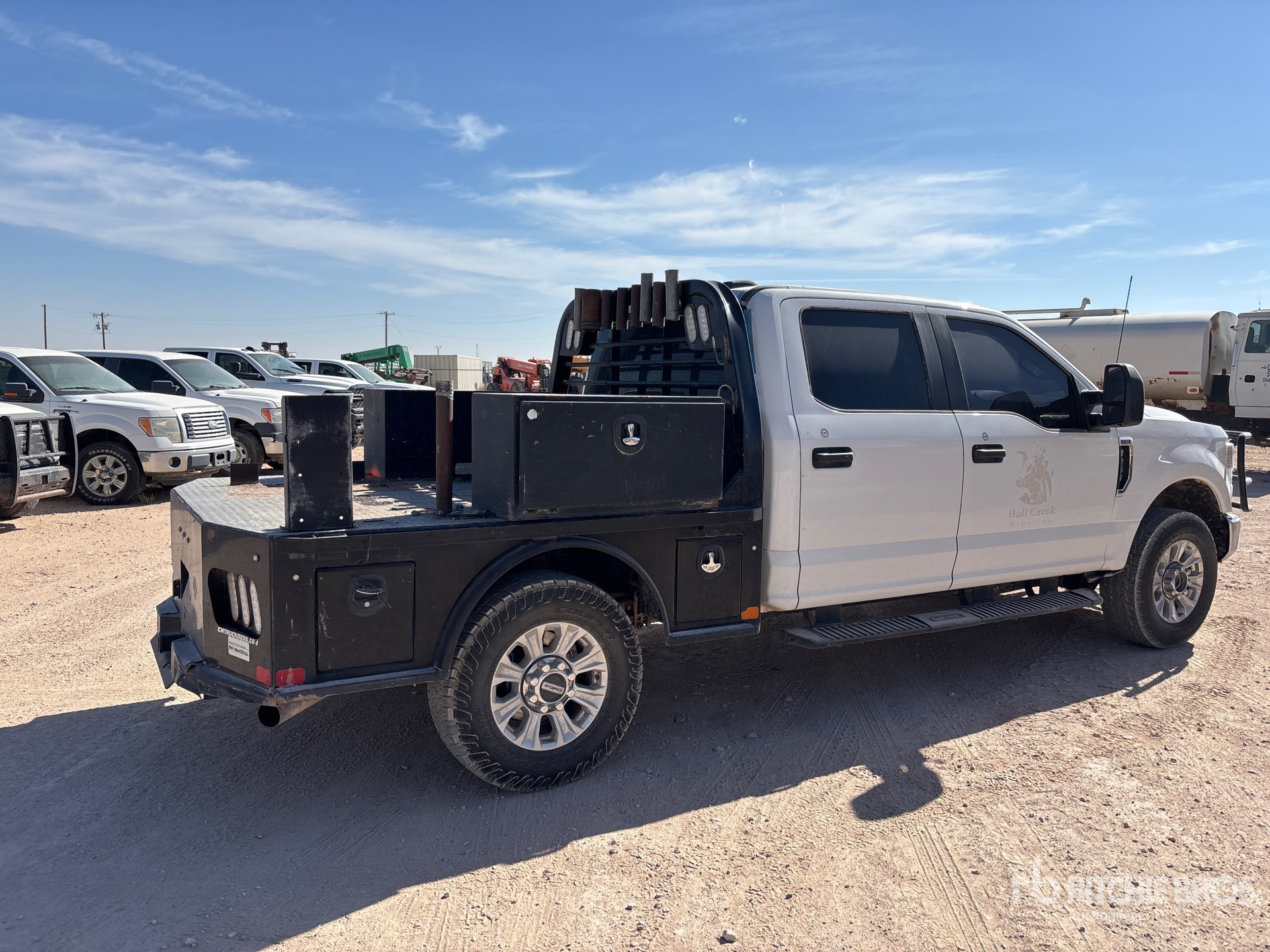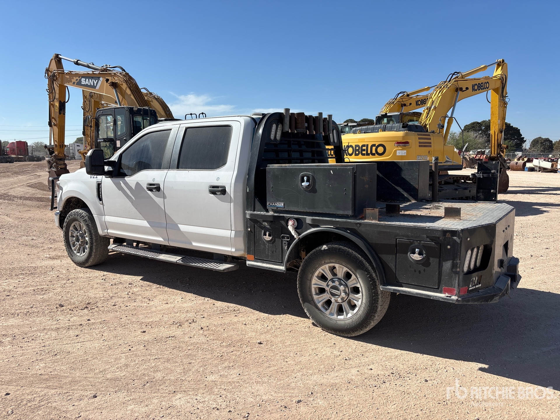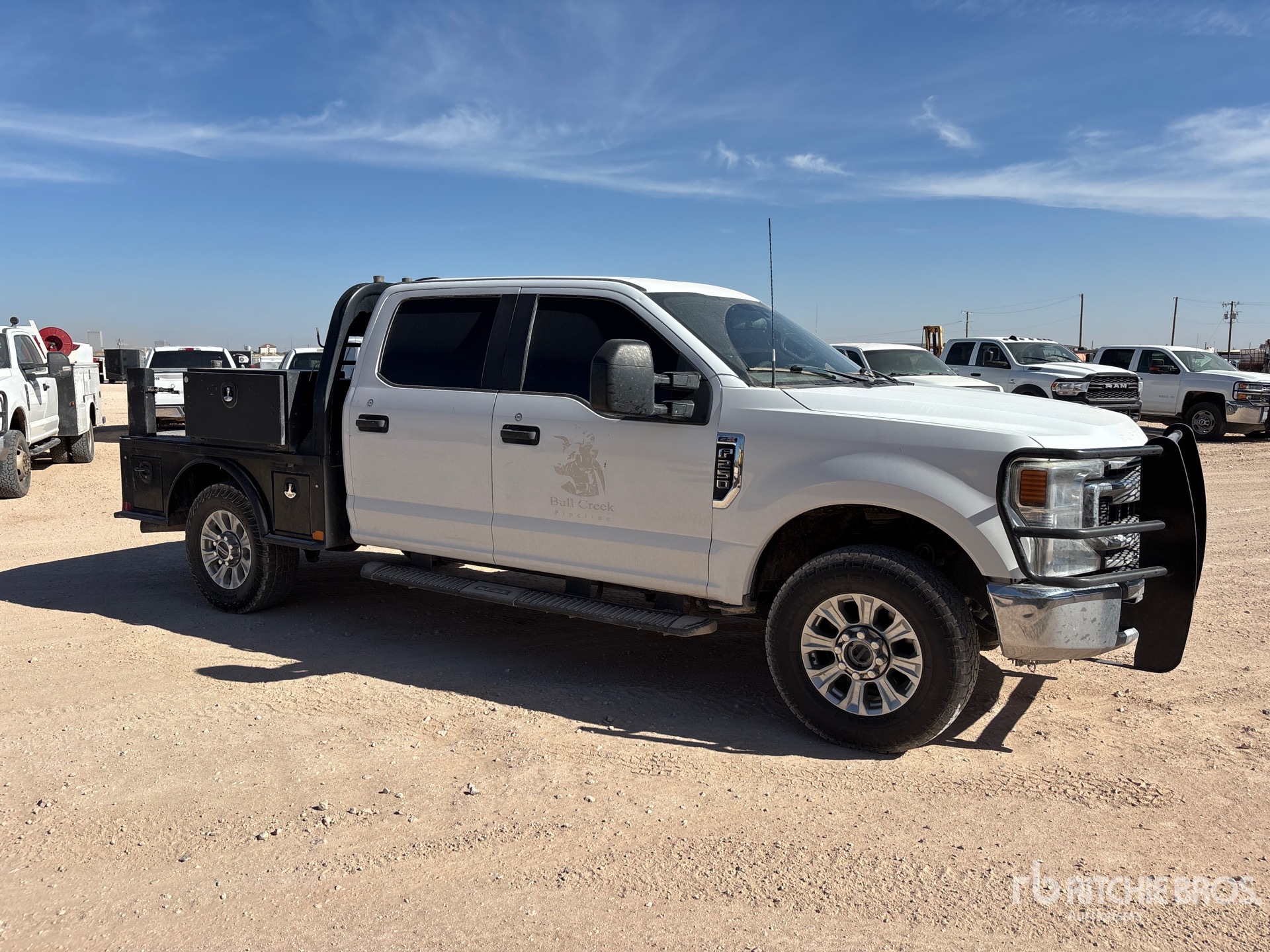 Moteur Ford V8 6,2 L à essence, homologué EPA 2021, 13 523 heures de fonctionnement, transmission automatique, essieu avant de 2 000 kg, essieux arrière de 2 870 kg, PTAC de 4 536 kg, pneus 275/70R18, suspension à ressorts, empattement de 4,06 m, benne de 2,13 m x 2,13 m