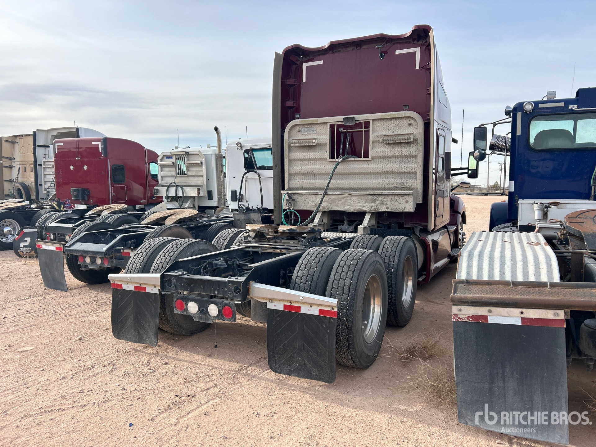 Moteur Paccar, boîte automatique Paccar PO-16F112C à 12 rapports, essieu avant de 5670 kg, essieux arrière de 1814 kg, PTAC de 2383 kg, cabine couchette surélevée de 157 cm, lits superposés, empattement de 590 cm, suspension pneumatique, jantes en aluminium, pneus 295/75R22.5, sellette d'attelage coulissante pneumatique, deux réservoirs de carburant