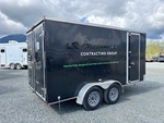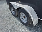 Châssis mixte aluminium/acier, attelage à boule, suspension à ressorts, freins électriques, largeur de plateau de 213 cm, largeur hors tout de 259 cm, porte latérale, pneus 205/75R15, PTAC de 3175 kg