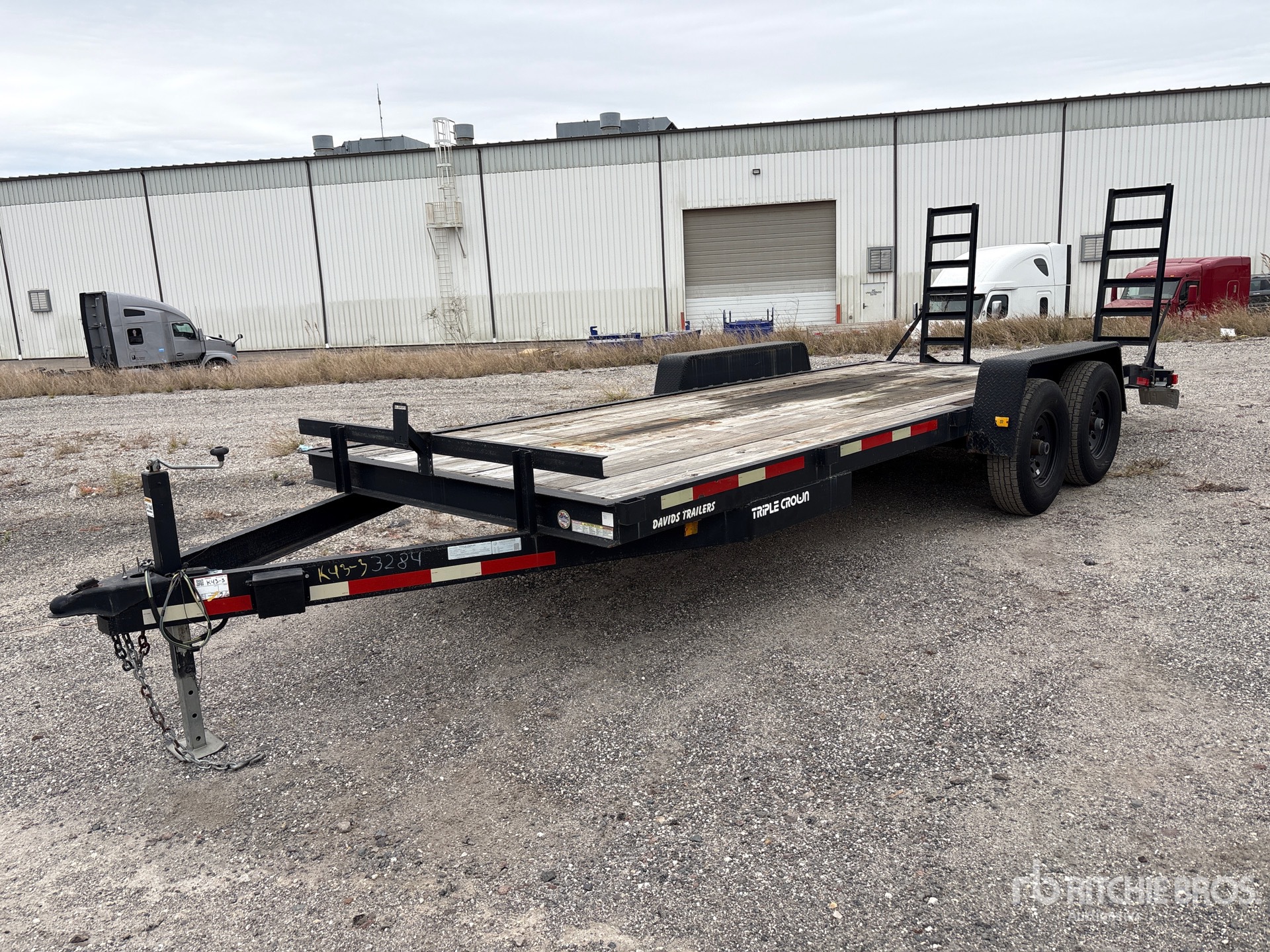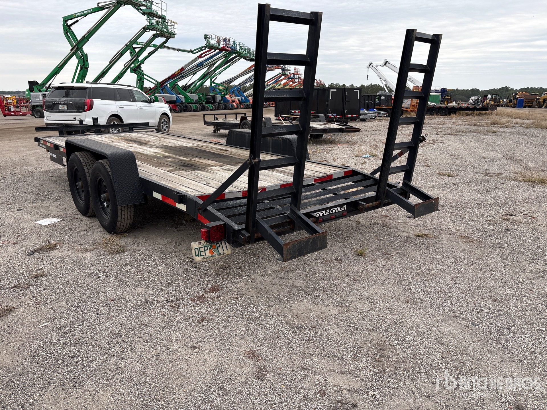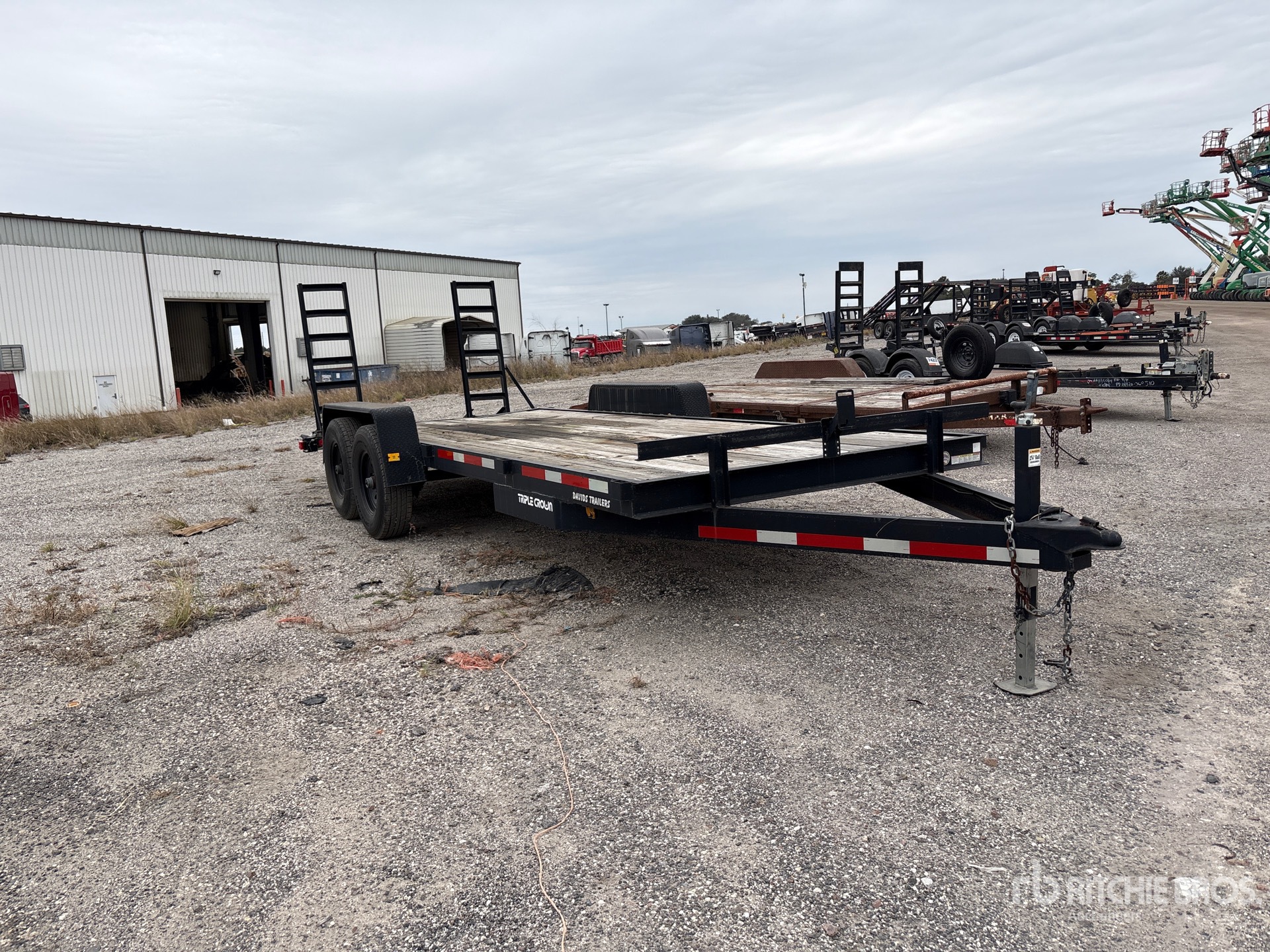 Située sur la voie 106, cette remorque est équipée d'un attelage à boule, d'une suspension à ressorts, d'un plateau principal de 5,5 m, d'un hayon arrière à deux positions de 60 cm, d'une largeur utile de plateau de 2,08 m, de rampes manuelles, d'un plancher en bois, de pneus 235/80R16 et d'un PTAC de 6 350 kg.