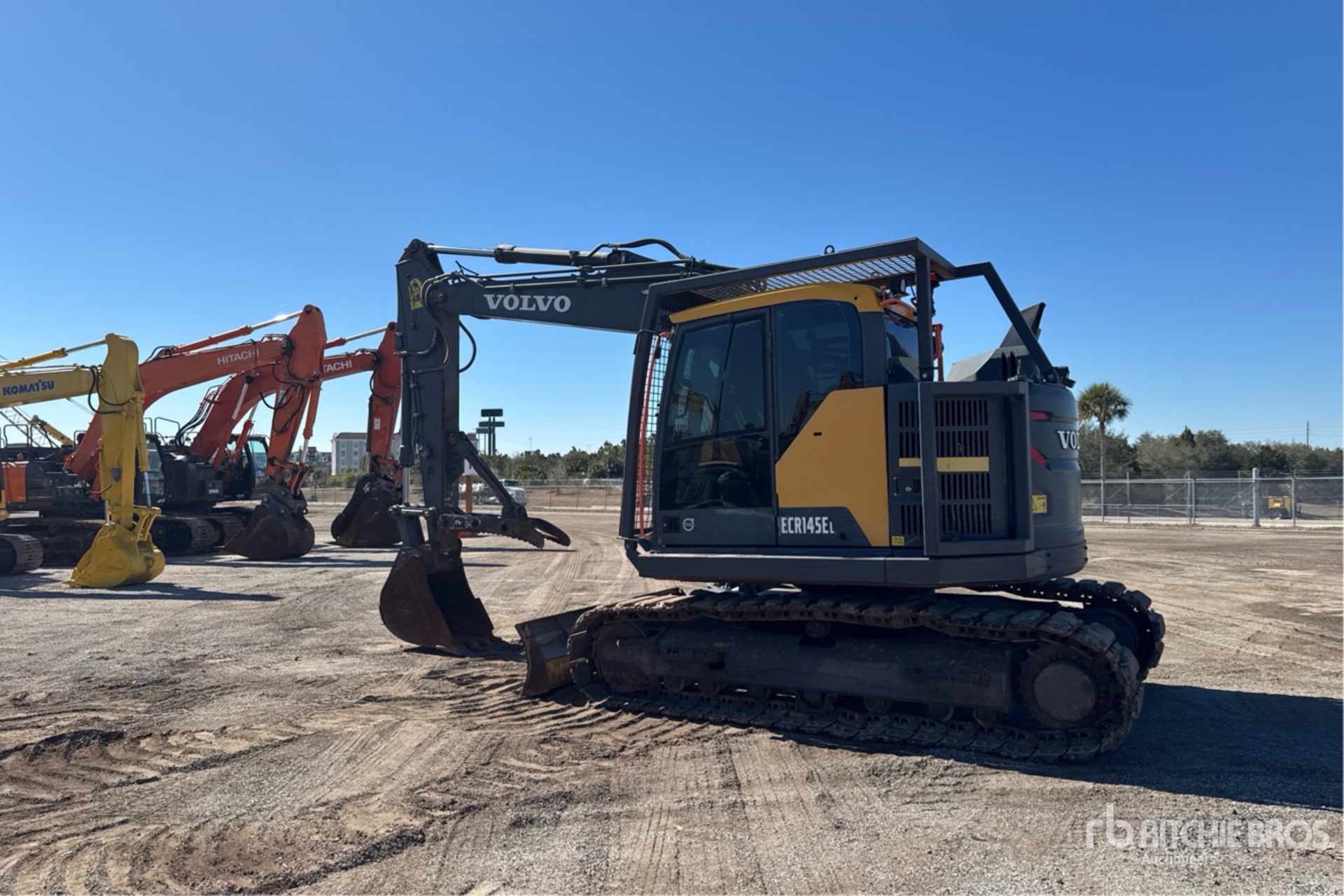 Situé sur la voie 8, emplacement 138, climatiseur, écrans de cabine, caméras de recul et latérales, étiquette EPA américaine 2020, bras de 2,4 m, circuit hydraulique auxiliaire, lame de remblayage, chenilles à triple crampons de 50 cm avec inserts en caoutchouc, godet de creusement de 56 cm, pouce manuel, équipement d'Ascendum Machinery.