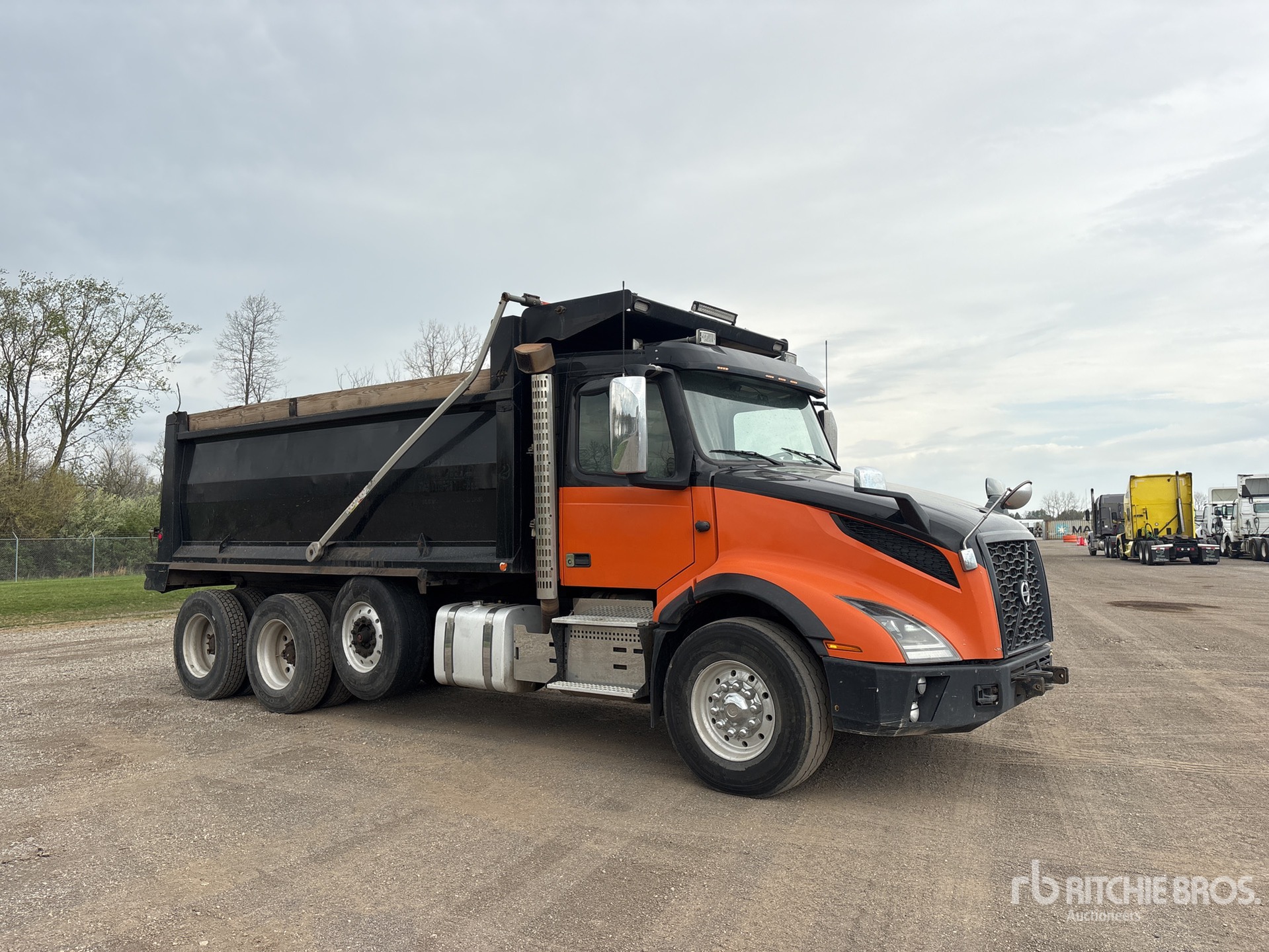 Moteur diesel Volvo D13H500 6 cylindres 12,9 L 500 ch, 14 513,5 heures de fonctionnement, transmission Volvo ATO2612F à 12 vitesses, roues avant en aluminium, pneus avant 385/55R22.5, pneus arrière 11R24.5, essieu porteur pneumatique directionnel, double boîtier de direction, châssis renforcé, suspension à 6 barres, empattement de 5,68 m (224 po), prise de force, benne en acier BEAU ROC de 5,33 m (17 pi 6 po) de long x 1,52 m (0 pi 60 po) de hauteur, bâche à enroulement hydraulique