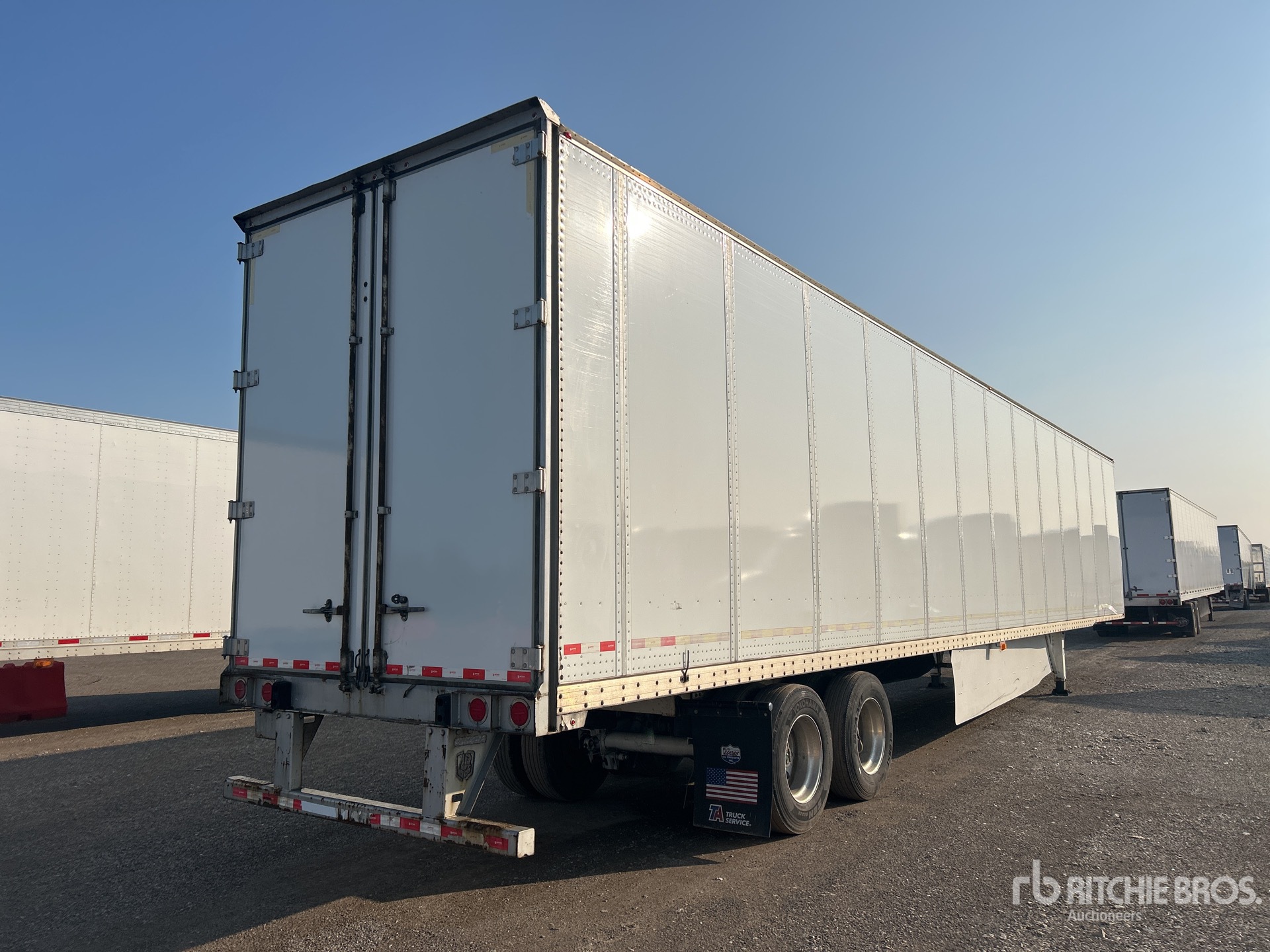 Suspension pneumatique coulissante, jupes latérales, plancher de bois franc, porte battante, pneus 295/75R22.5, PNBV de 68 000 lb