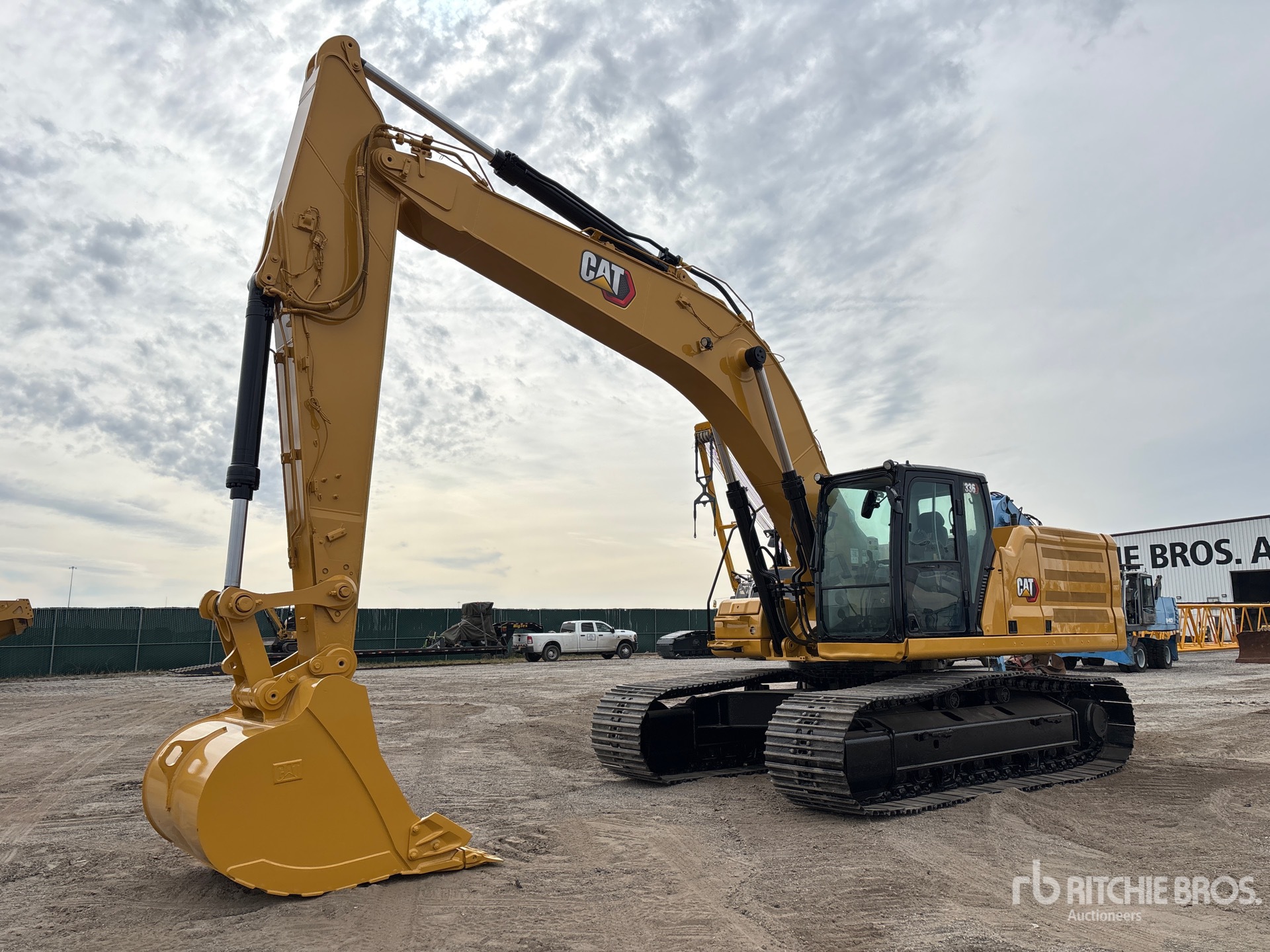 Climatisation, pédale de déplacement droite, sélecteur de mode de commande, caméras de recul et latérales, homologation EPA américaine 2021, conforme aux normes CARB, nécessite un fluide d'échappement diesel, bras de 3,91 m, chenilles à triple crampon de 85 cm, godet de creusement de 152 cm