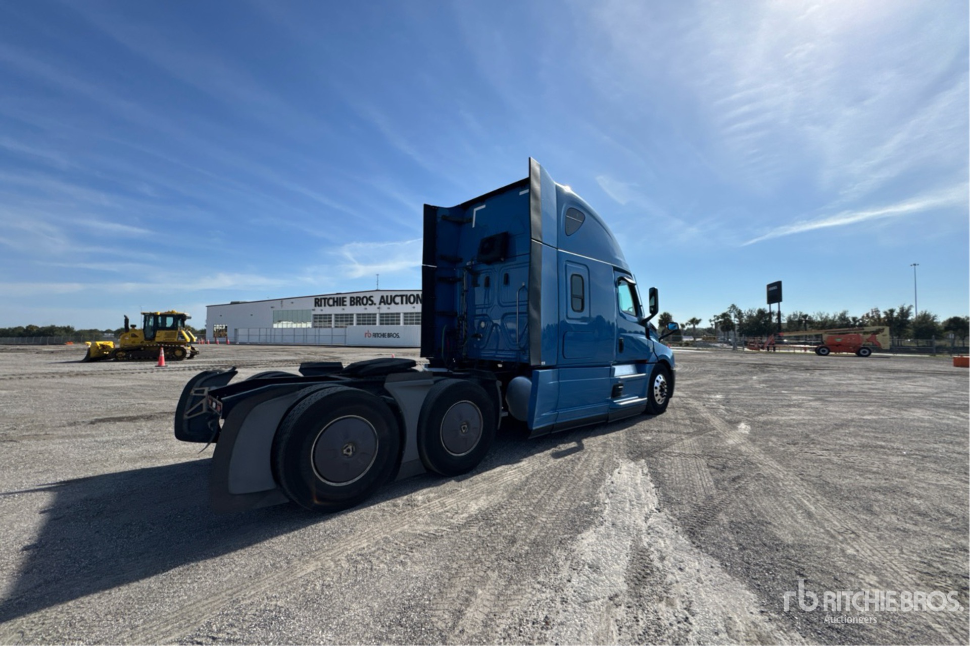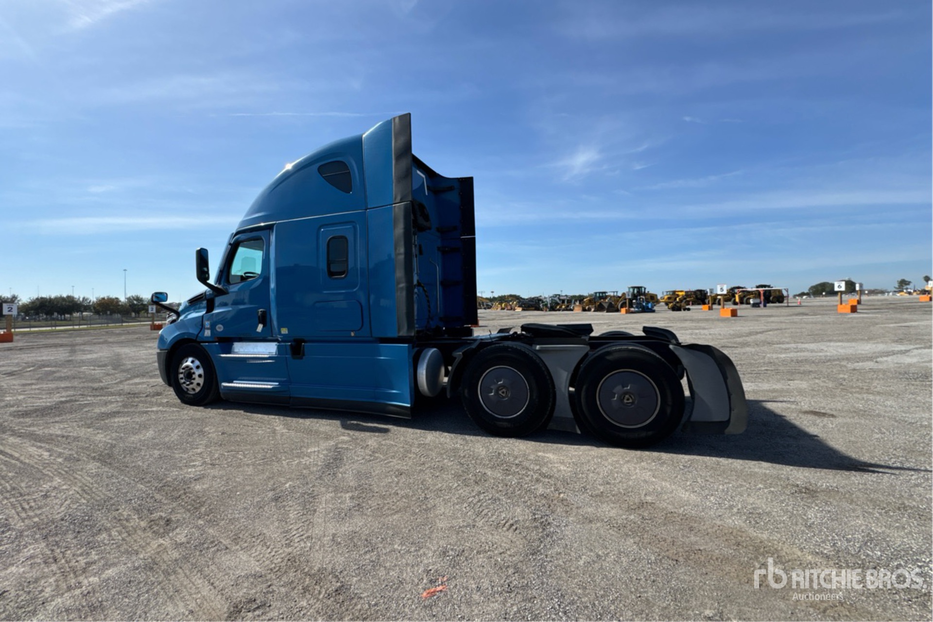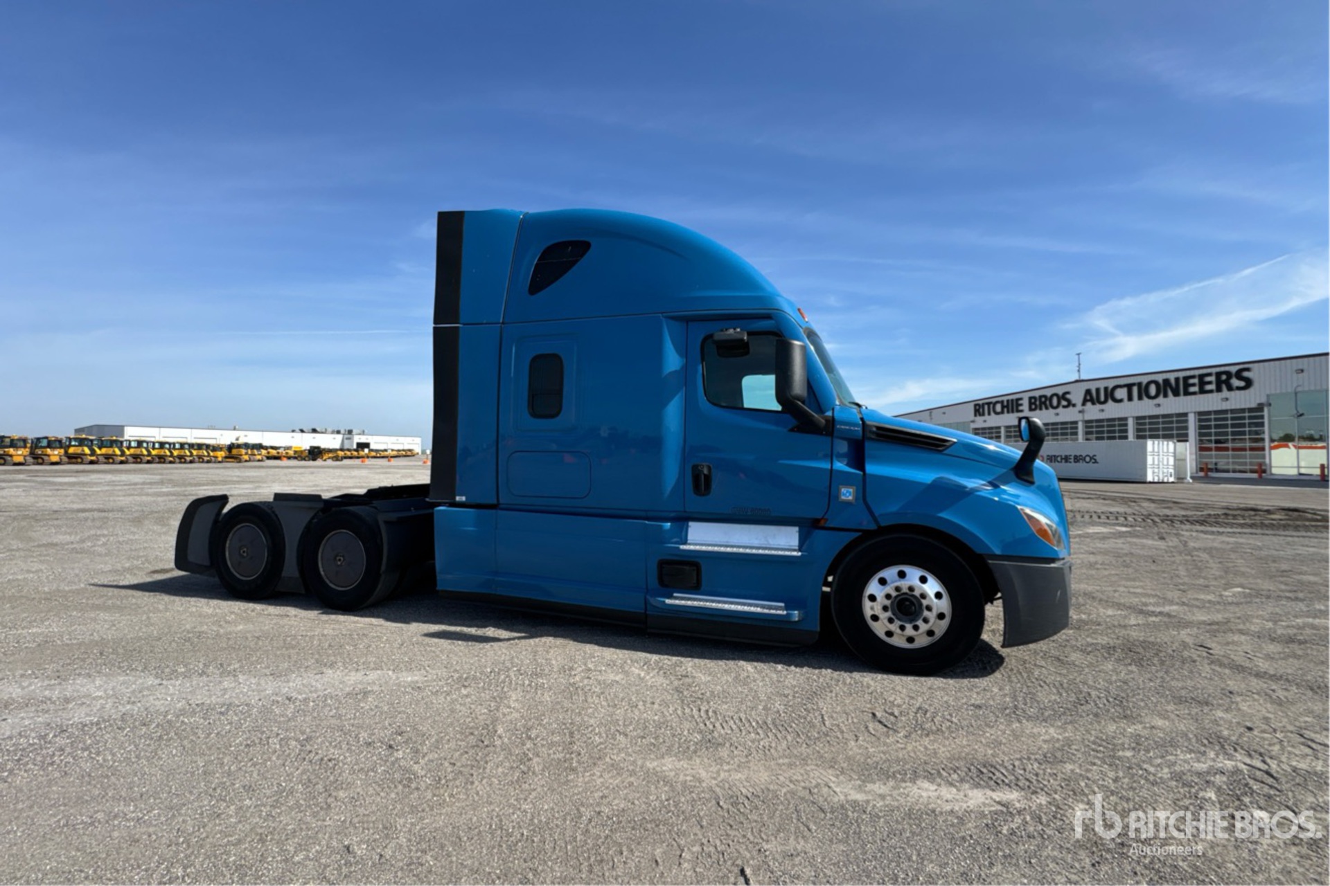 Moteur Detroit DD15 de 455 ch, homologué EPA 2021, 3 039,36 heures de fonctionnement, transmission automatisée Detroit DT12-1650-OH à 12 rapports, essieu avant de 5 987 kg, essieu arrière de 18 144 kg, PTAC de 24 114 kg, frein moteur, cabine couchette surélevée de 152 cm, lits superposés, empattement de 581 cm, suspension pneumatique, jantes en aluminium, pneus 11R22.5, sellette d'attelage coulissante pneumatique, double réservoir de carburant.