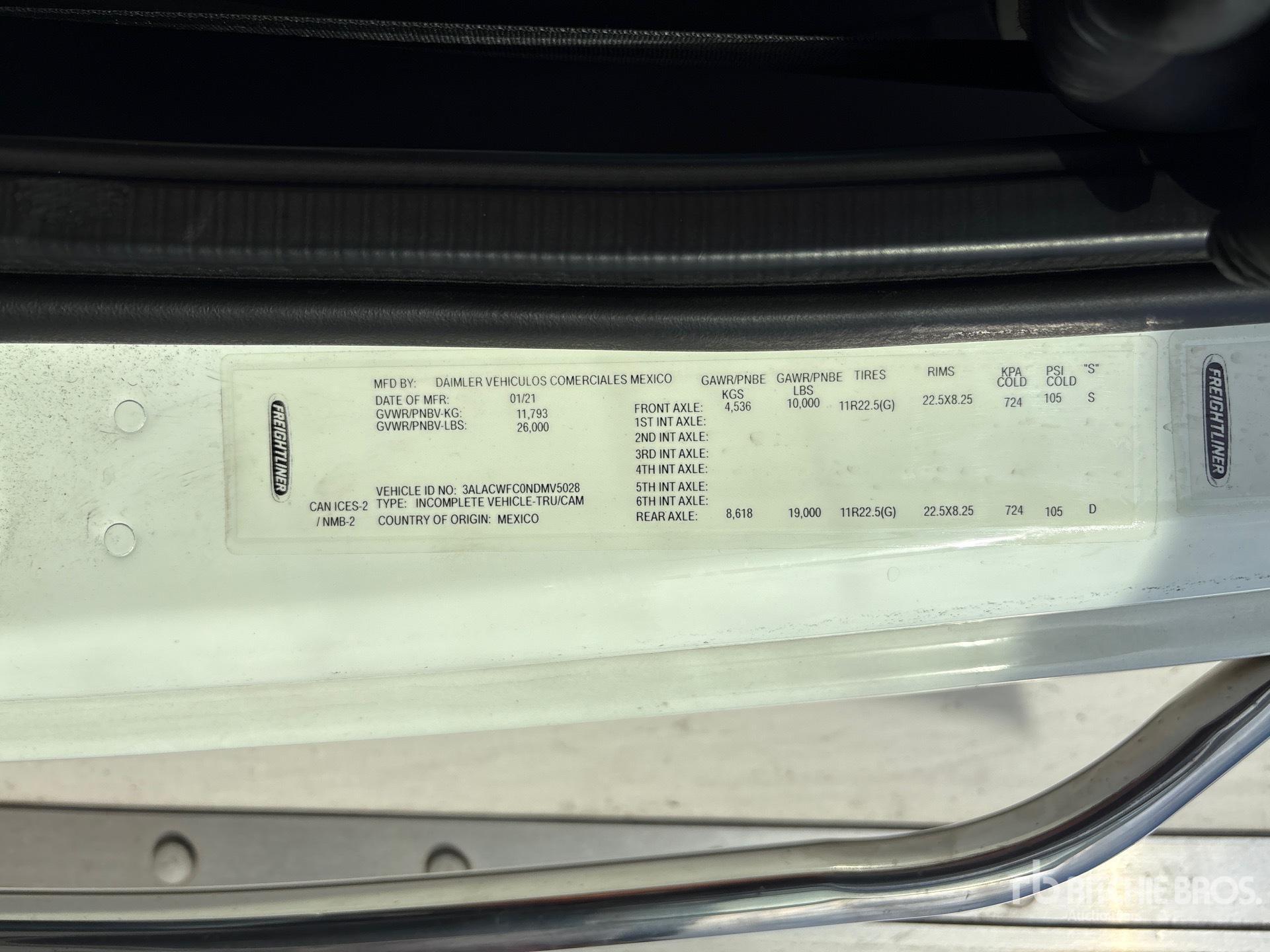 Situé sur la voie 92, emplacement 60, moteur diesel Cummins B6.7 6 cylindres 6,7 L 220 ch, homologué EPA 2021, nécessite un additif pour carburant diesel (AdBlue), transmission automatique Allison 2200, essieu avant de 4 536 kg (10 000 lb), essieux arrière de 8 618 kg (19 000 lb), essieux moteurs Detroit DA-RS-19.0-4, rapport de pont de 5,22:1, PTAC de 11 793 kg (26 000 lb), pneus 11R22.5, suspension pneumatique, empattement de 6,86 m (270 po), carrosserie Mickey Thompson de 7,92 m (26 pi) de large x 2,44 m (96 po) de hauteur x 2,69 m (106 po) du haut.