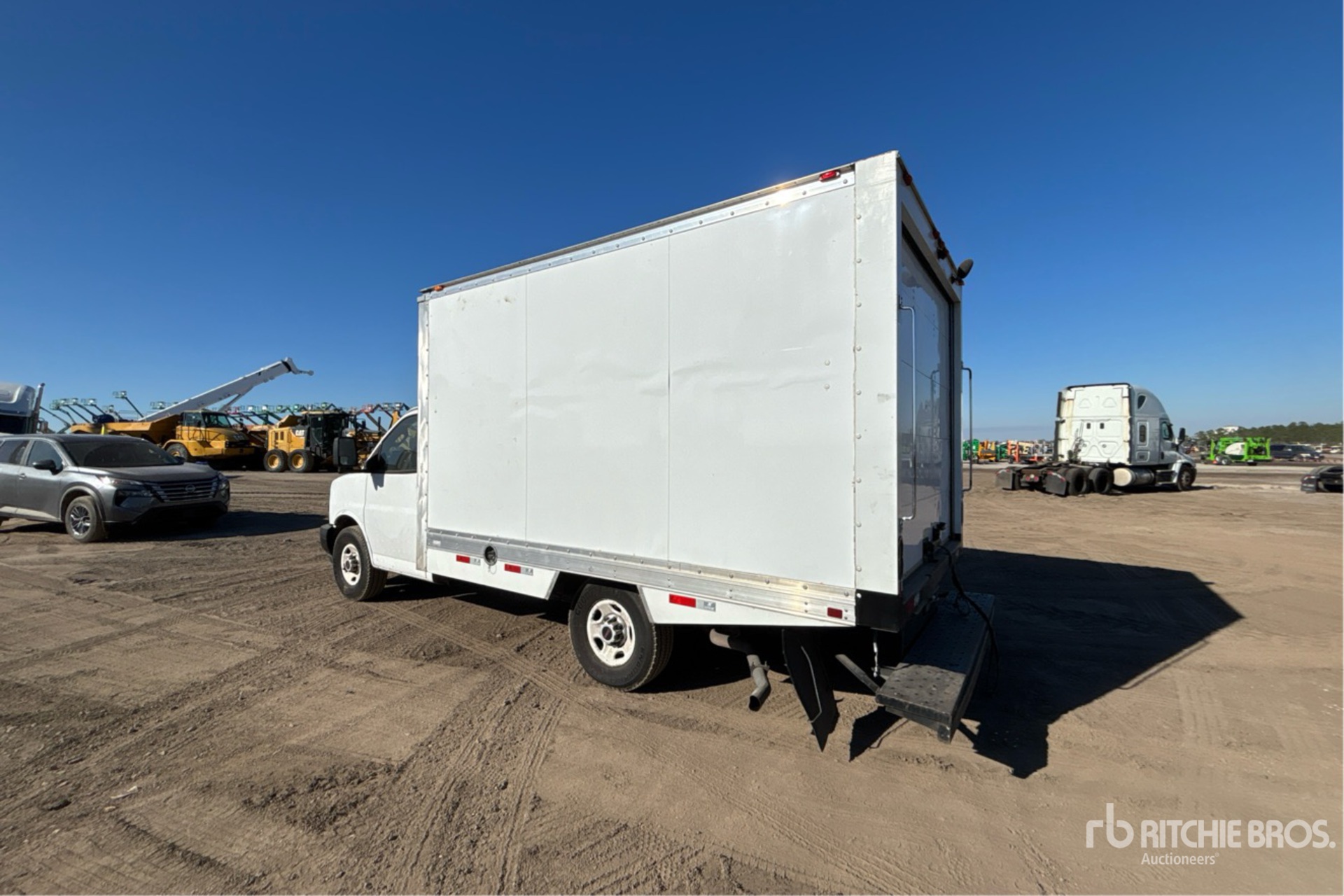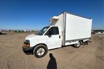 Moteur à essence V6 4,3 L, homologation EPA américaine 2022, 4 021 heures moteur, transmission automatique, essieu avant de 1 860 kg, essieux arrière de 2 750 kg, PTAC de 4 490 kg, pneus 245/75R16, suspension à ressorts, empattement de 4 570 mm, groupe frigorifique Thermo King, caisse Supreme de 3,66 m x 2,29 m x 2,01 m, rampe d'accès
