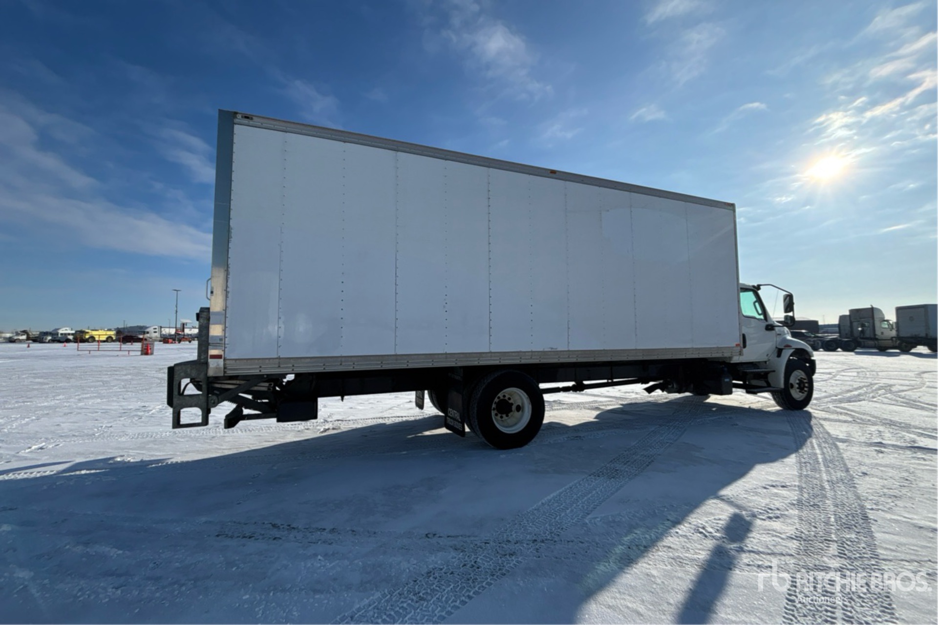 Moteur diesel Cummins B6.7 6 cylindres 6,7 L 240 ch, homologué EPA 2021, conforme aux normes CARB, nécessite un additif pour réservoirs de diesel (AdBlue), 5 242 heures de fonctionnement, transmission automatique Allison, essieu avant de 5 443 kg (12 000 lb), essieux arrière de 9 525 kg (21 000 lb), PTAC de 14 997 kg (33 000 lb), pneus 11R22.5, suspension à ressorts, empattement de 6 454 cm (254 po), châssis central de 7,92 m (26 pi) de long x 2,59 m (102 po) de large, hayon élévateur