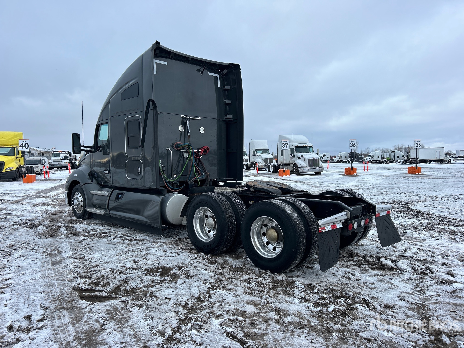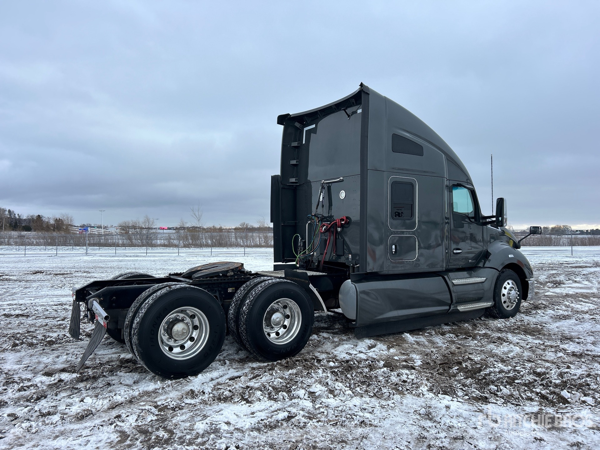 Moteur Cummins X15 de 500 ch, homologué EPA 2021, 18 147 heures de fonctionnement, transmission automatisée, essieu avant de 5 987 kg, essieux arrière de 18 144 kg, PTAC de 24 114 kg, frein moteur, cabine couchette surélevée de 157 cm, empattement de 6 048 cm, suspension pneumatique, jantes en aluminium, pneus 295/75R22.5, sellette d'attelage coulissante pneumatique, deux réservoirs de carburant.