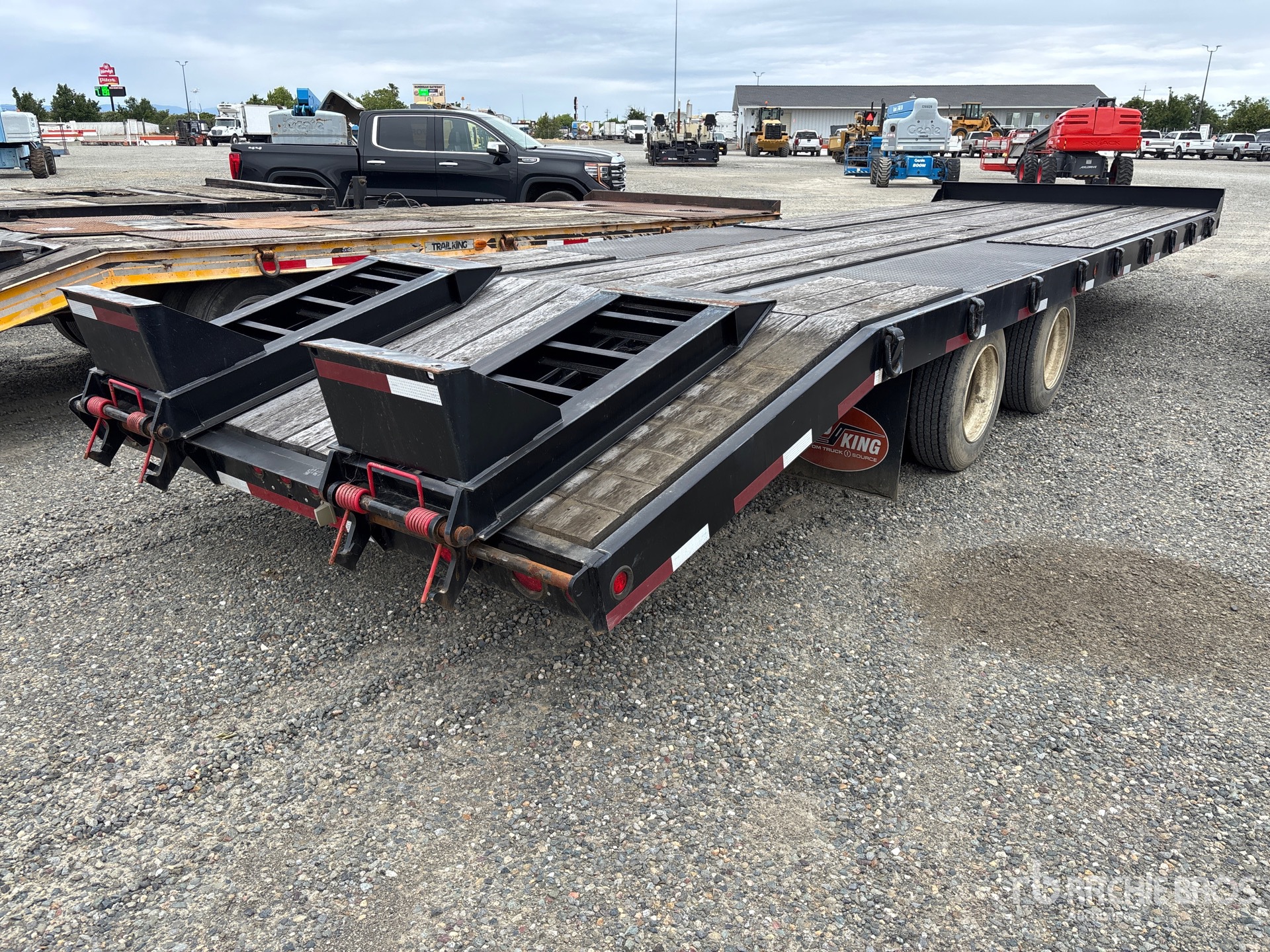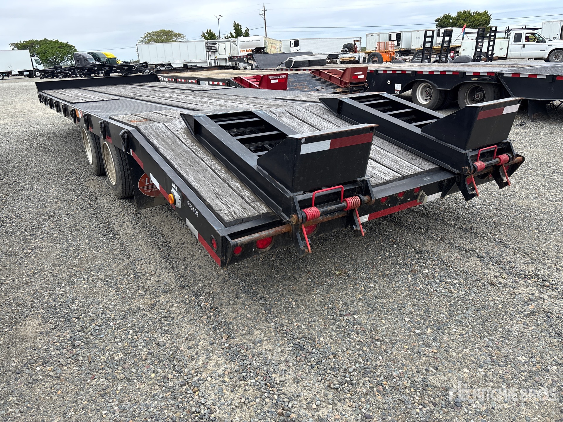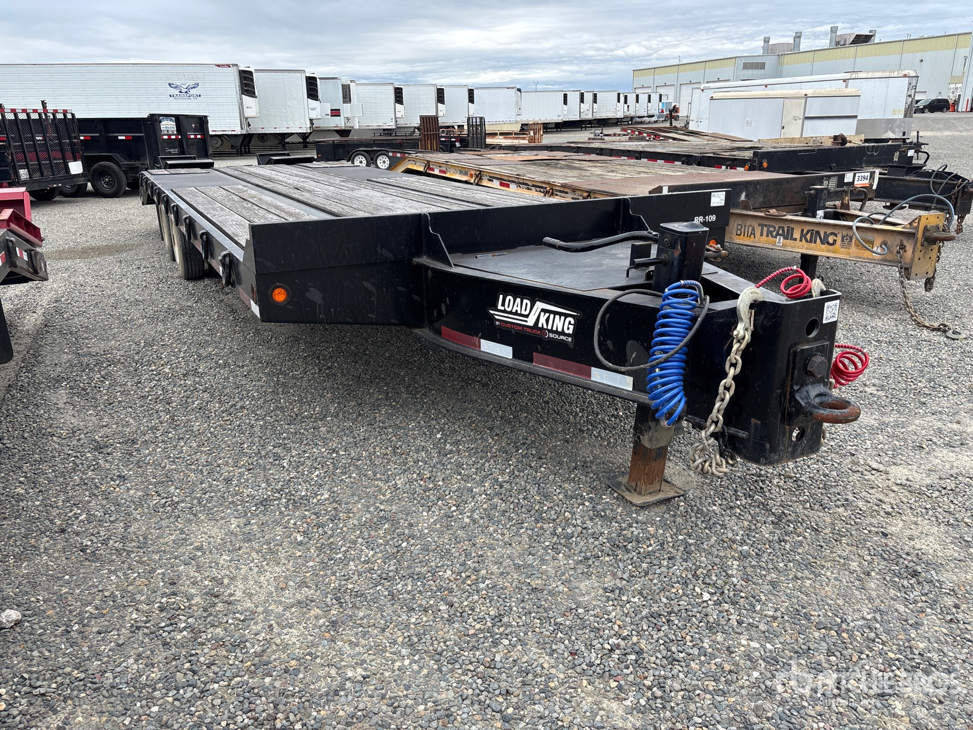 Attelage à anneau Lunette, suspension à ressorts, freins pneumatiques, plateau principal de 7,3 m, hayon arrière fixe de 1,5 m, largeur utile du plateau de 2,6 m, compartiments de rangement, pneus surélevés, rampes manuelles, plancher en bois, pneus 215/75R17.5, PTAC de 21 570 kg