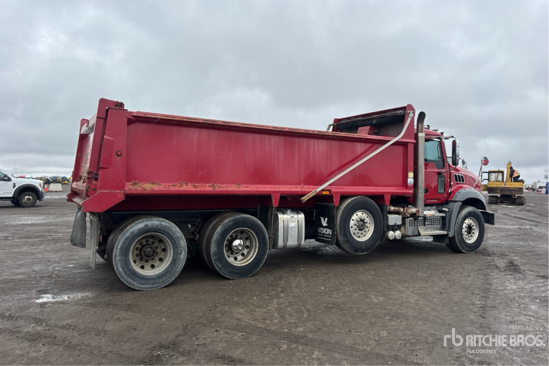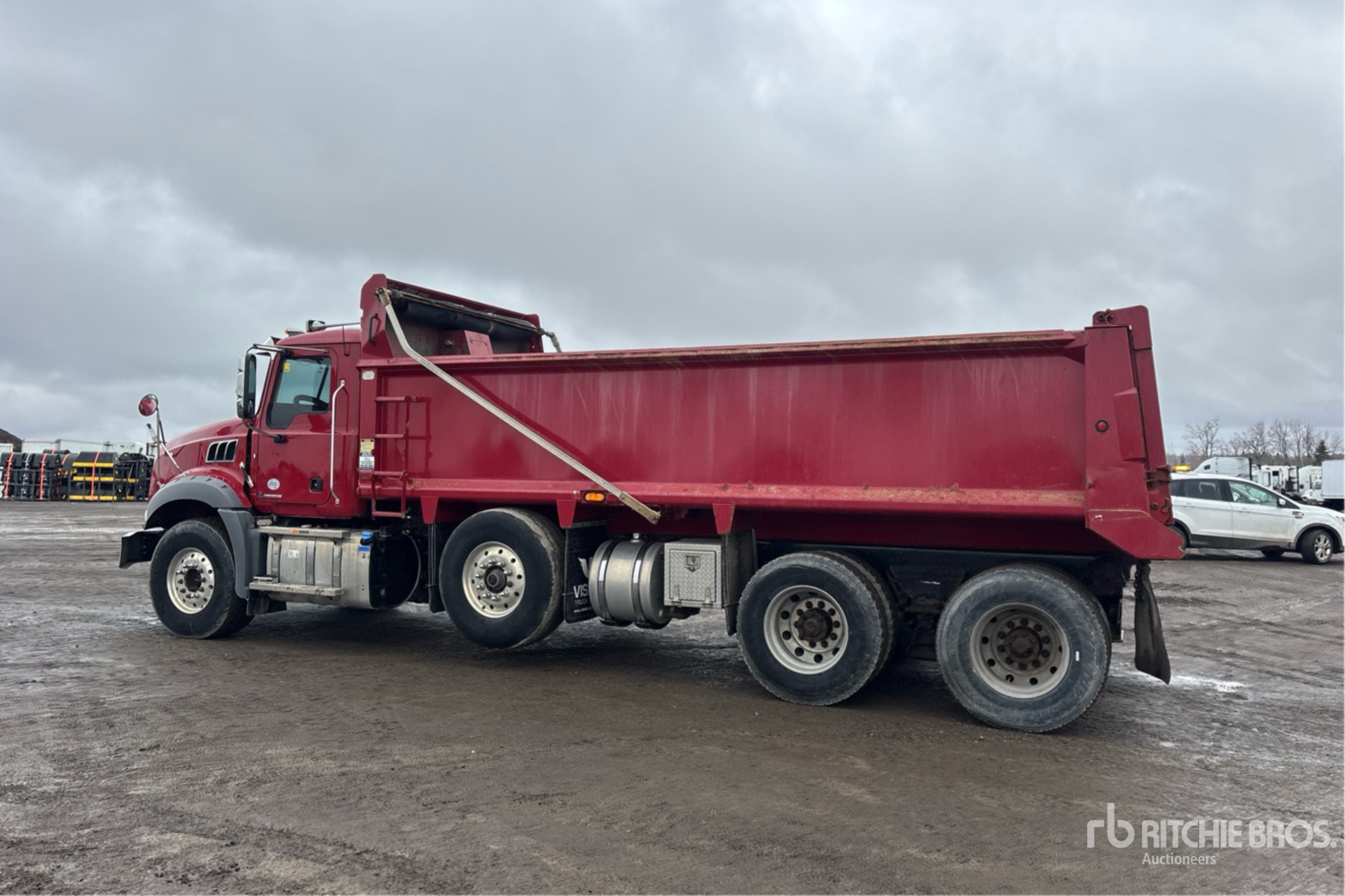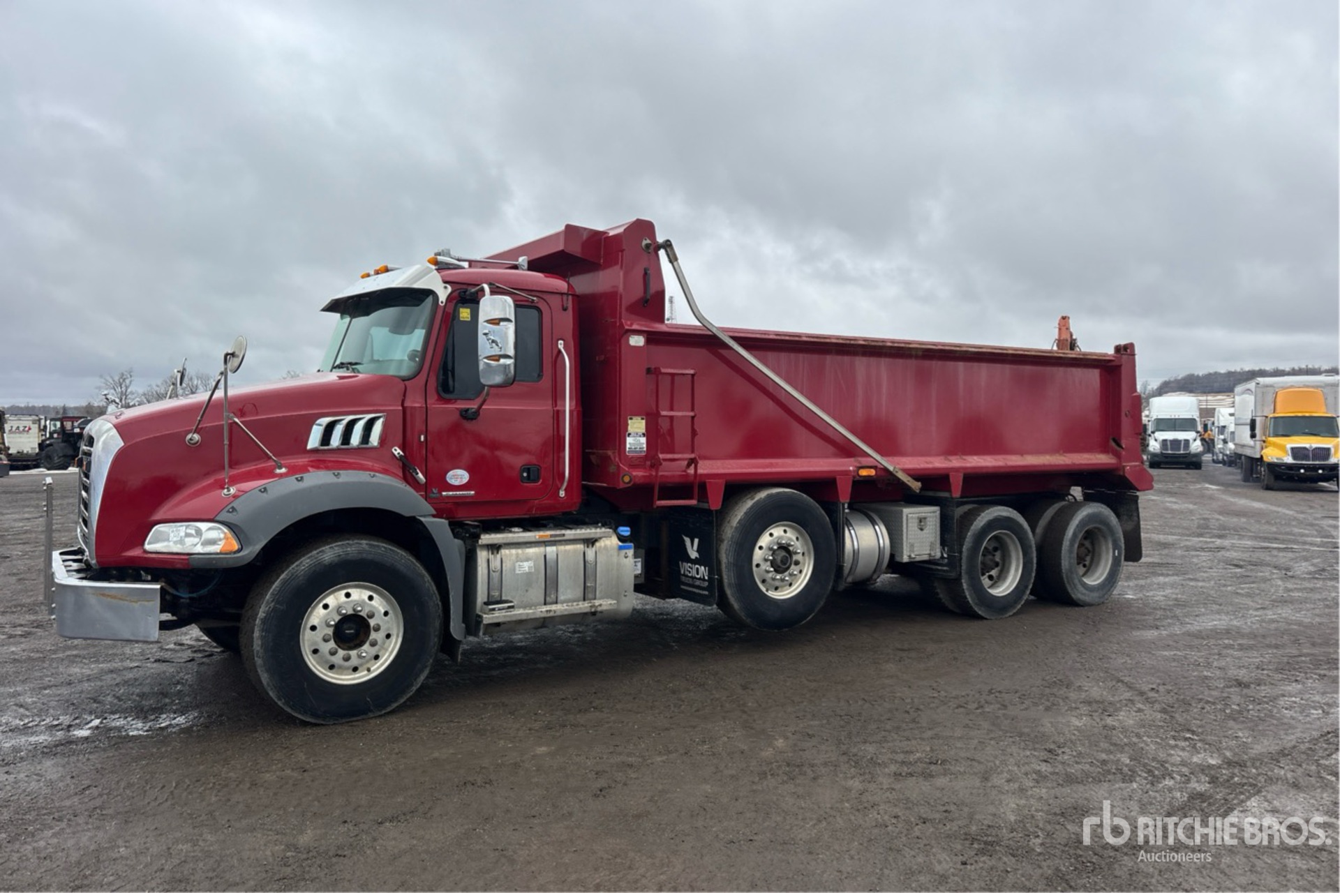 Moteur diesel Mack MP8 6 cylindres 12,8 L 455 ch, homologué EPA 2021, conforme aux normes CARB, nécessite un additif pour réservoirs de diesel, 8 306 heures moteur, transmission automatisée Mack M-Drive à 12 rapports, essieu avant de 9 100 kg, essieux arrière de 20 800 kg, PTAC de 38 972 kg, jantes en aluminium, pneus avant 425/65R22.5, pneus arrière 11R22.5, châssis double, suspension en caoutchouc Hendrickson Haulmaax, empattement de 6,50 m, prise de force, caisse en acier Lanau de 6 m de long x 1,12 m de haut, caisse chauffée, bâche enroulable pneumatique