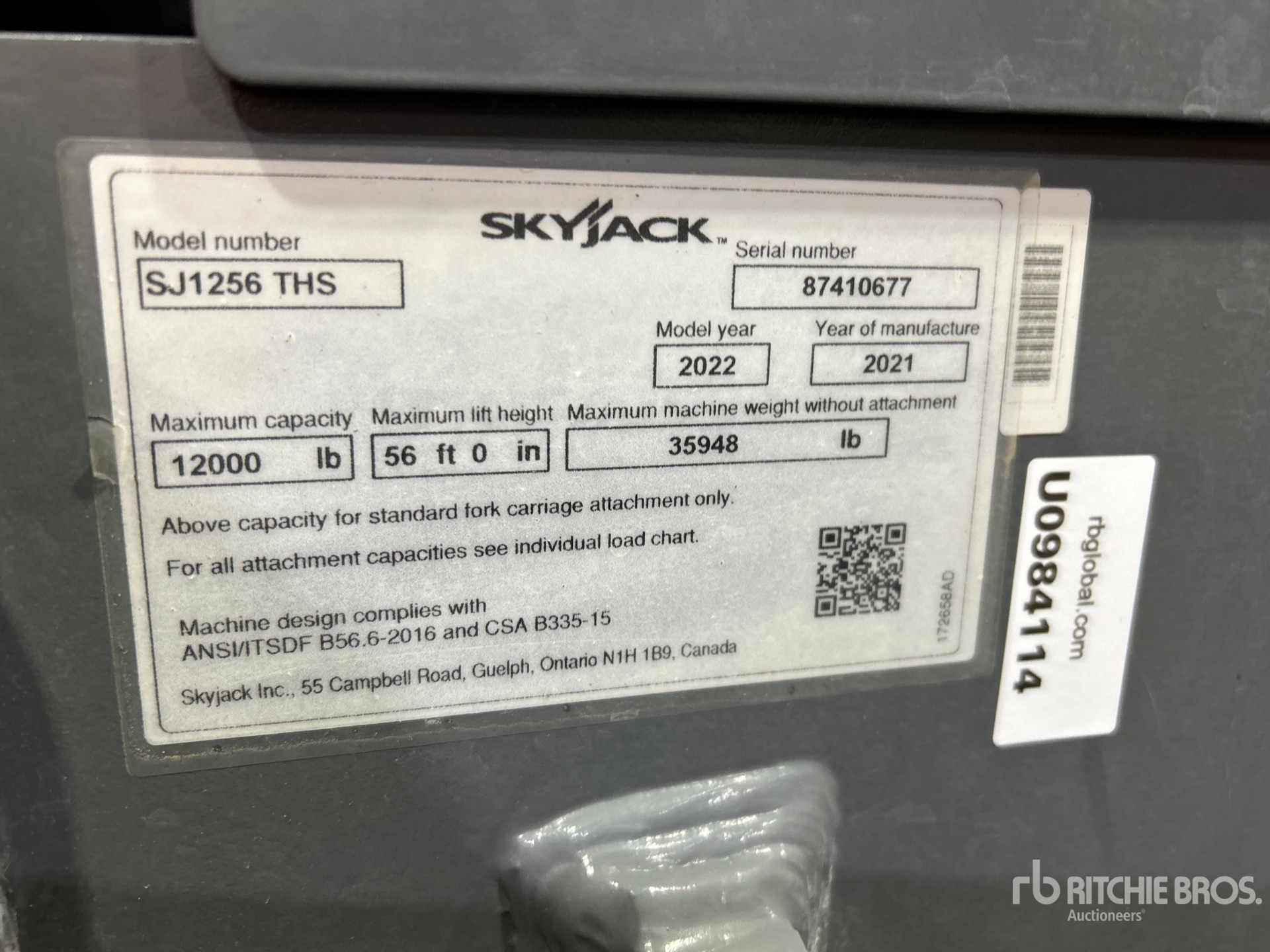 Poste de conduite ouvert, hauteur de levage maximale de 17 m, capacité de levage maximale de 5443 kg, homologation EPA américaine 2021, nécessite un fluide d'échappement diesel, fourches de 152 cm, attelage manuel, stabilisateurs, mise à niveau du châssis, circuit hydraulique auxiliaire, pneus 14.00-24 remplis de mousse